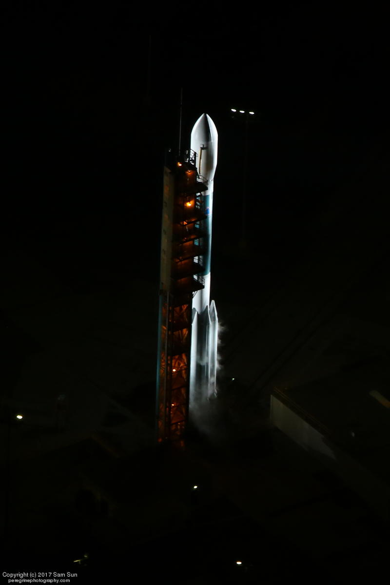 After a launch scrub due to high upper level winds, most of the restricted airspace went cold and I was able to overfly the launch pad! I couldn't help feeling like I just wasn't supposed to be there. The rocket was still "steaming" from the LO2 fuel that was being offloaded.