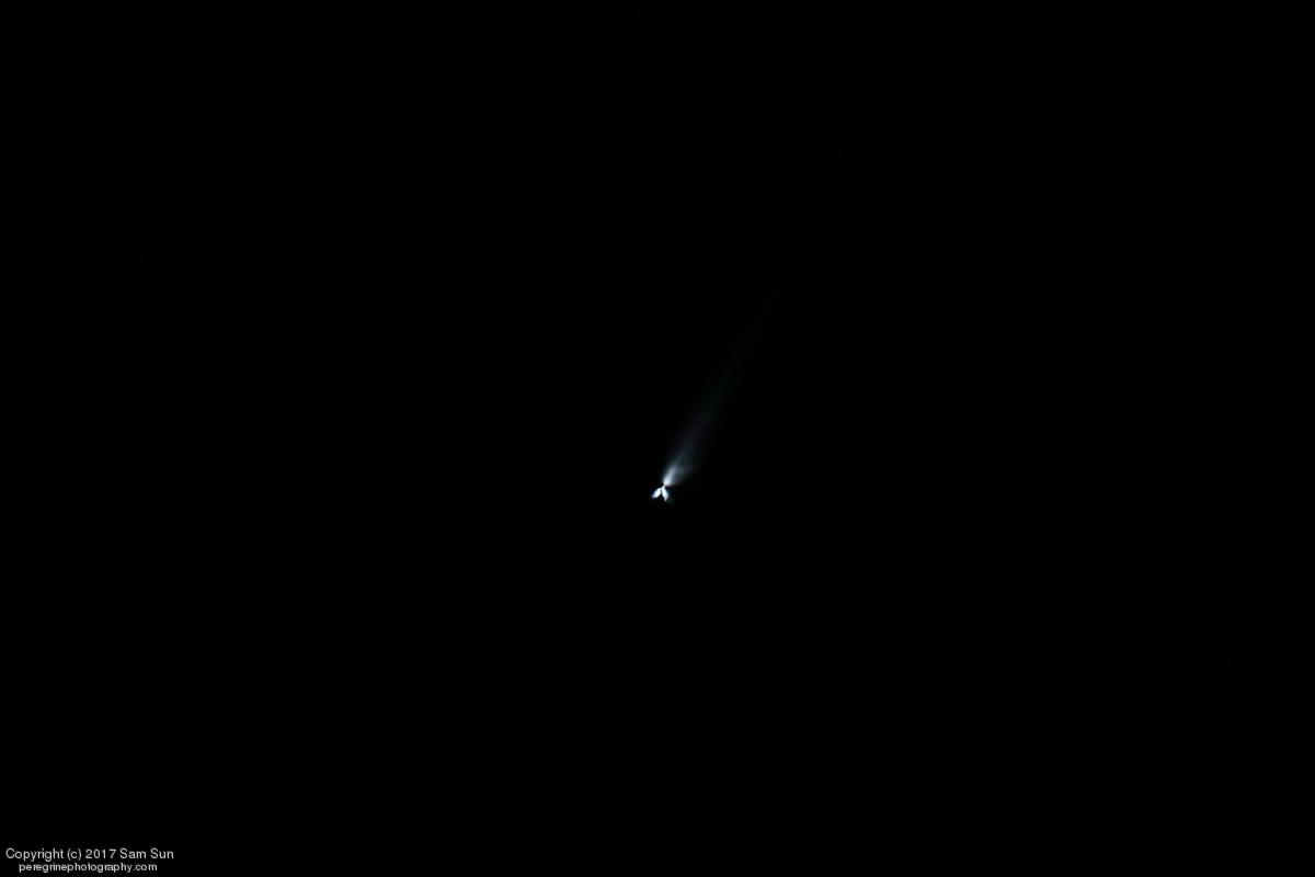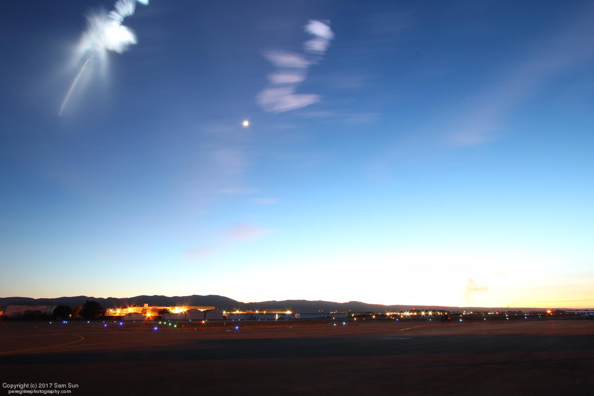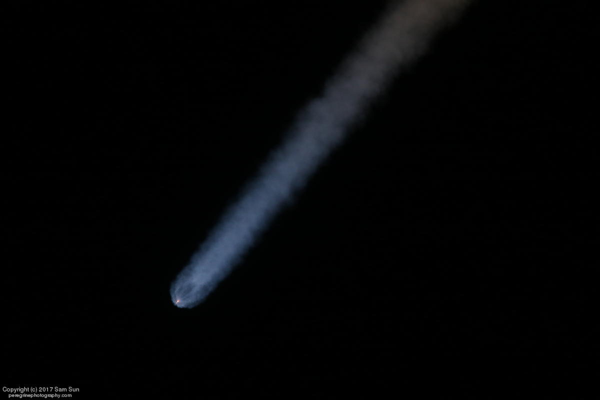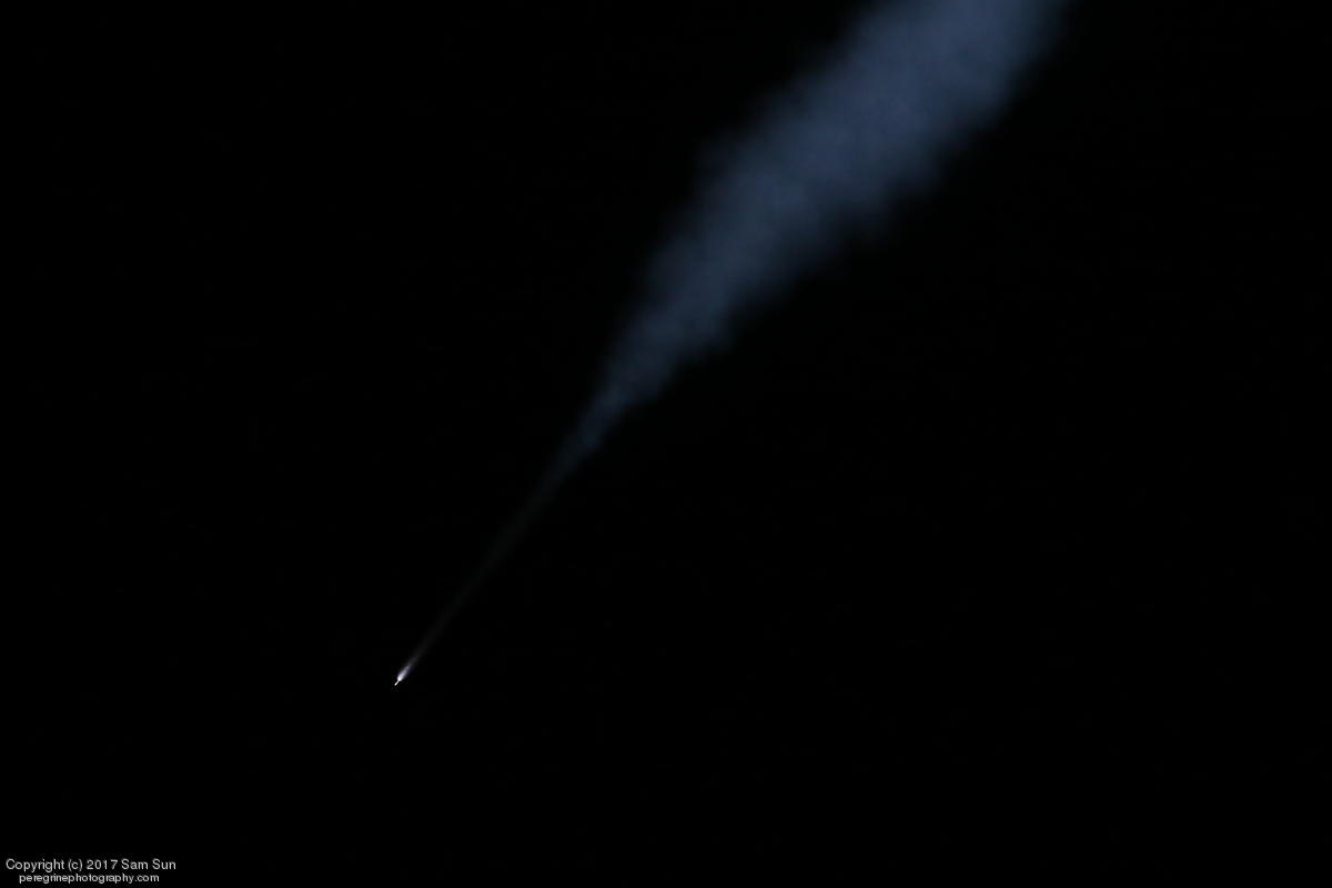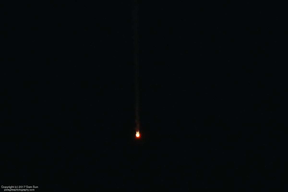 Unfortunately, the launch trail exposure got clipped. It was also a bit too early in the evening to get the entire trail without overexposing the sky.
