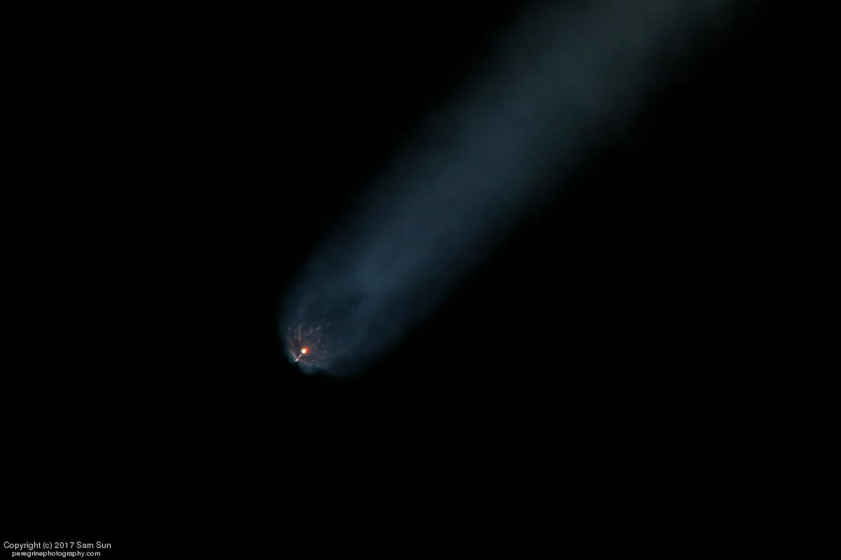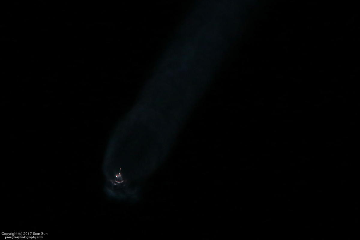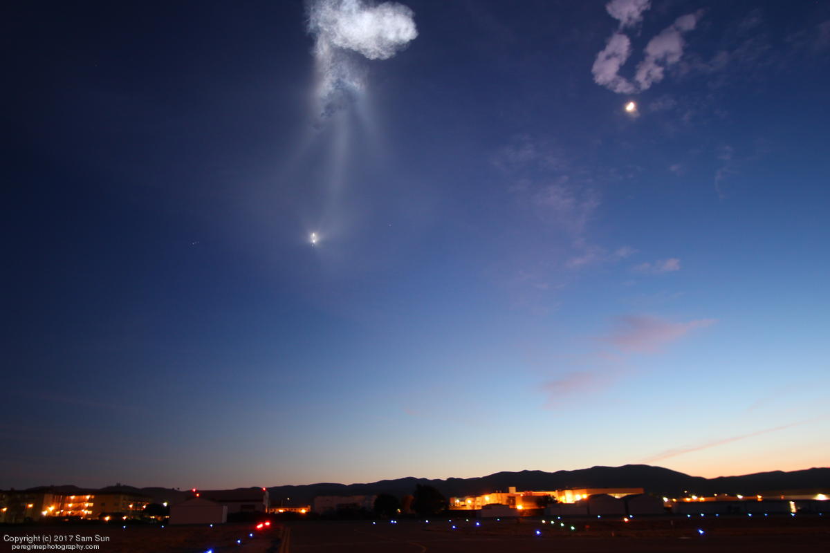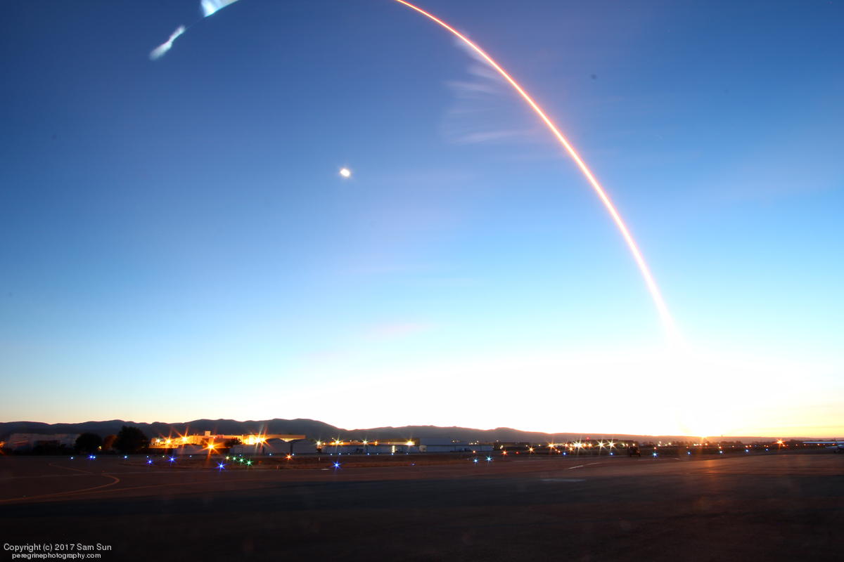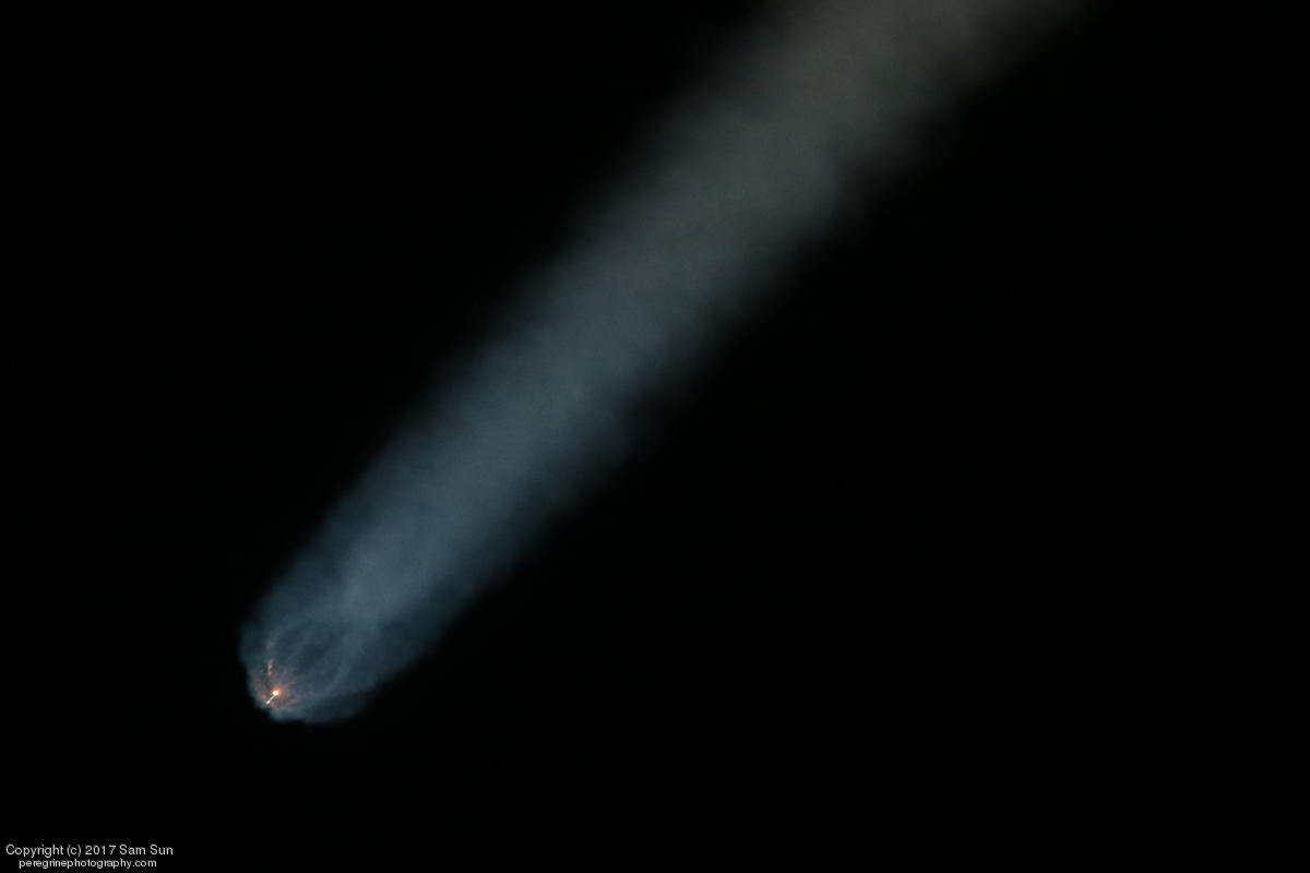 Unfortunately, the launch trail exposure got clipped. It was also a bit too early in the evening to get the entire trail without overexposing the sky.