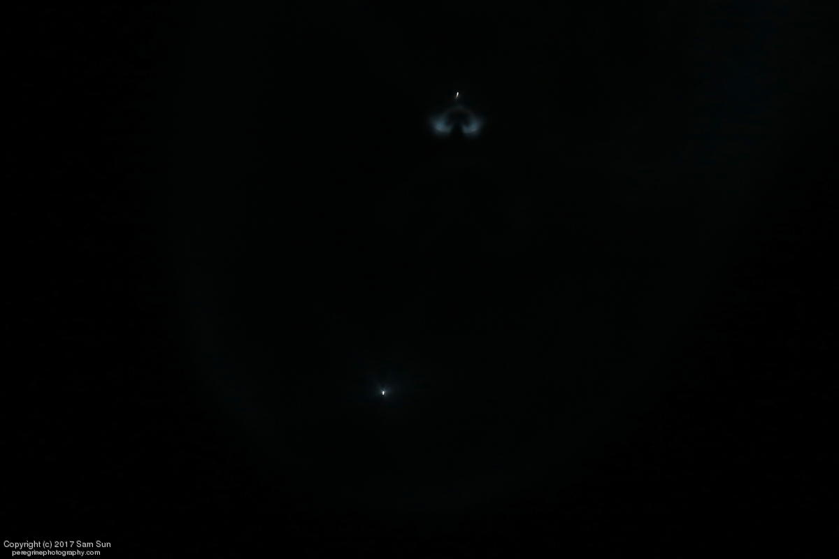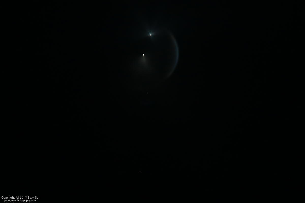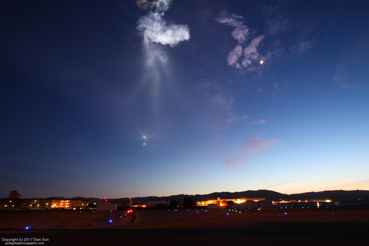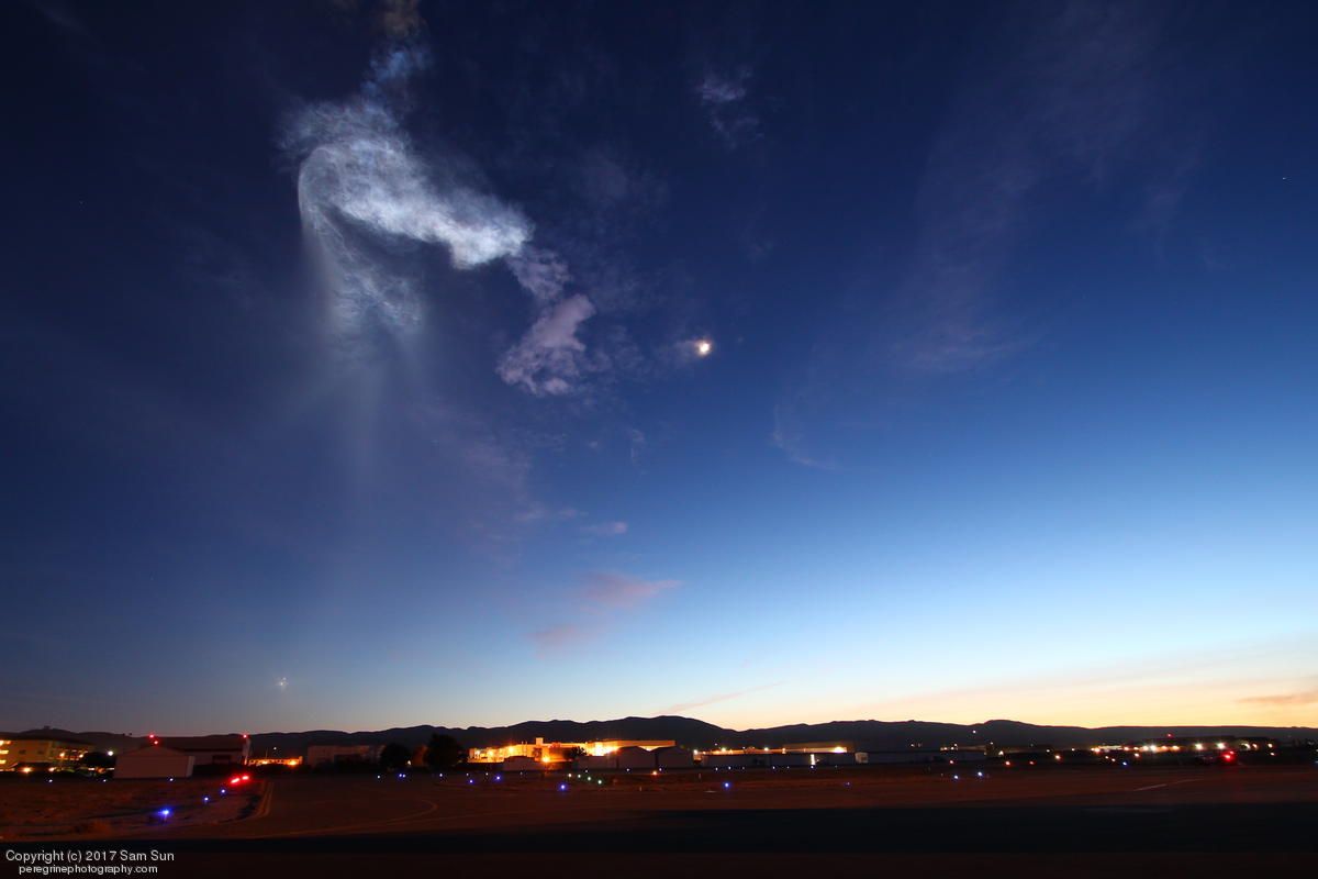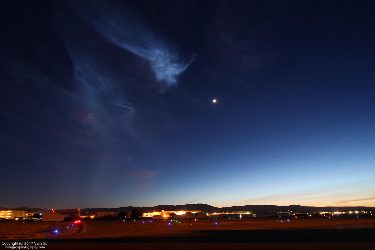 Unfortunately, the launch trail exposure got clipped. It was also a bit too early in the evening to get the entire trail without overexposing the sky.