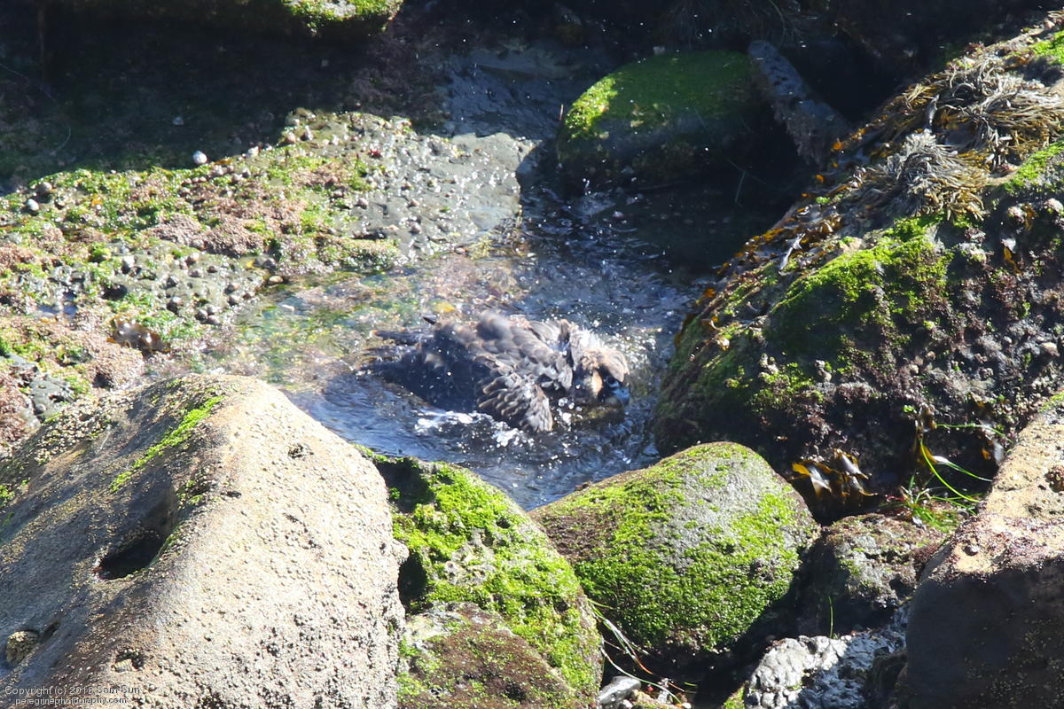 Not a lot of activity this morning - a botched food exchange and a juvenile taking a bath. A hummingbird nest with chicks was a good diversion while waiting.