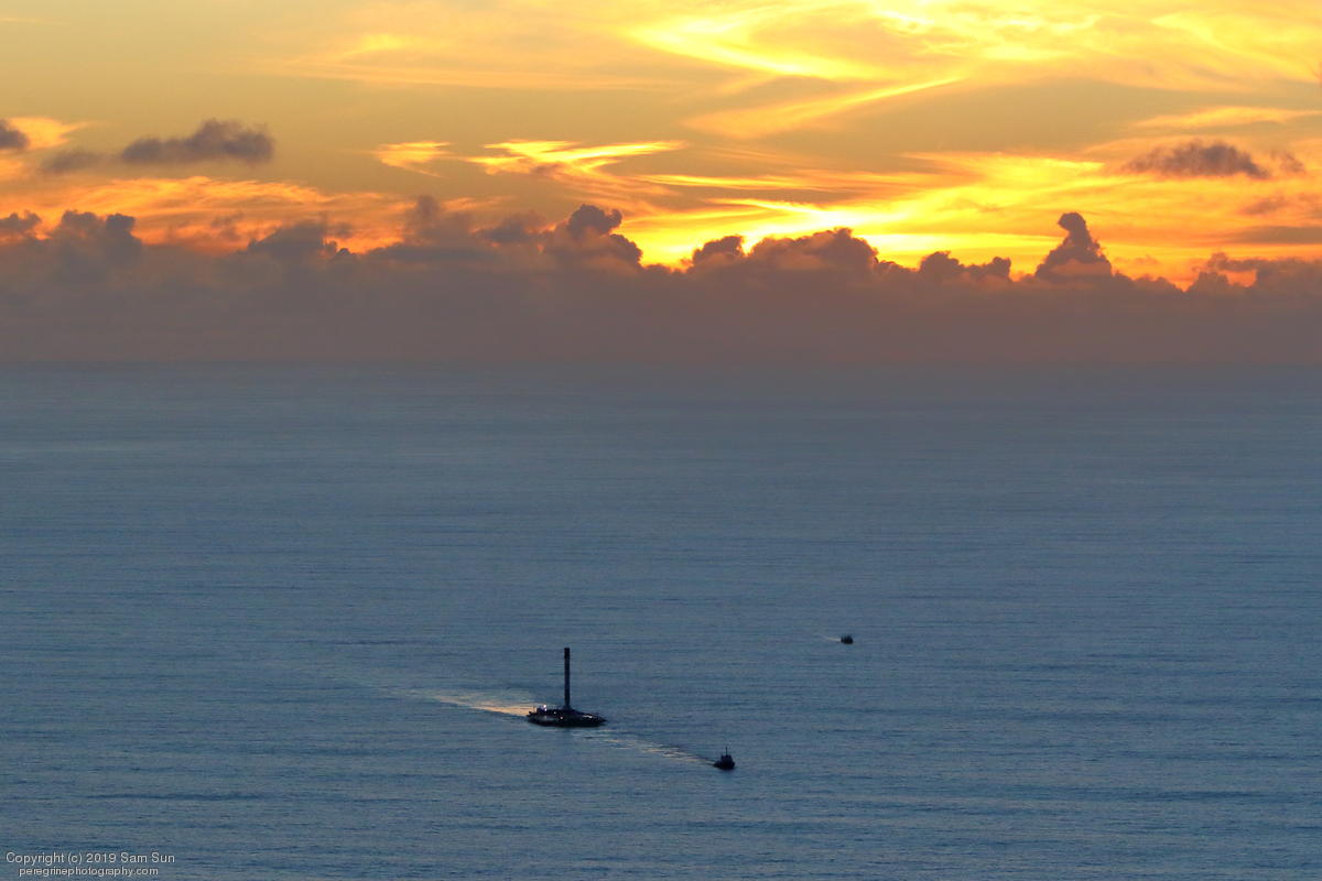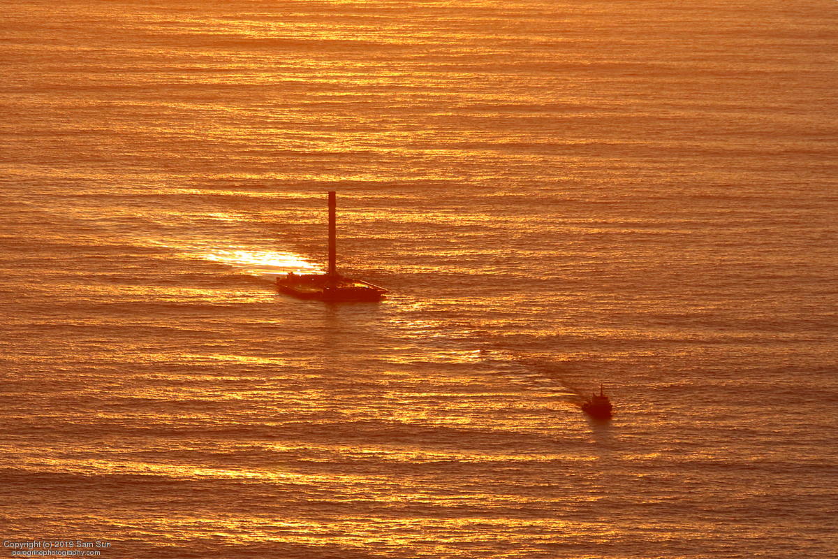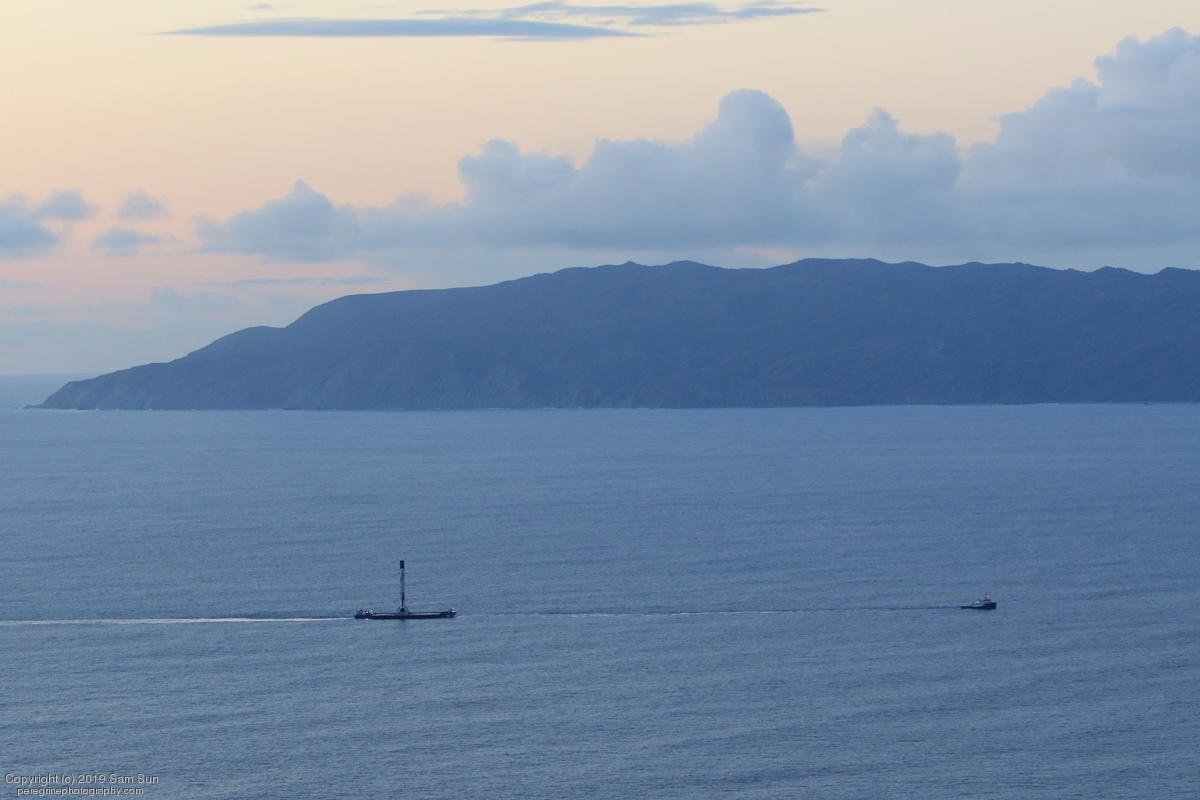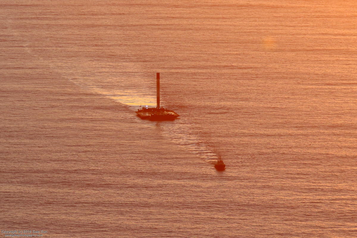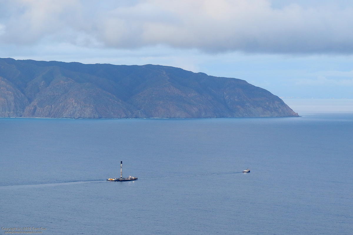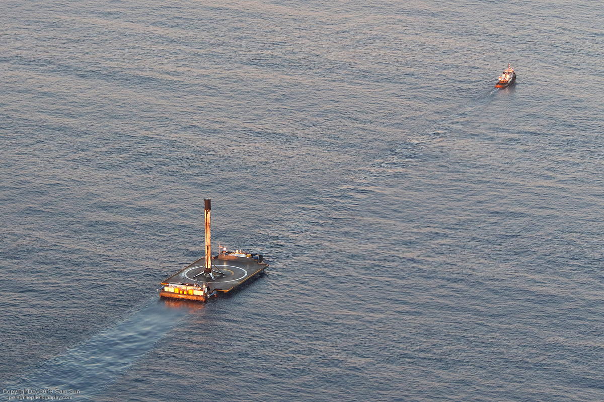 passing near Catalina Island on its way back to the Port of LA with Falcon 9 first stage from the Iridium NEXT-8 launch
