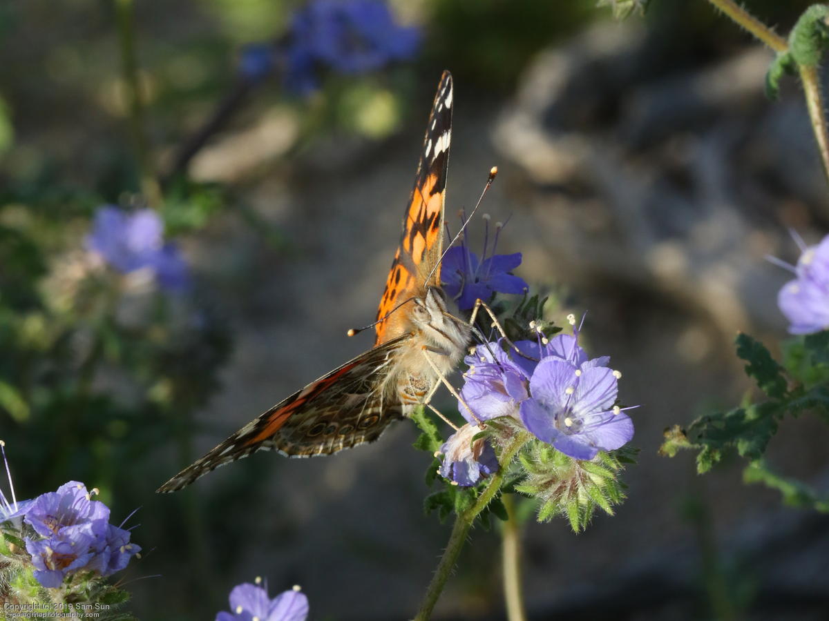 Painted Lady butterflies and White-Lined Sphinx caterpillars were abundant