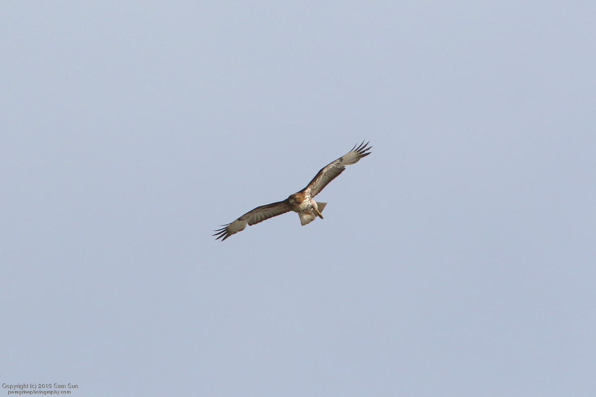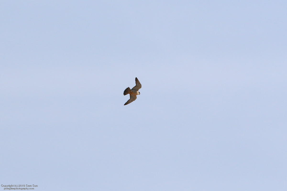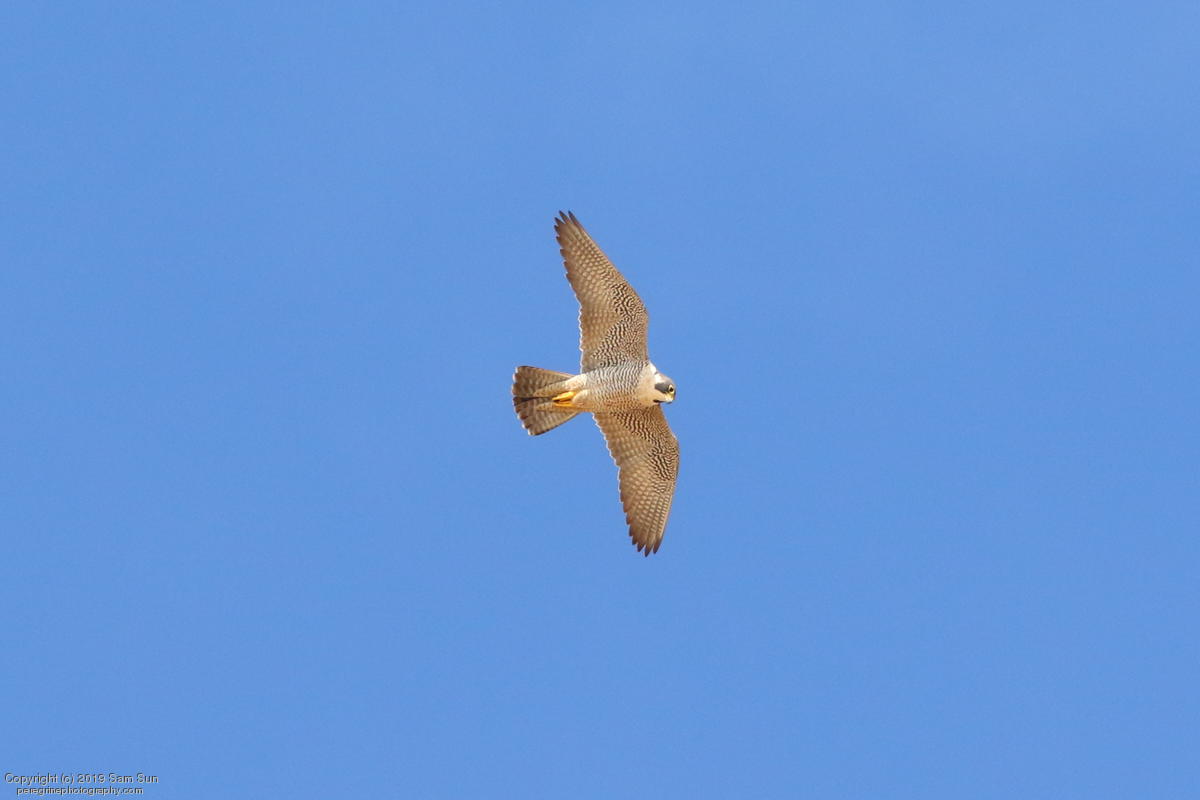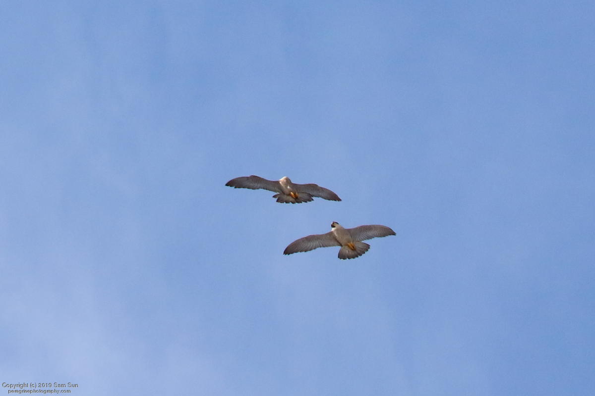 It was a long wait this afternoon. Both adults flew briefly as I arrived. It looked like the female disappeared into the new suspected nest ledge, so I staked it out. Three hours later, the male came by with food and they did an exchange right overhead! Unfortunately, my autofocus decided to lose the handoff shot.
