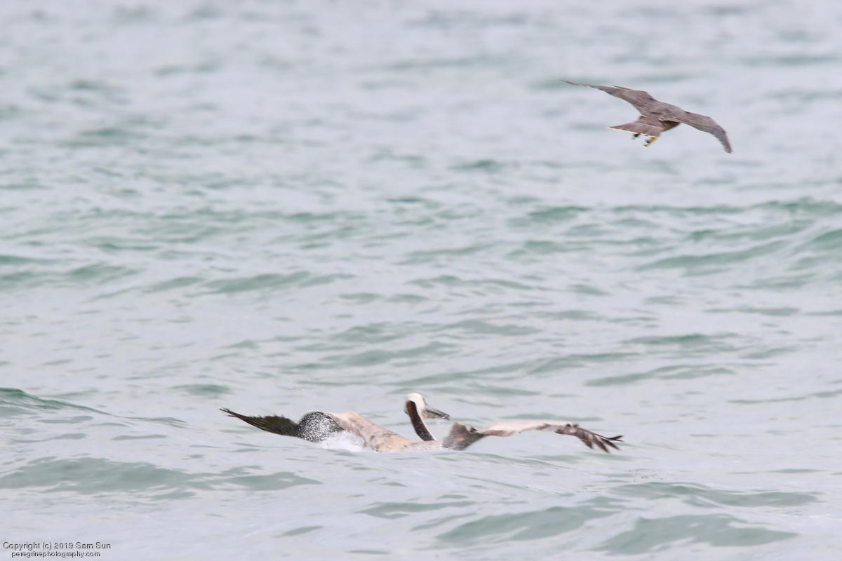 The sun was out for a while this afternoon, but turned partly cloudy by the time I got to the beach. All three juveniles came out dogfighting for a while.