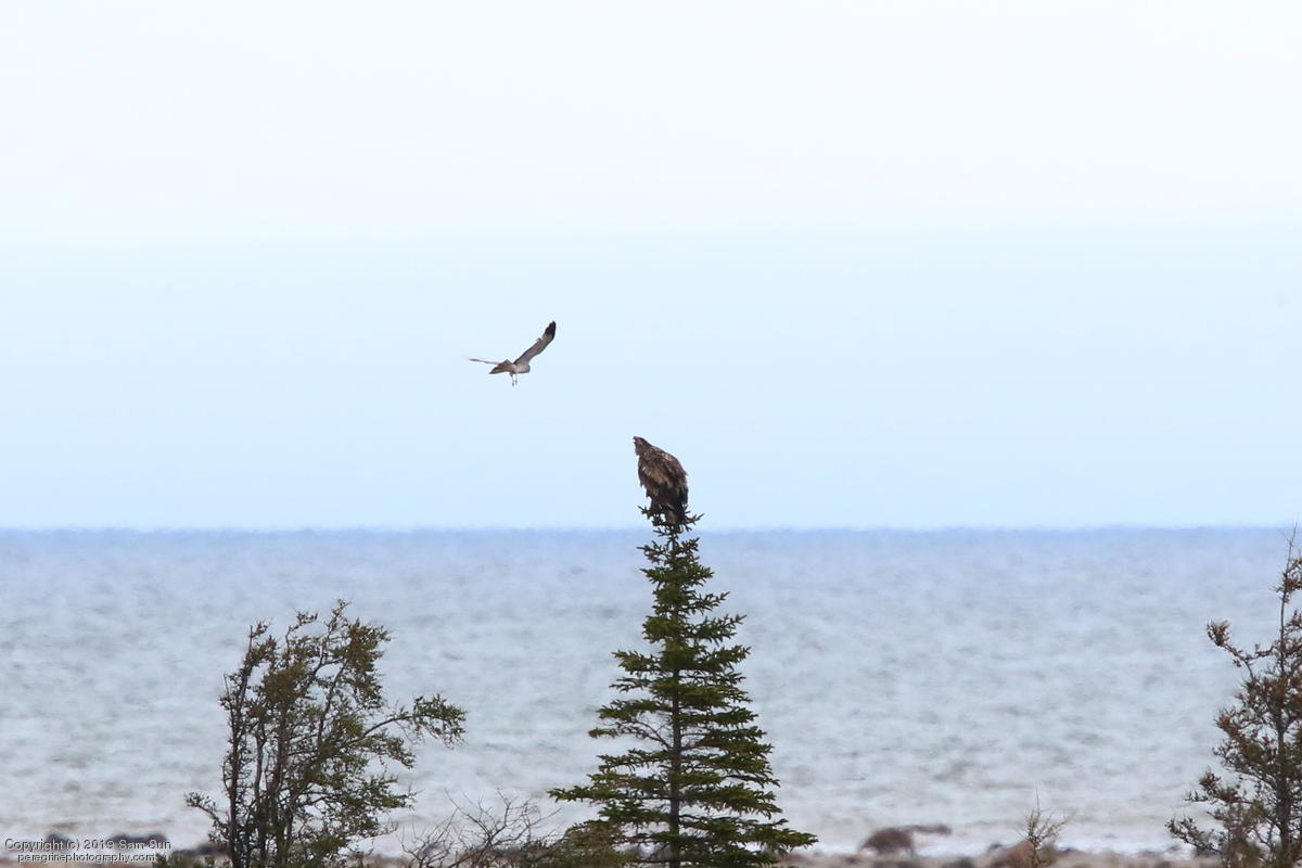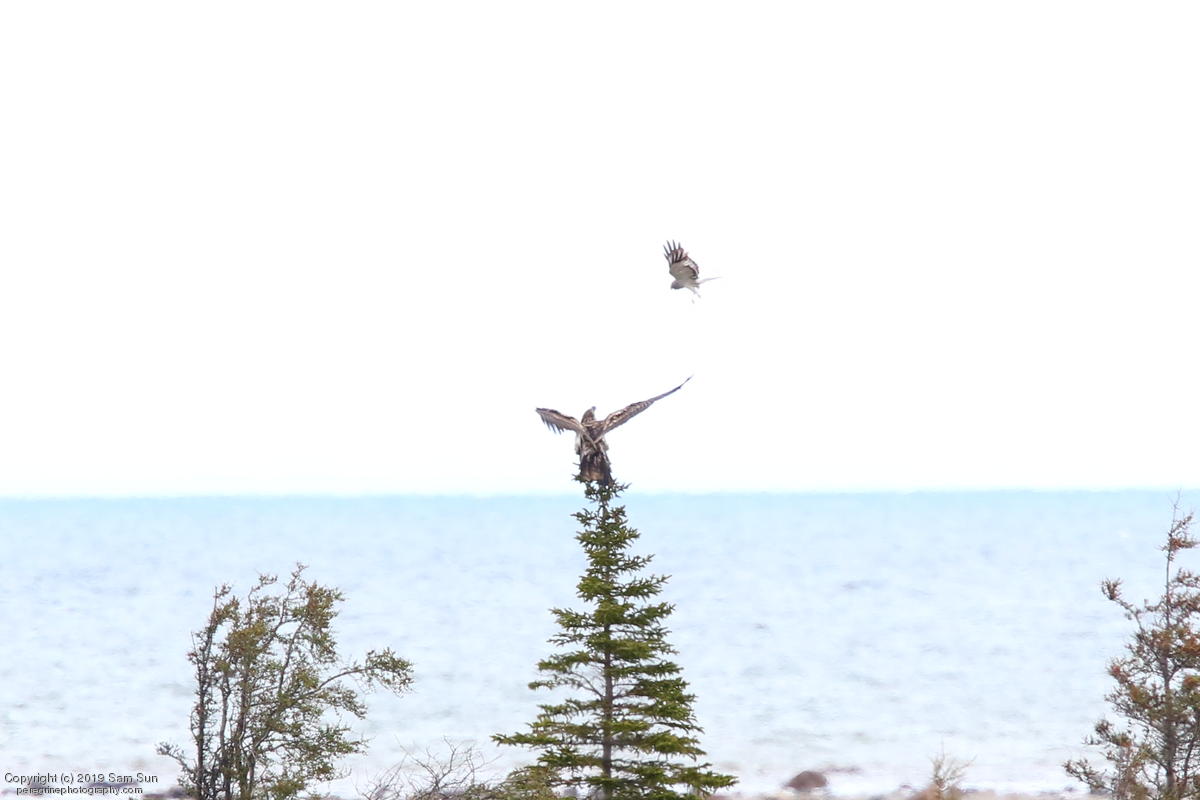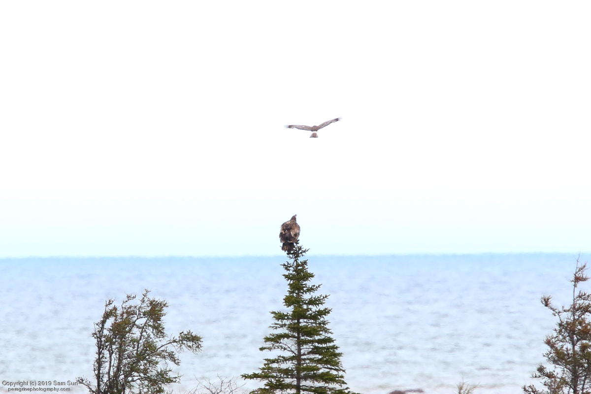 Northern Harrier buzzing juvenile Bald Eagle