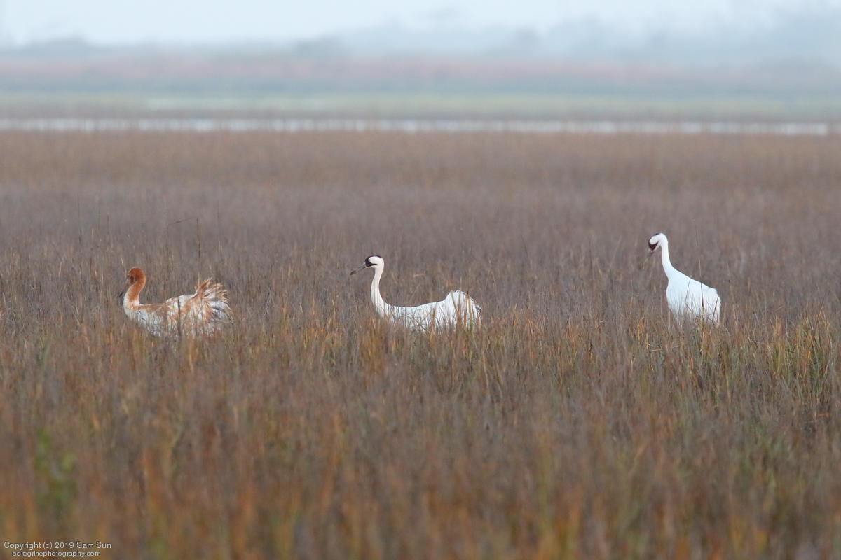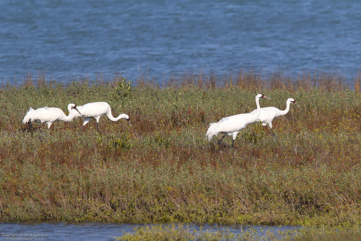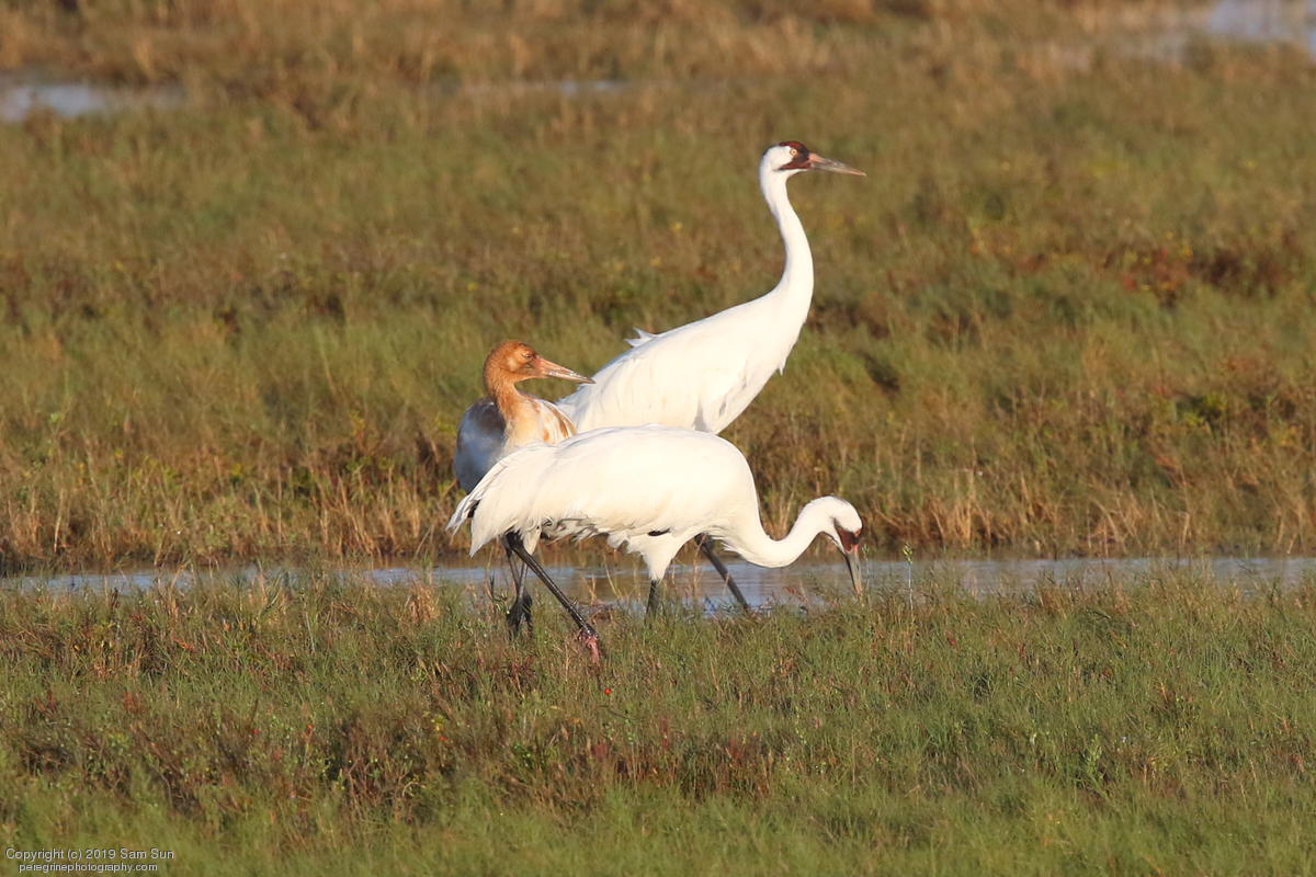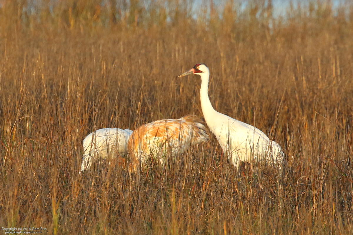 I took a photo tour with Aransas Bay Birding Charters, and we got a close up look at several Whooping Crane families.