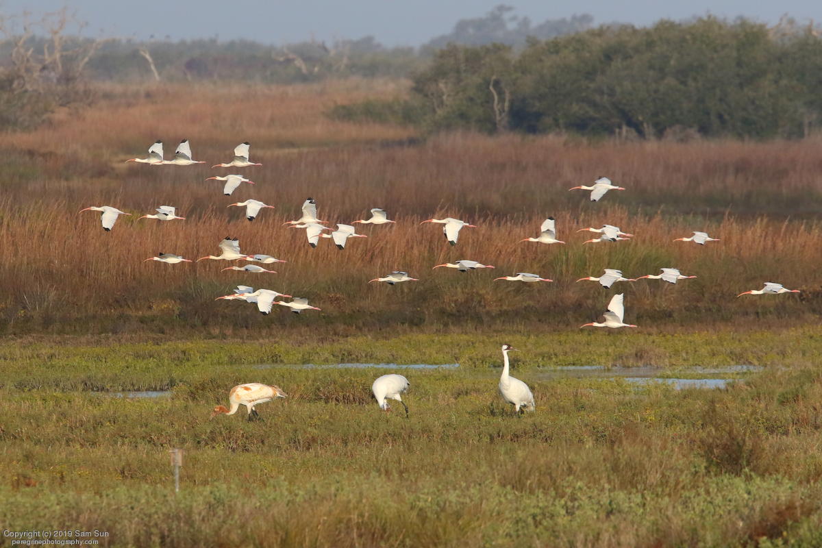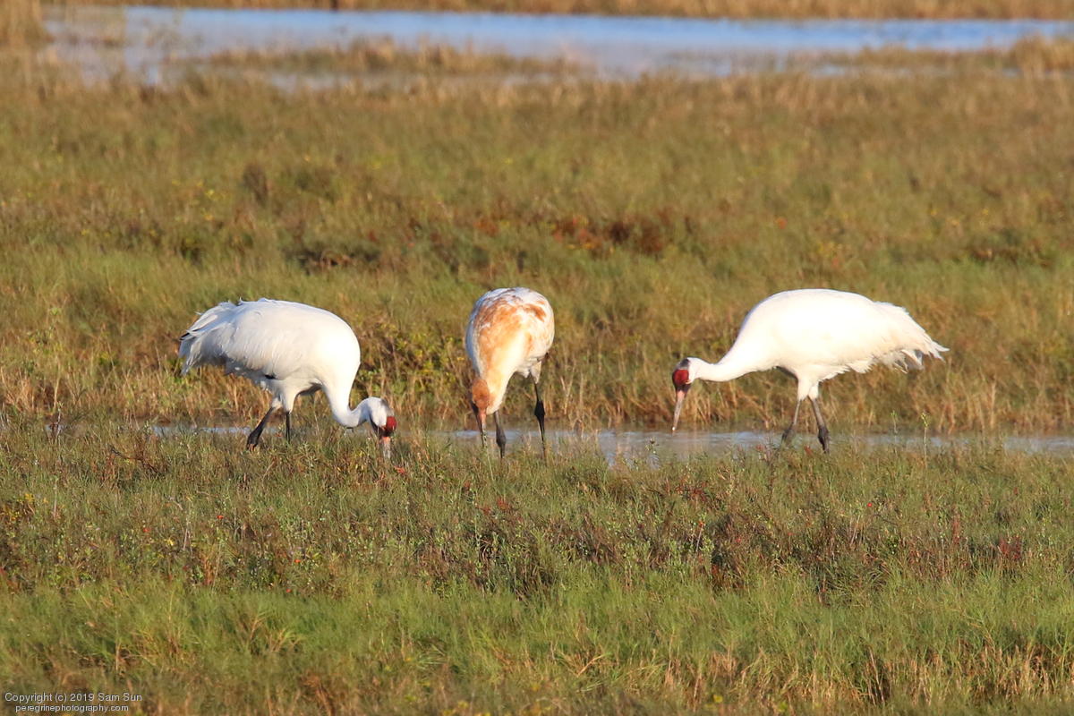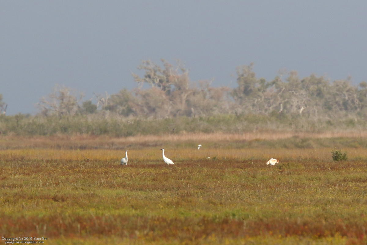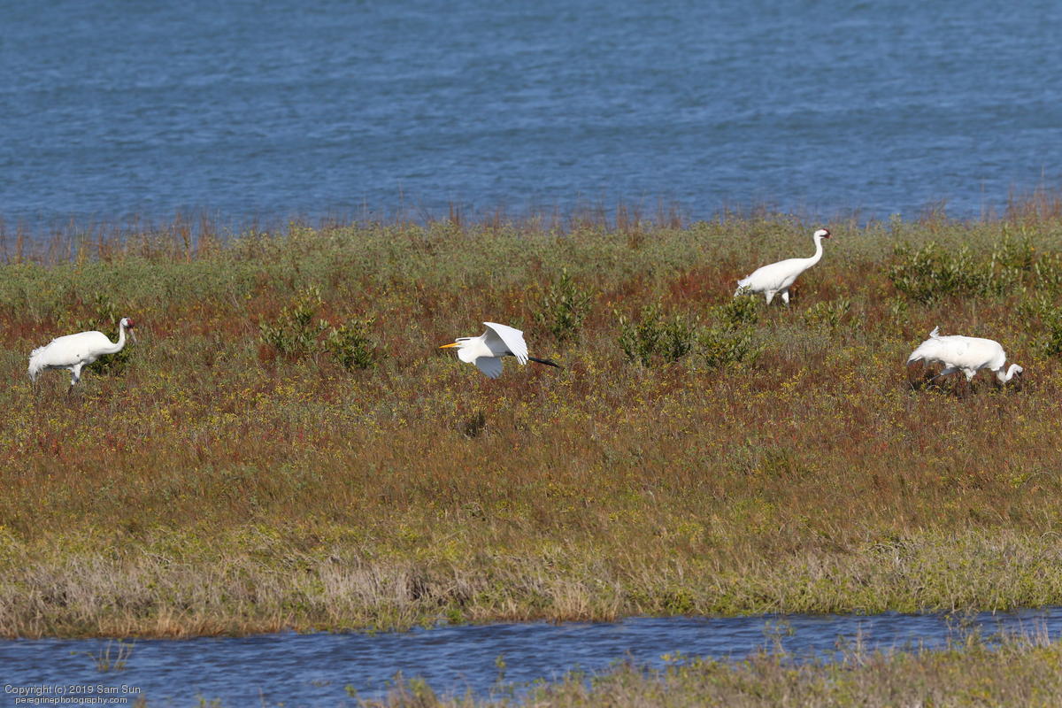 I took a photo tour with Aransas Bay Birding Charters, and we got a close up look at several Whooping Crane families.
