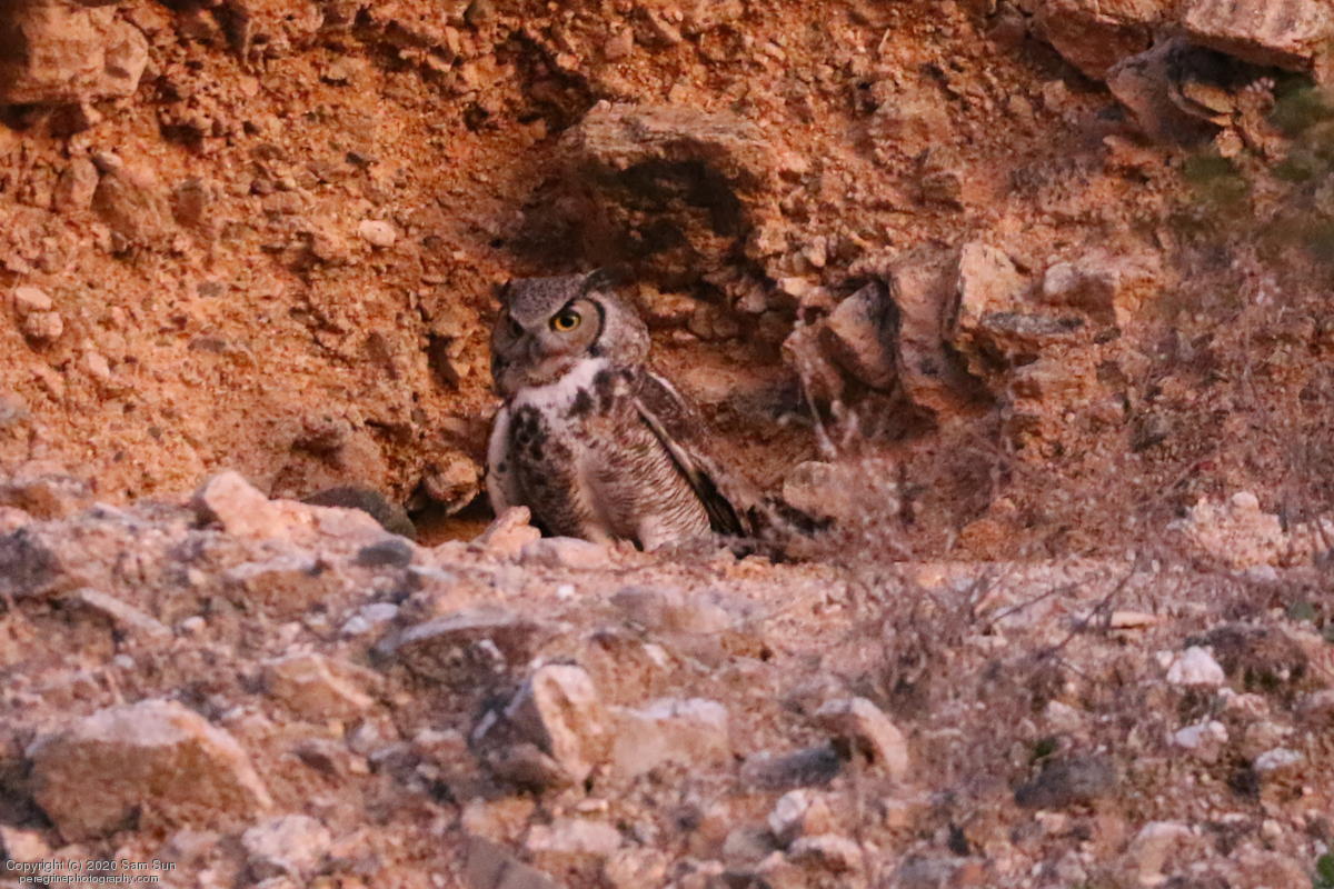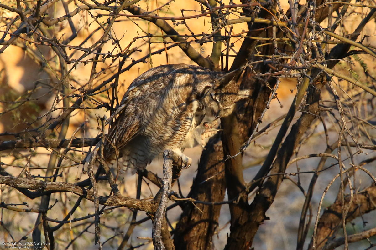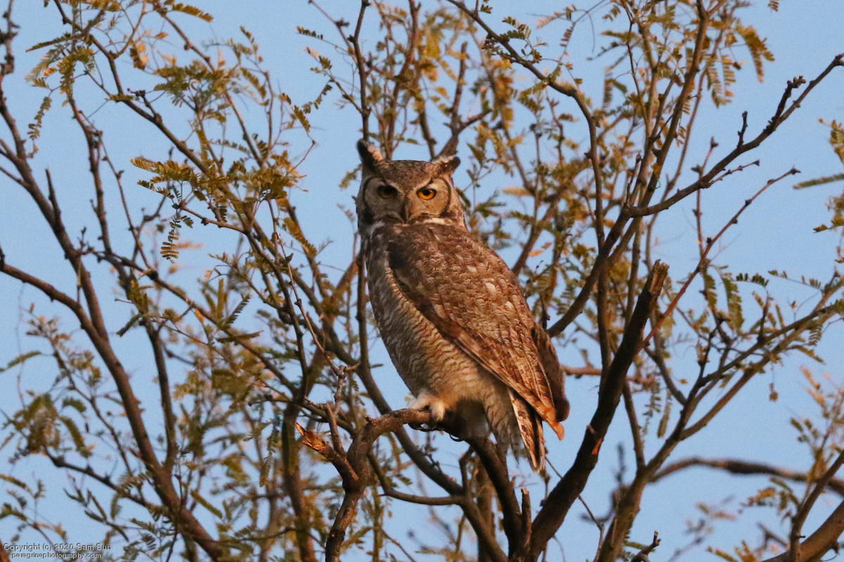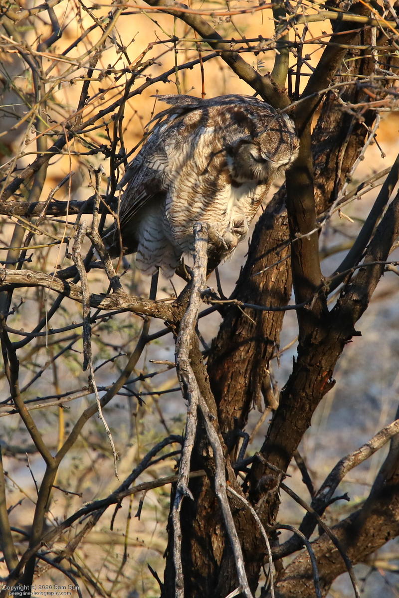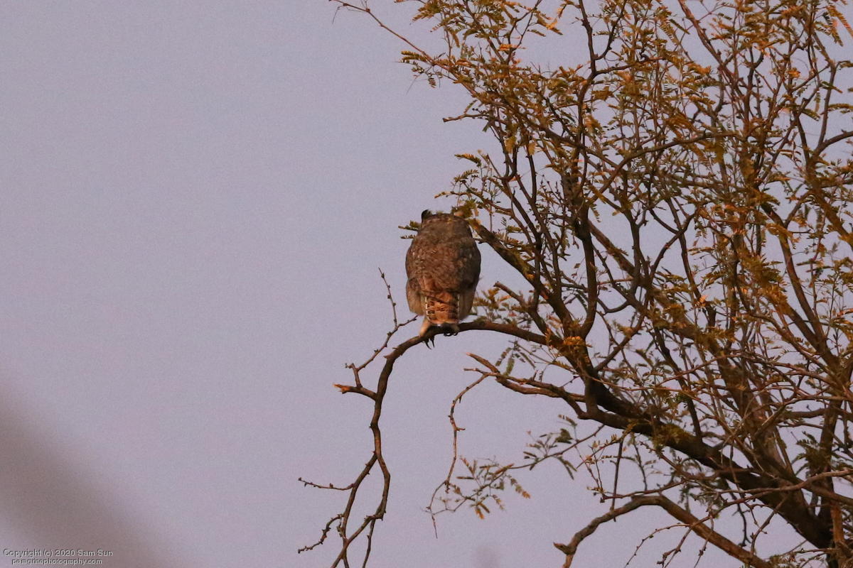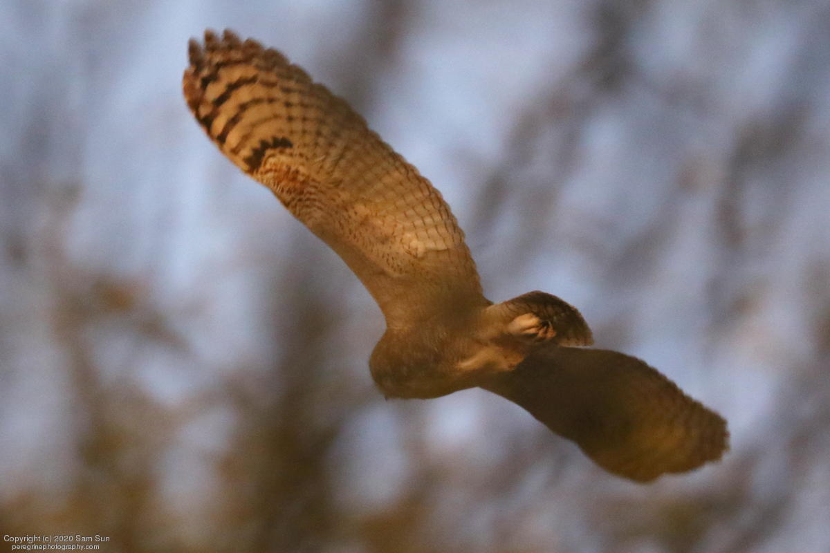 Another visit to the owls. For a while it seemed I would miss them tonight, but the female eventually flew in. She started hooting and the male answered from some trees (which I'd already spent 30 minutes looking into), but I couldn't find him.