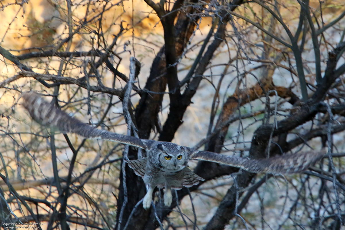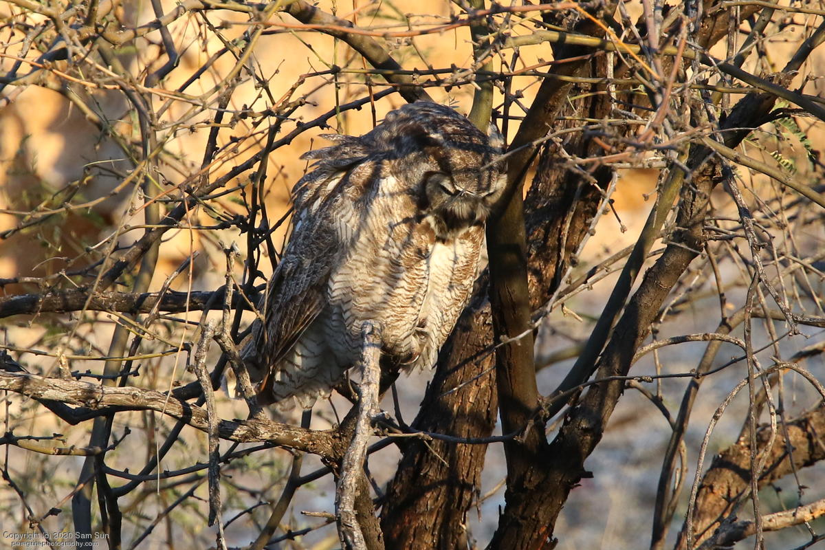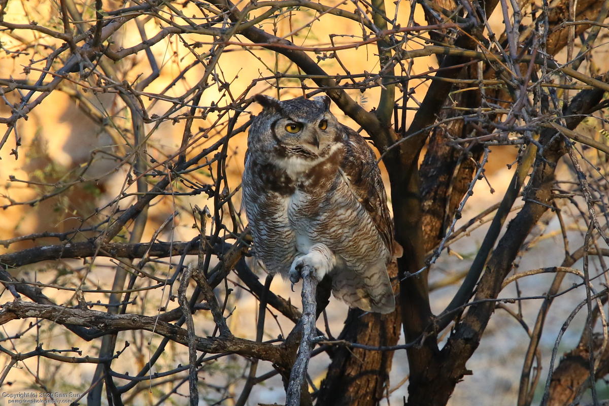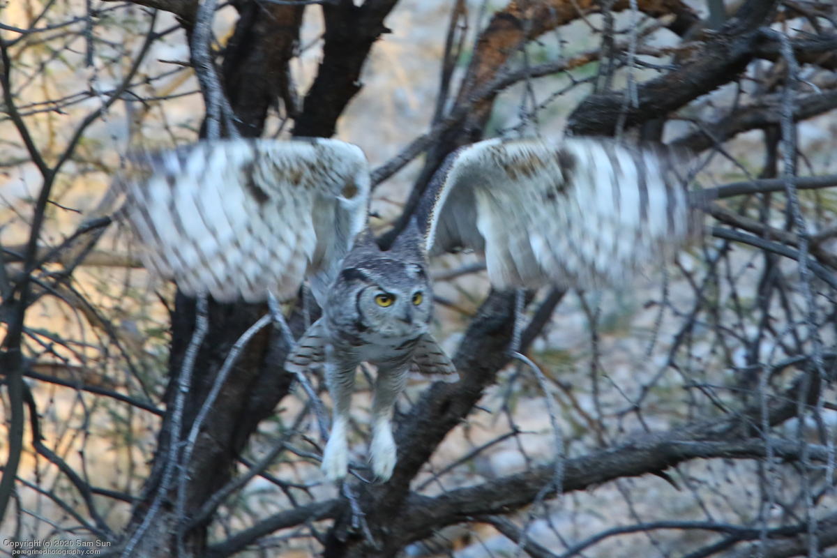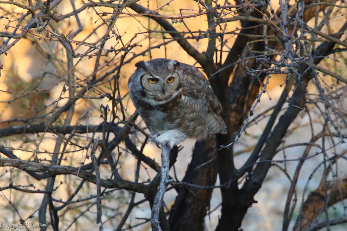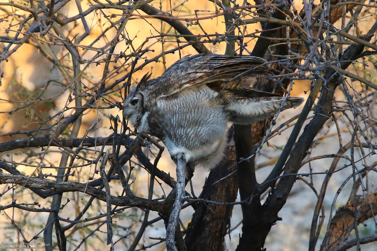 Another visit to the owls. For a while it seemed I would miss them tonight, but the female eventually flew in. She started hooting and the male answered from some trees (which I'd already spent 30 minutes looking into), but I couldn't find him.