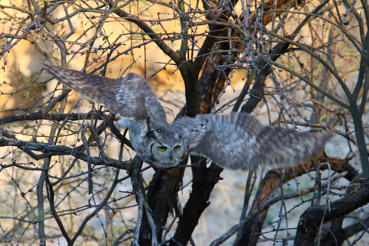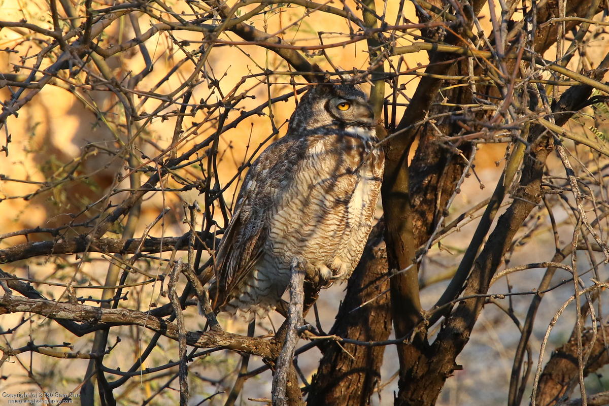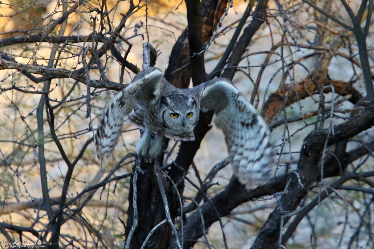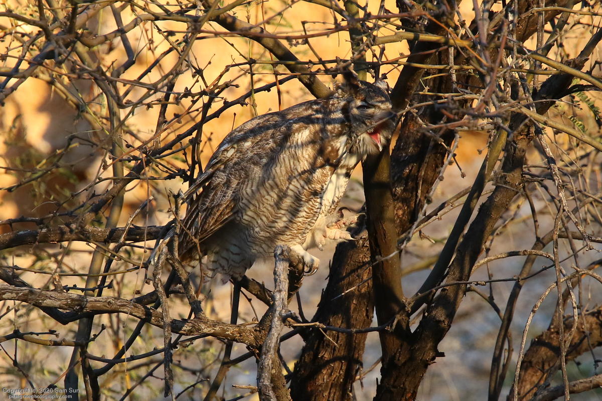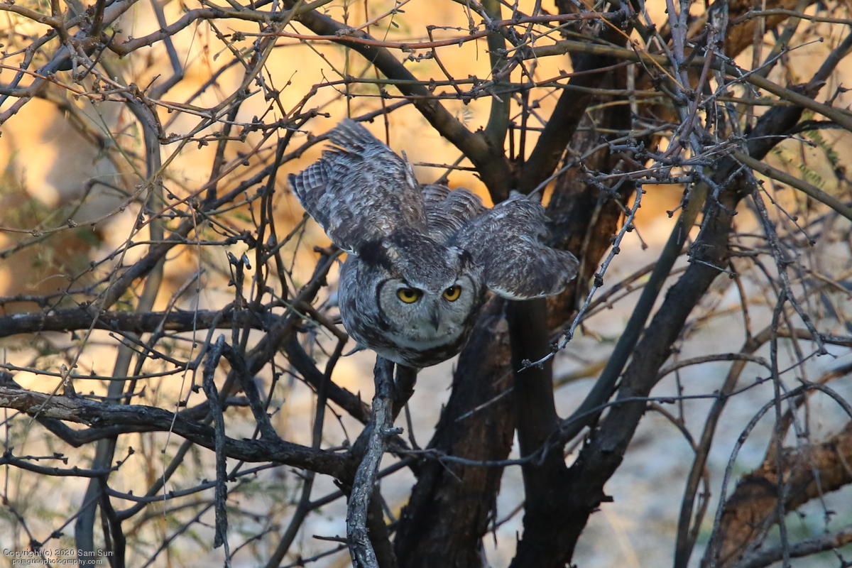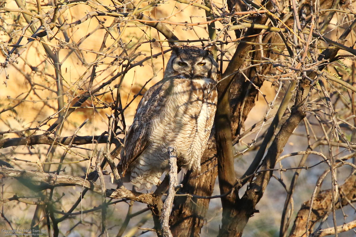 Another visit to the owls. For a while it seemed I would miss them tonight, but the female eventually flew in. She started hooting and the male answered from some trees (which I'd already spent 30 minutes looking into), but I couldn't find him.