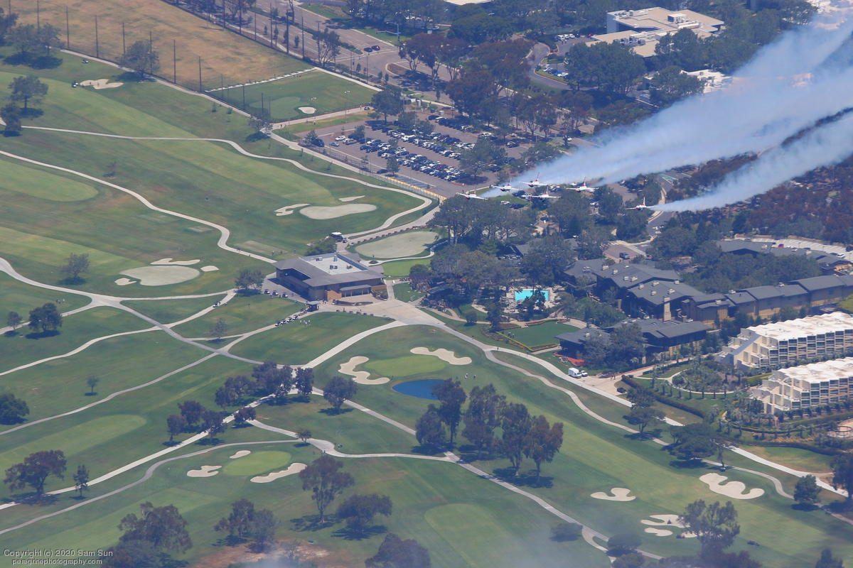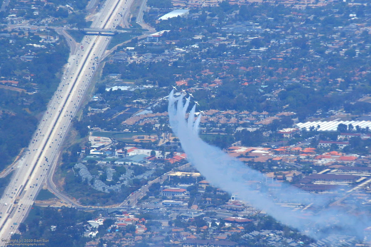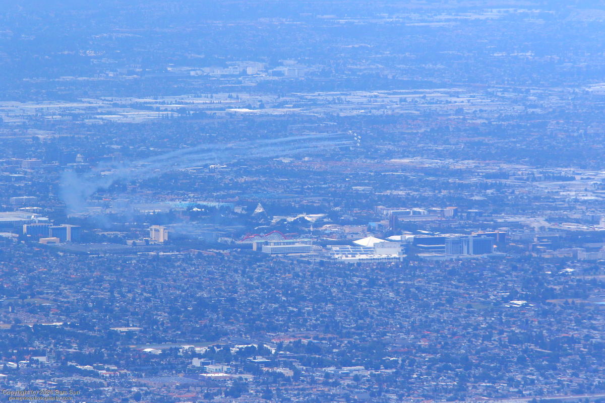 After the San Diego portion of the flyover, the Thunderbirds refueled, giving me time to head up to Orange County. They few a slightly different route than previously published, so I wasn't in as good a position to see them. I did catch a moment where #6 performed an emergency breakout. News footage of it here