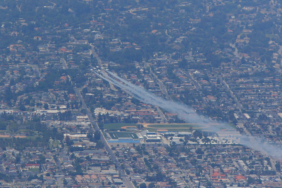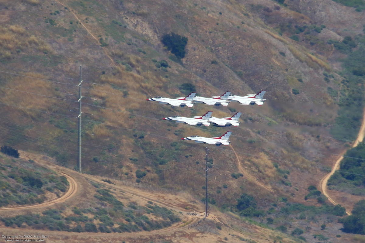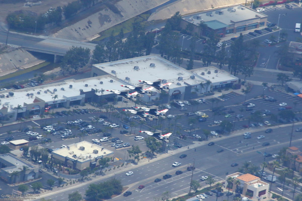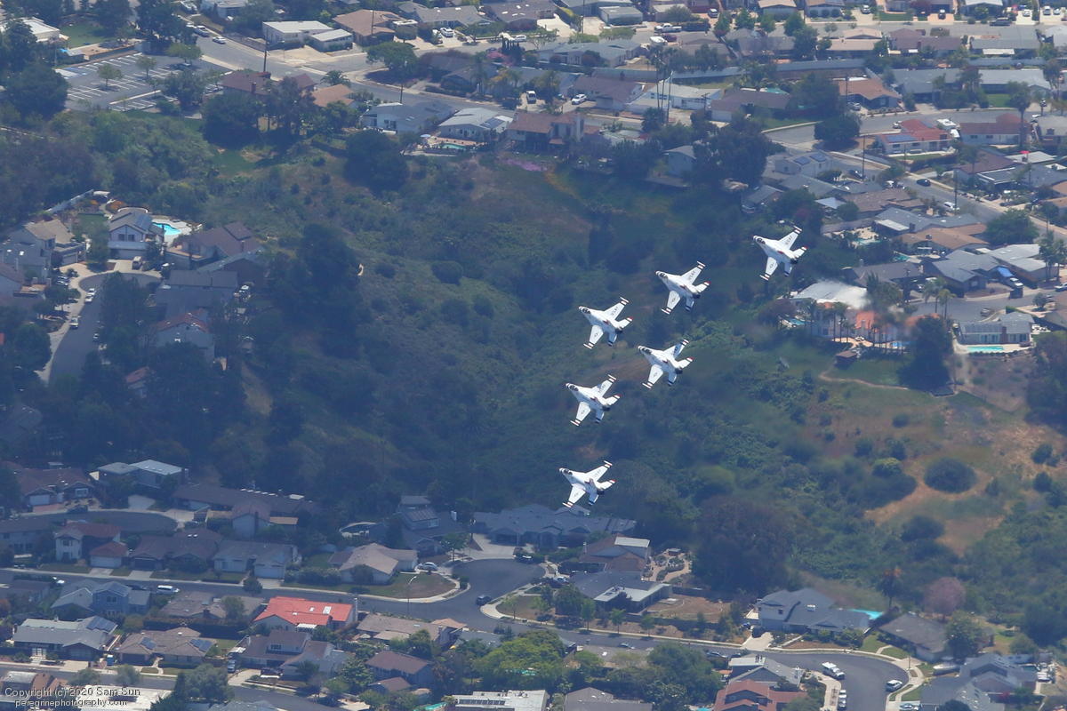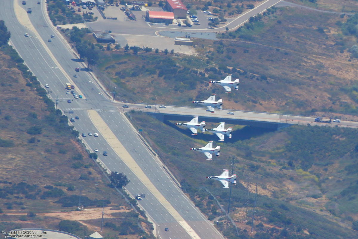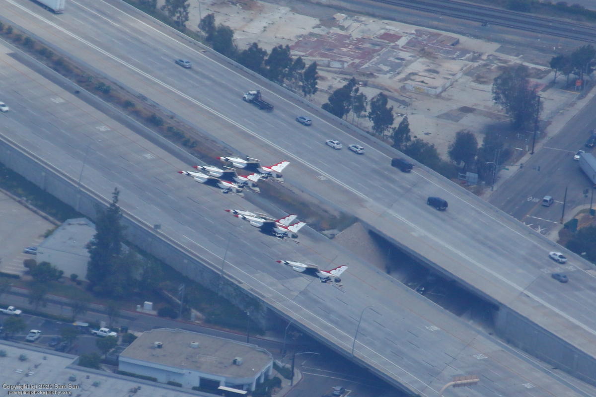 As part of the America Strong series of flyovers saluting healthcare workers and first responders, the USAF Thunderbirds performed a series of flyovers of San Diego and Los Angeles medical facilites. I watched their flight from a socially distanced altitude of approximately 4500'