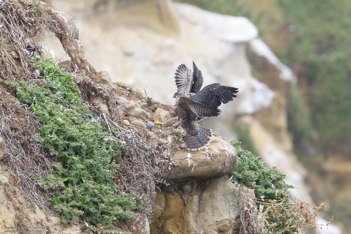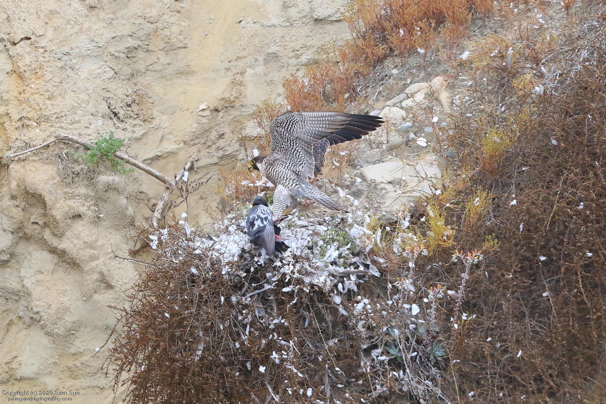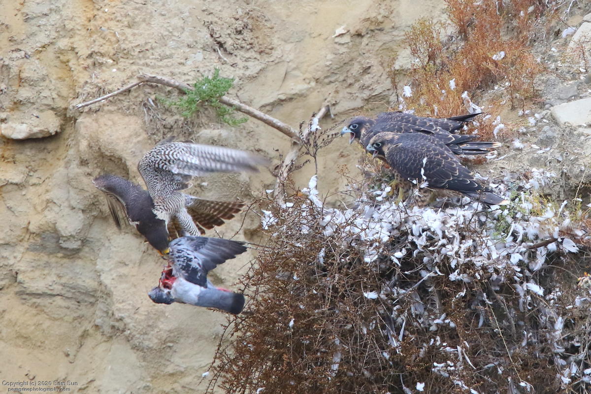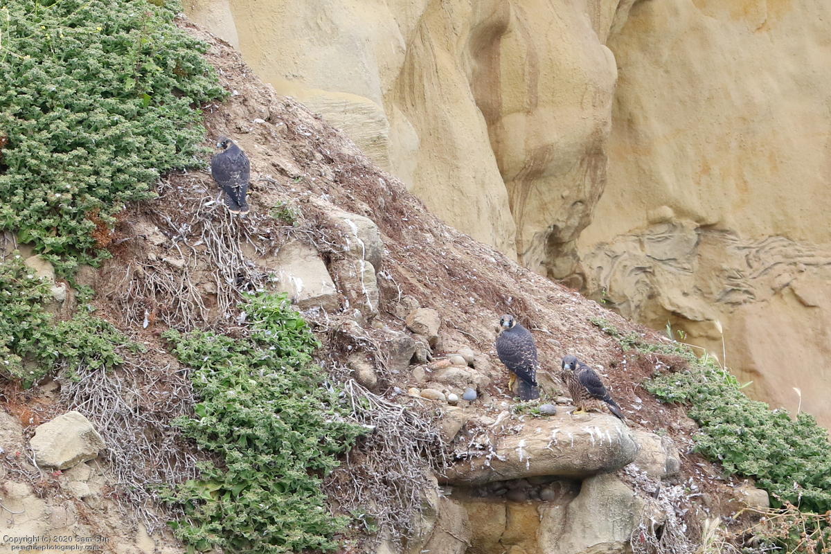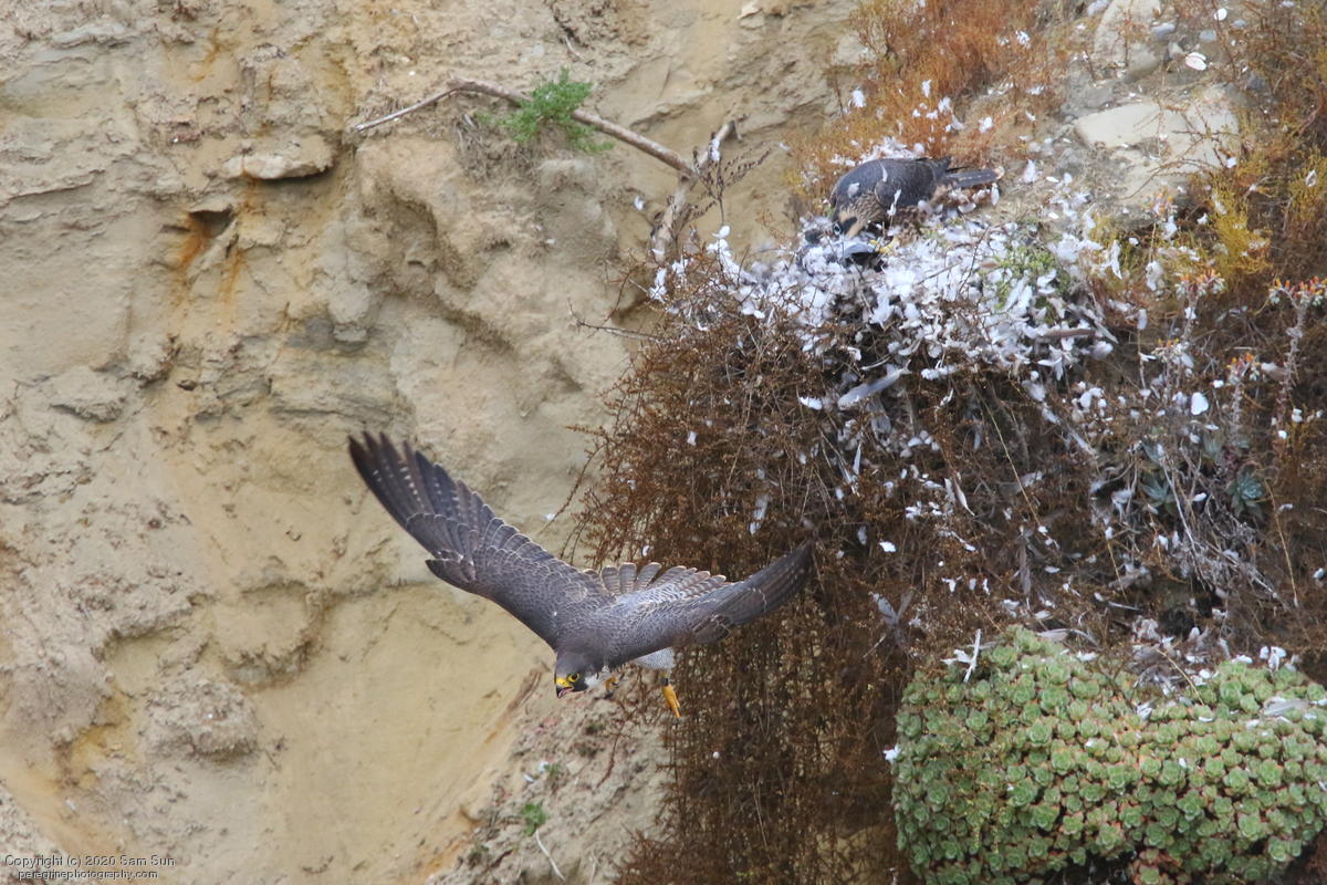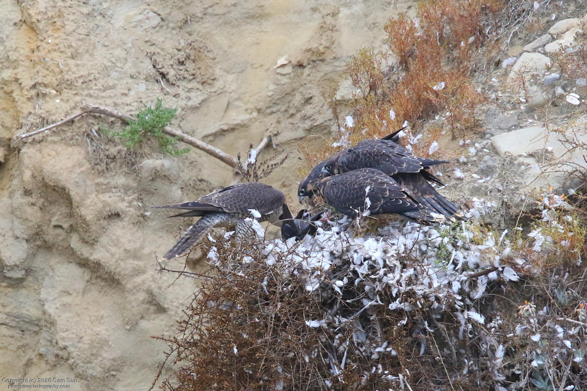 Three chicks at La Jolla have fledged - about 2-3 days ago according to other photographers. They were making some short flights today. The parents made two food deliveries during the afternoon.