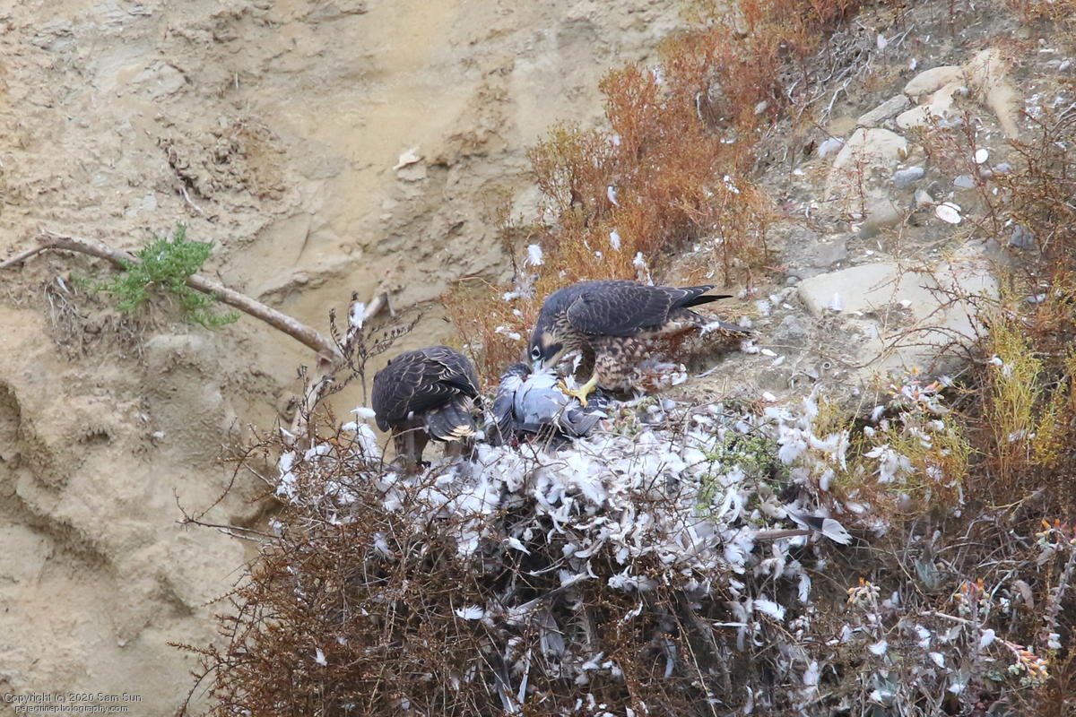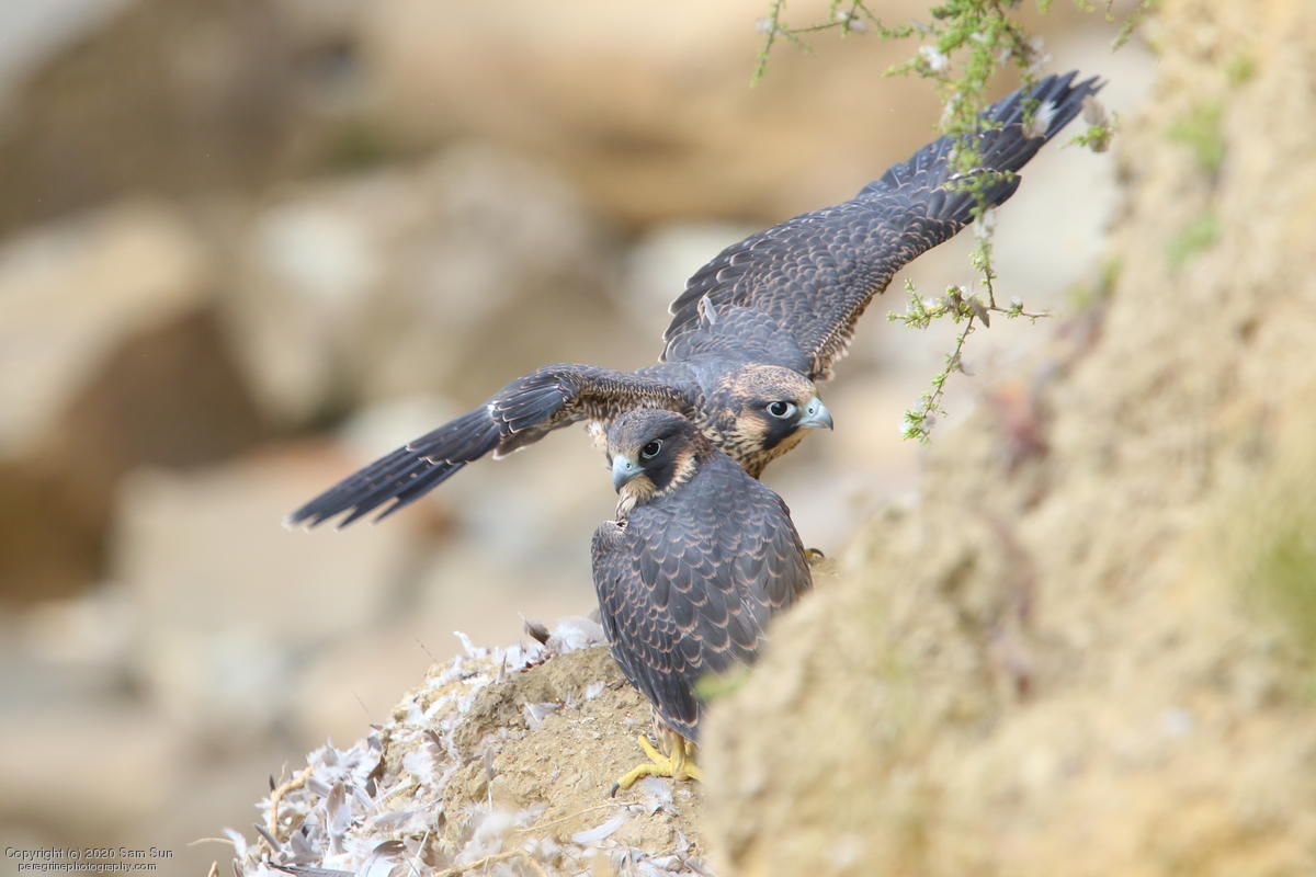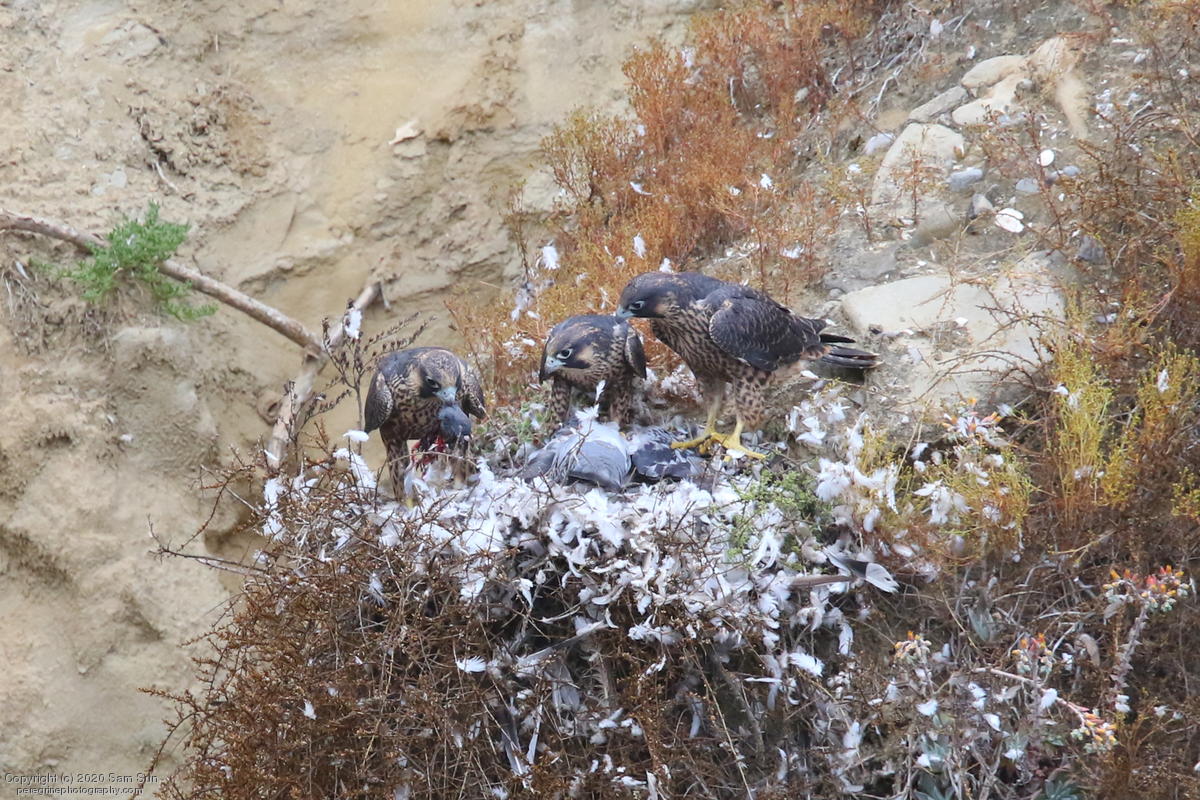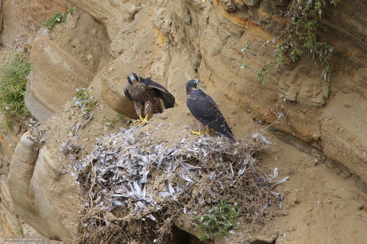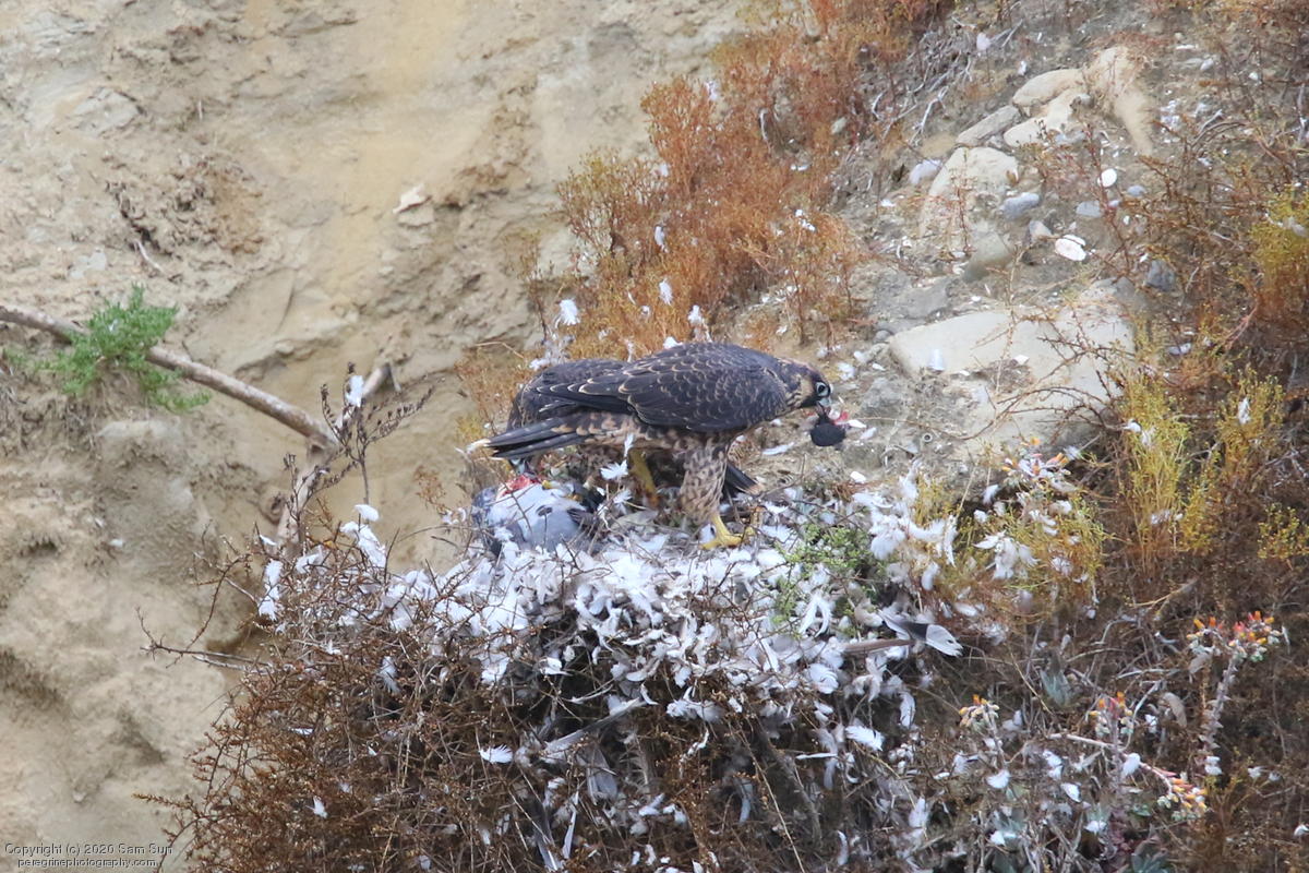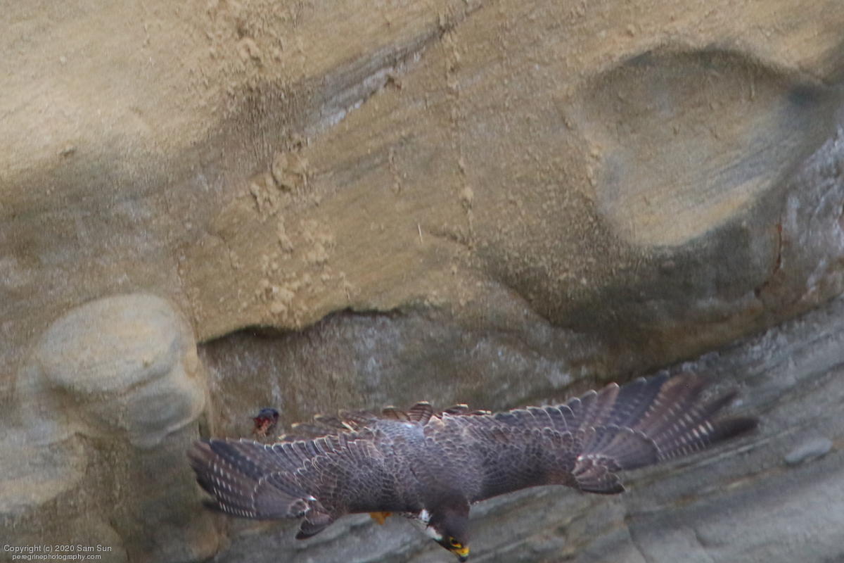 Three chicks at La Jolla have fledged - about 2-3 days ago according to other photographers. They were making some short flights today. The parents made two food deliveries during the afternoon.