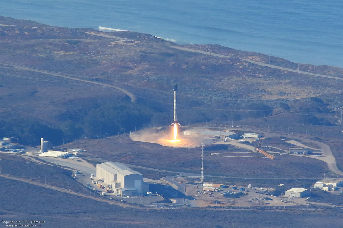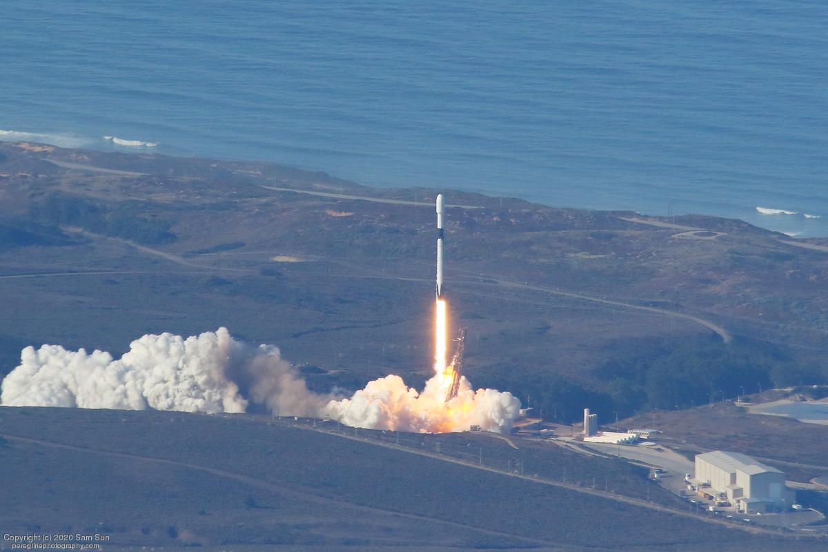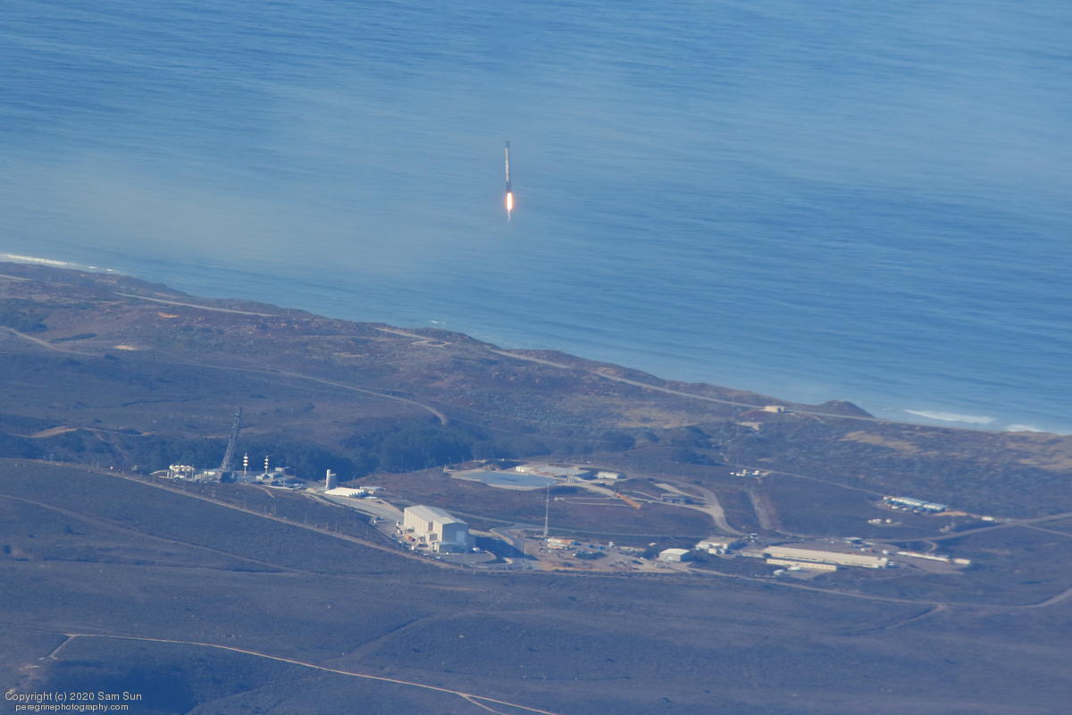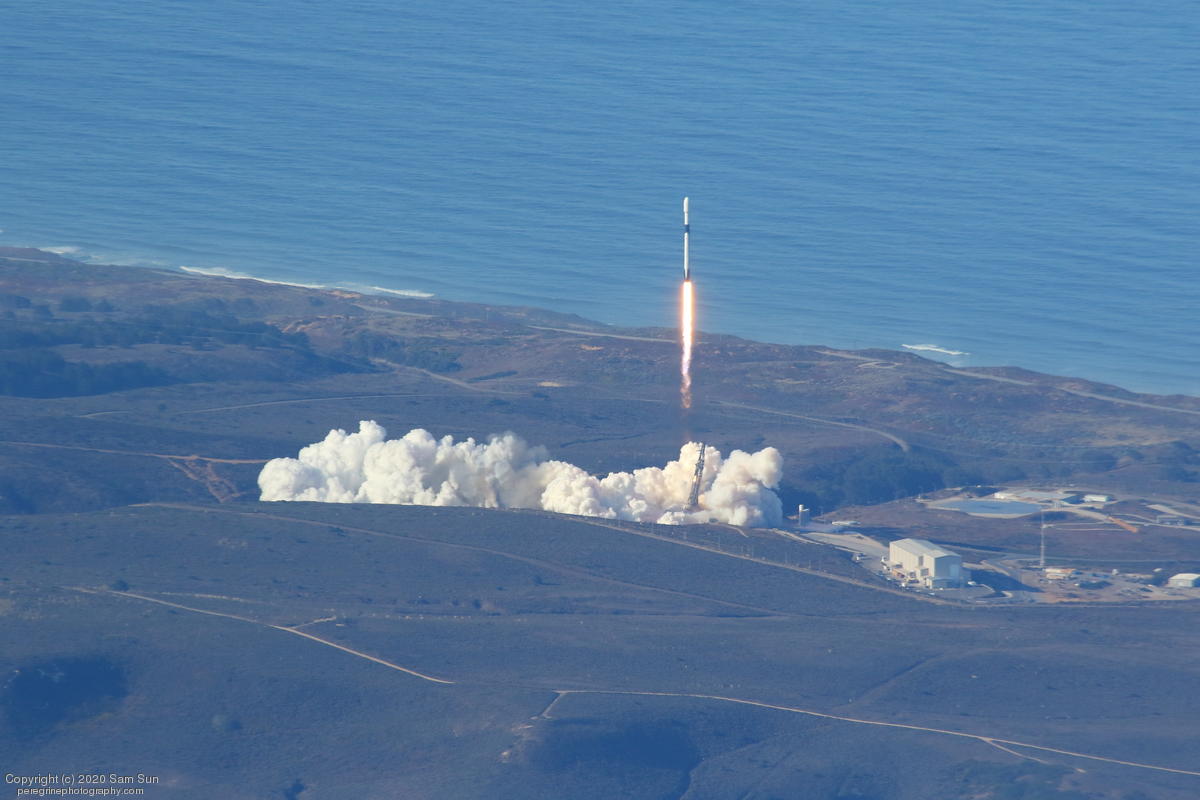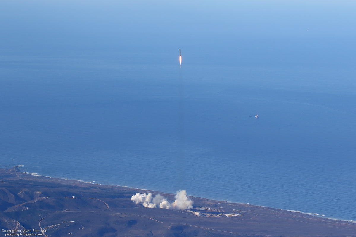Falcon 9 launch carrying an EU Copernicus earth observation satellite that will be monitoring sea levels. View from an altitude of 8500'.