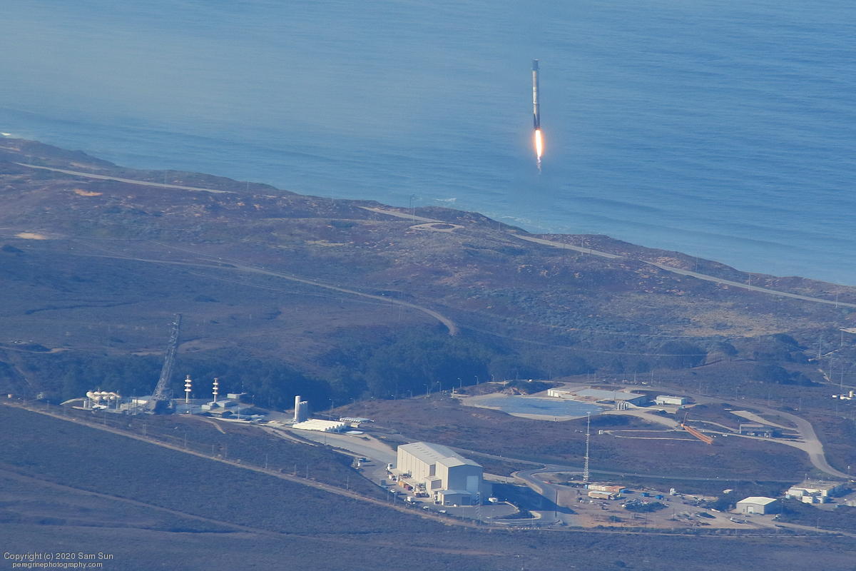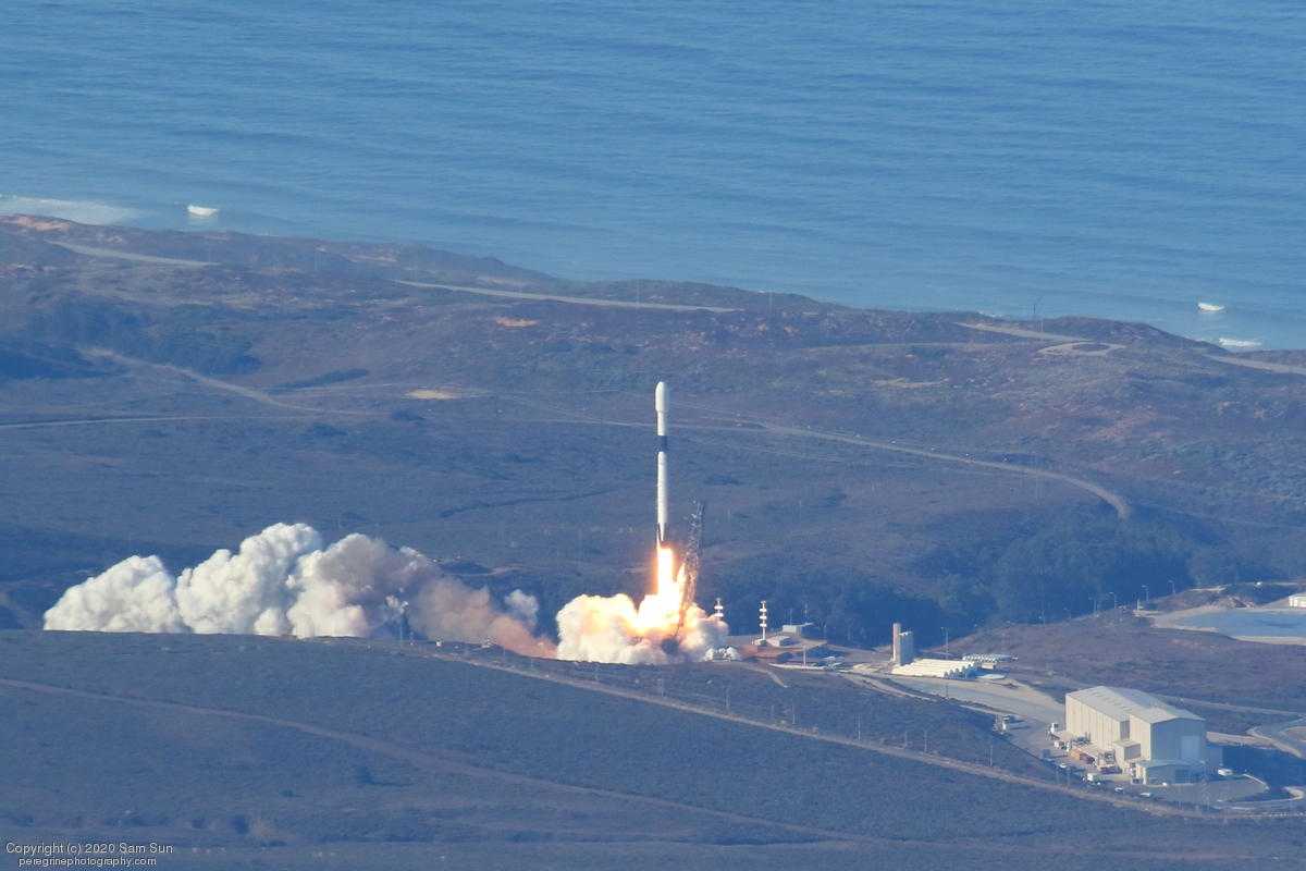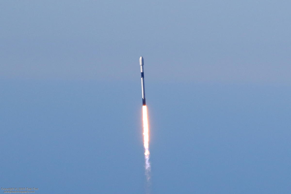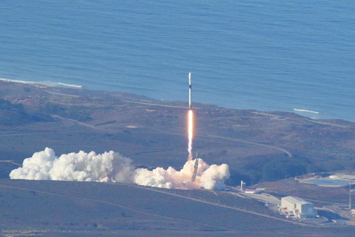 Falcon 9 launch carrying an EU Copernicus earth observation satellite that will be monitoring sea levels. View from an altitude of 8500'.