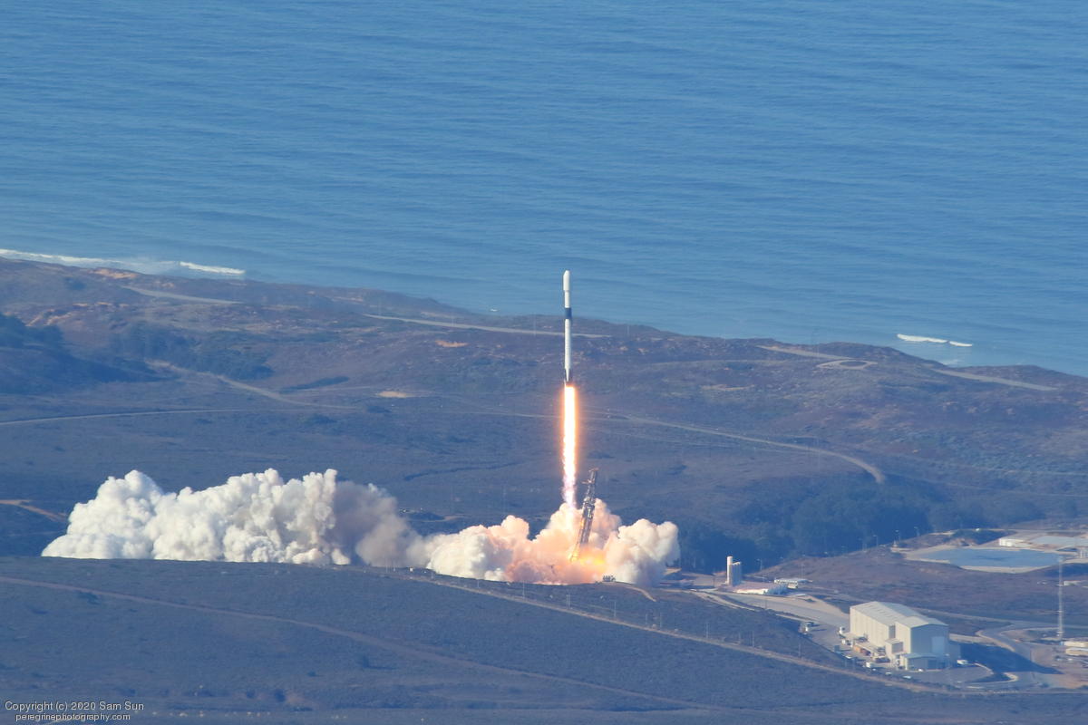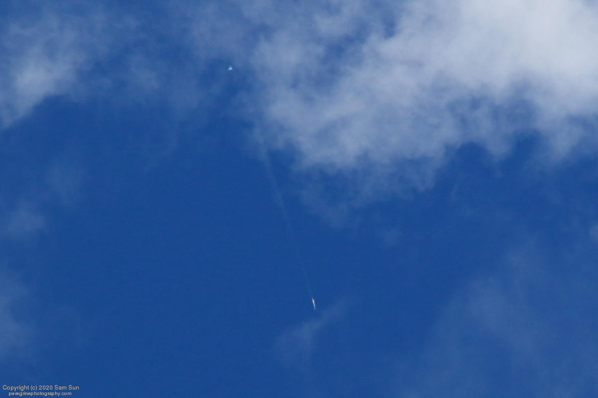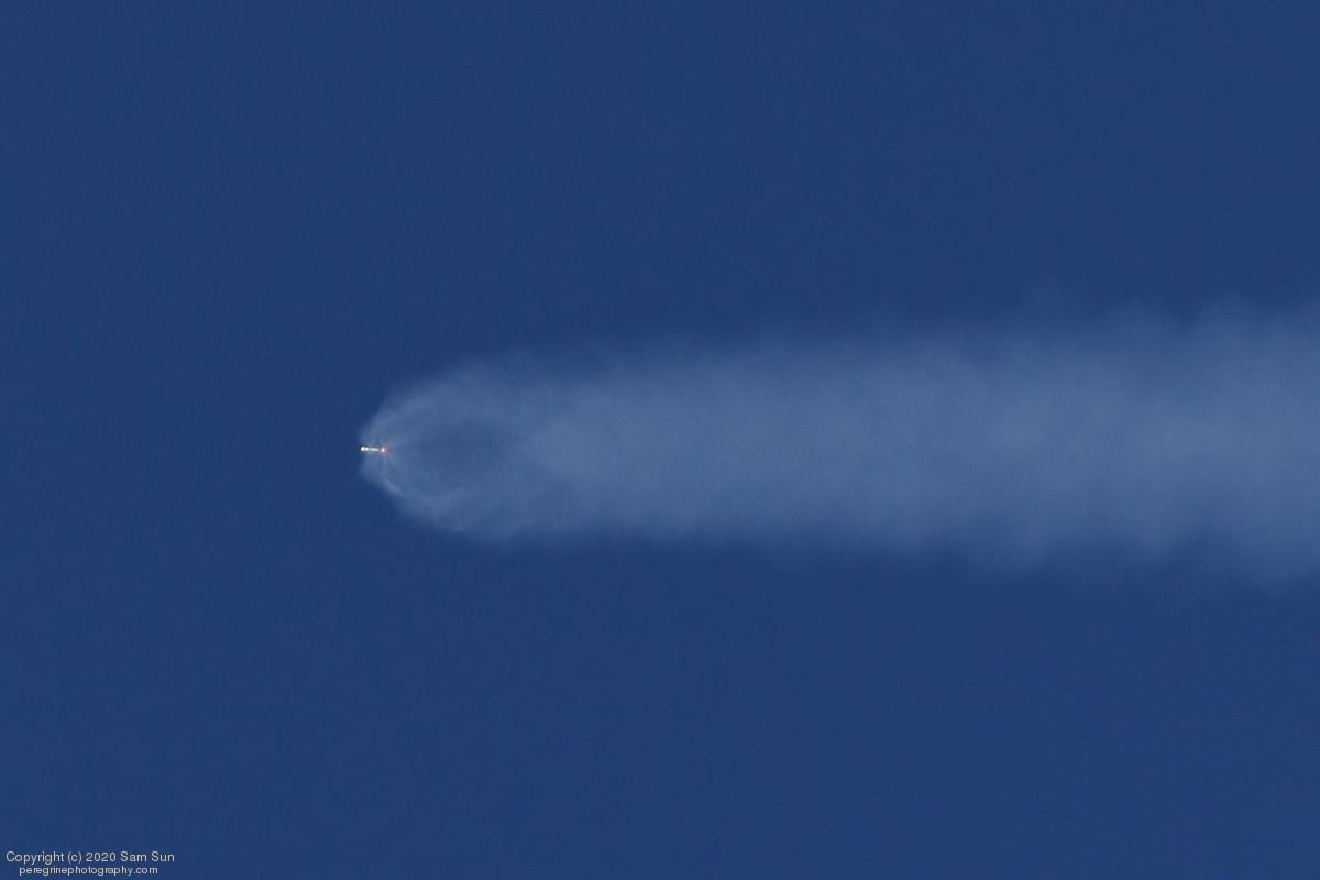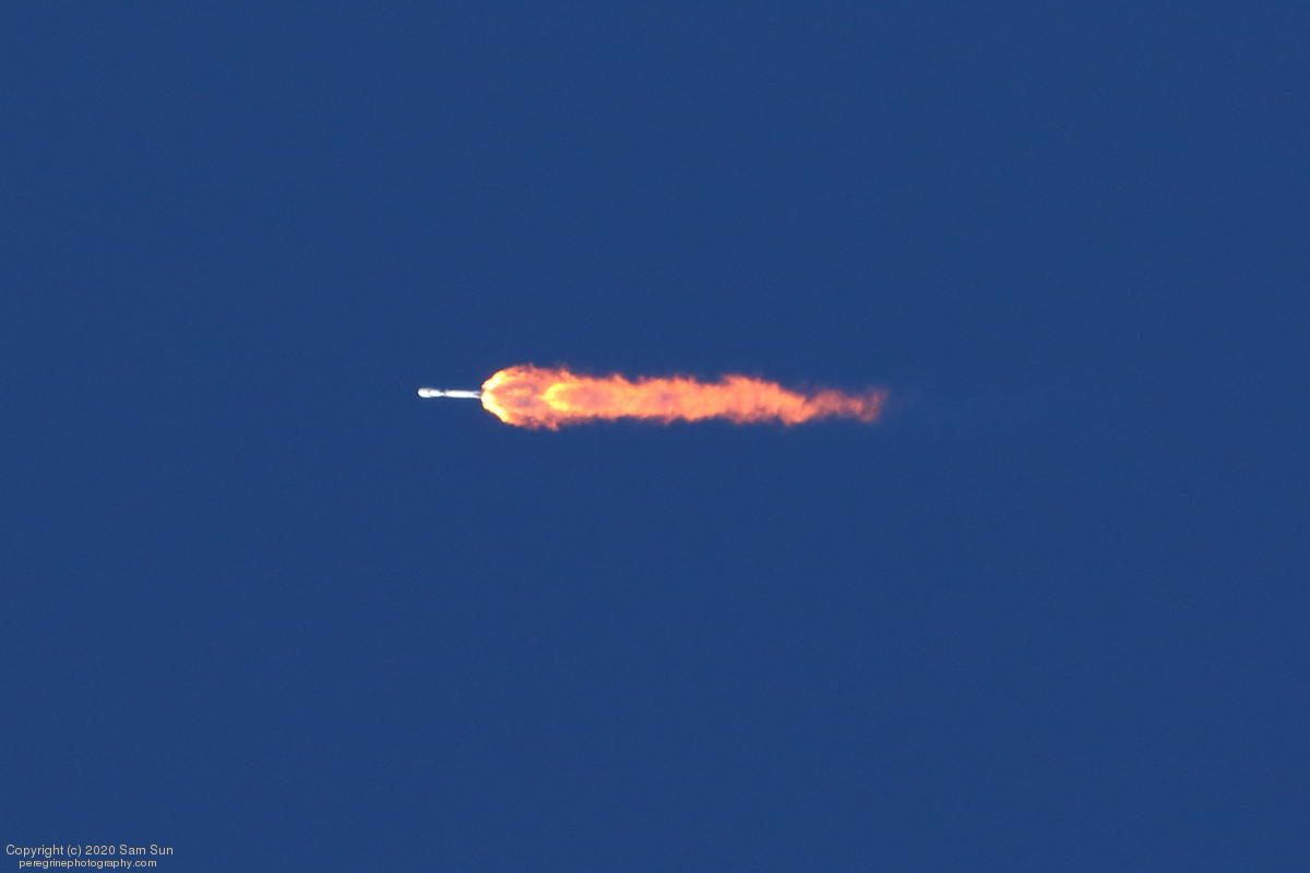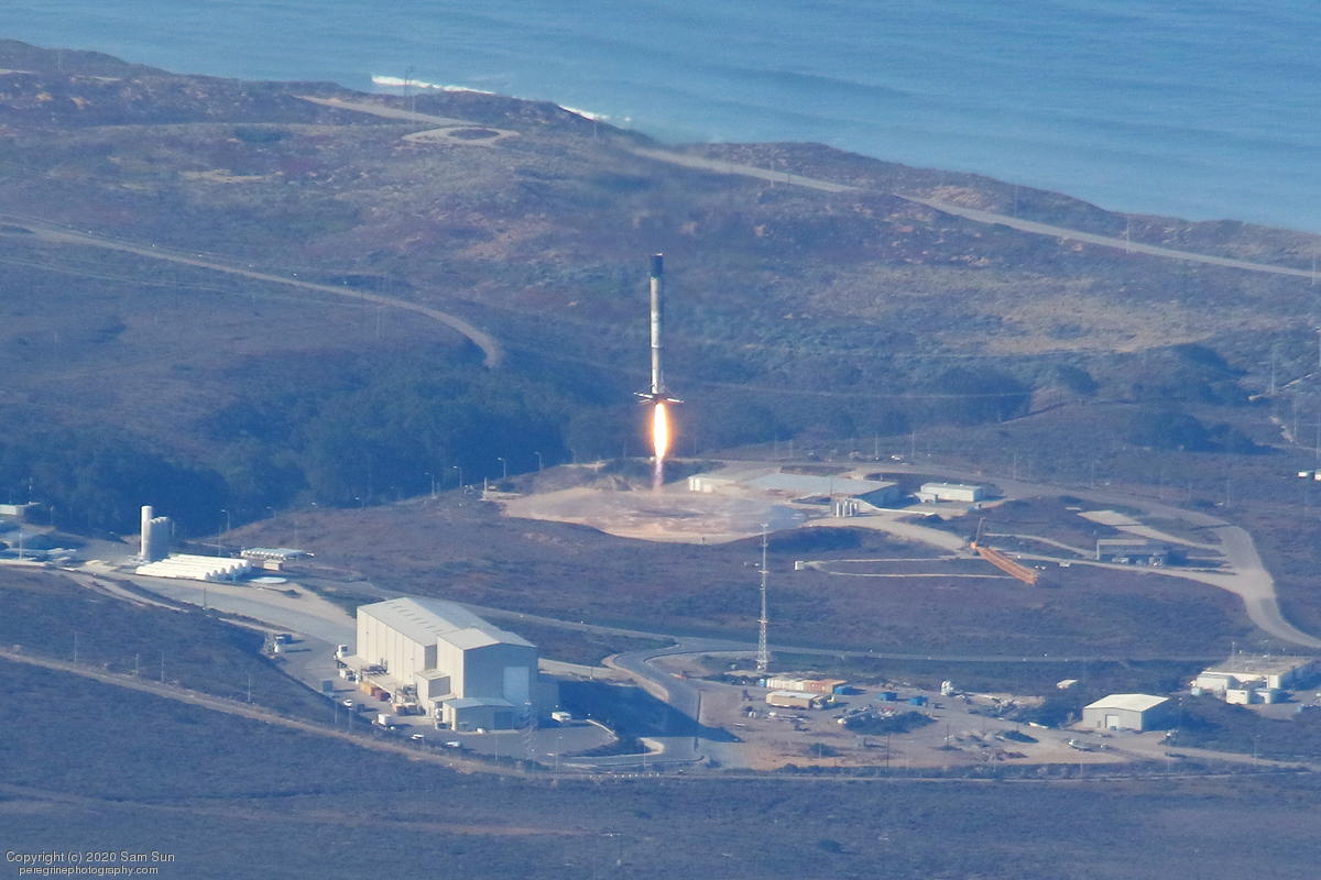 Falcon 9 launch carrying an EU Copernicus earth observation satellite that will be monitoring sea levels. View from an altitude of 8500'.