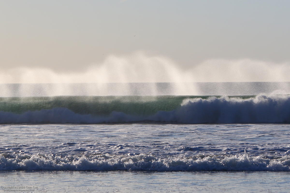 I saw the female briefly before she wandered off. It was quite windy which carried the spray from the breakers.