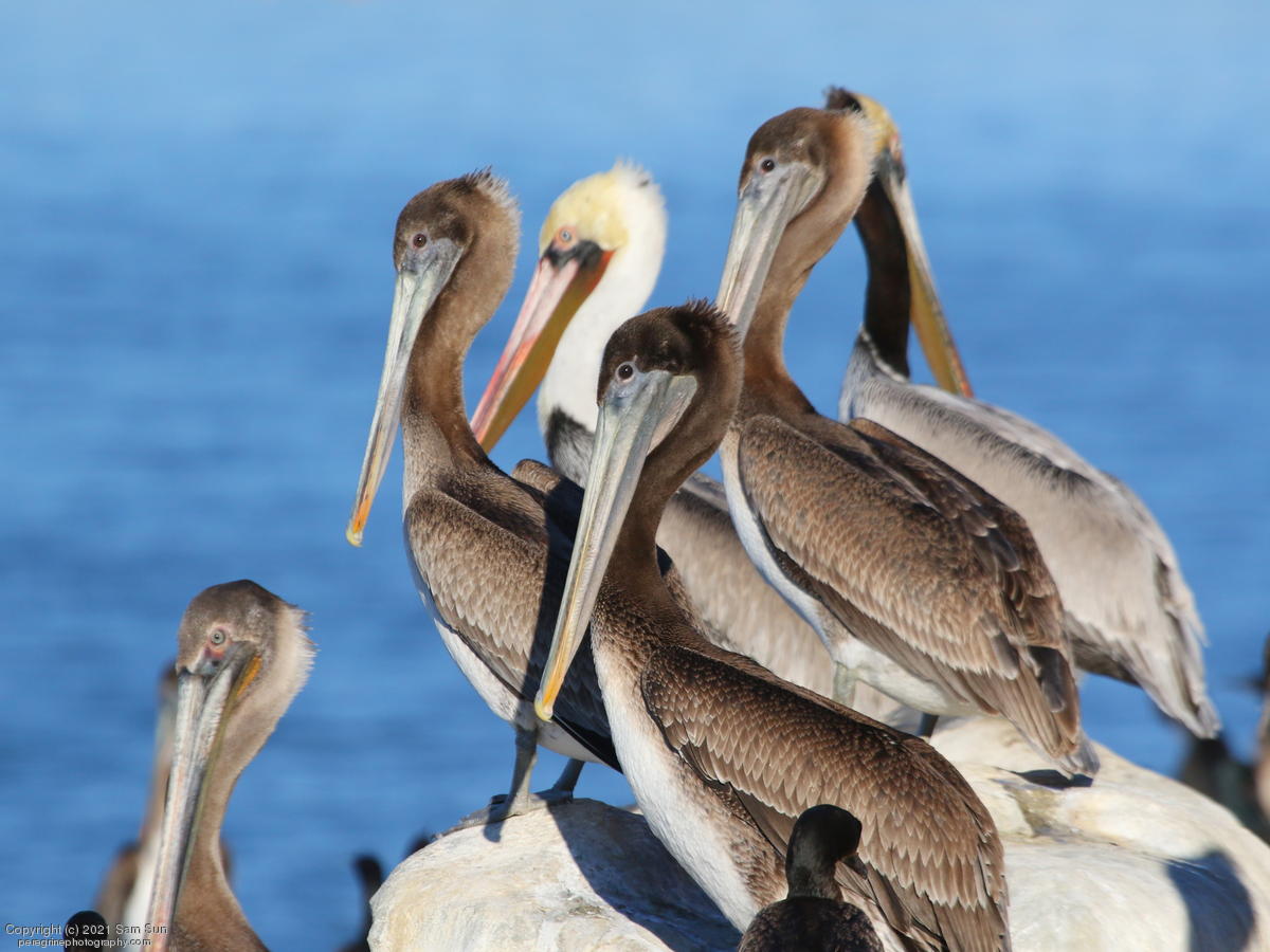 I didn't see the peregrines today, but instead walked among the cormorants, pelicans, and sea lions.