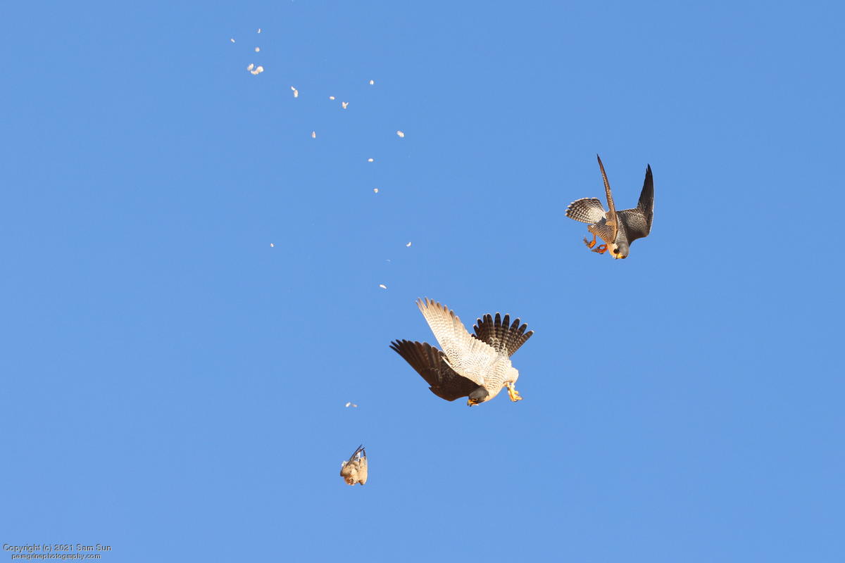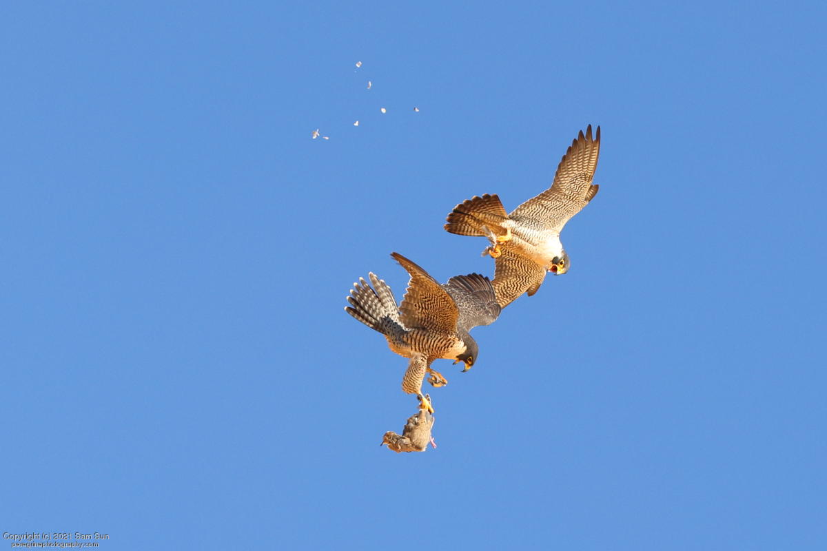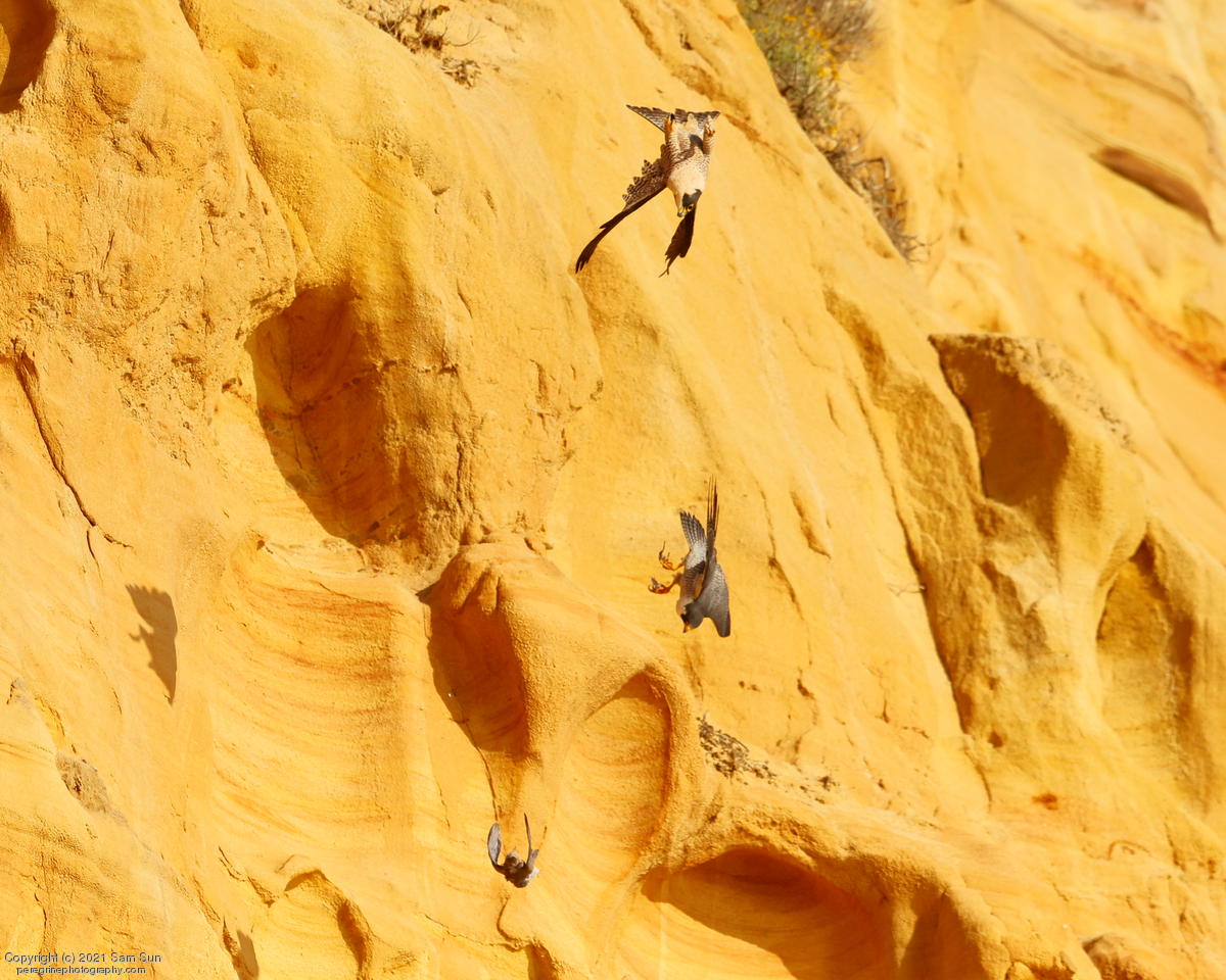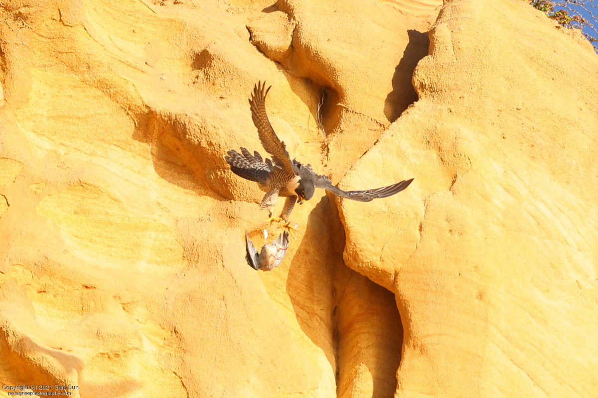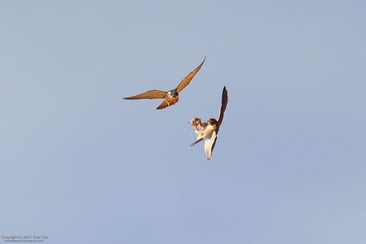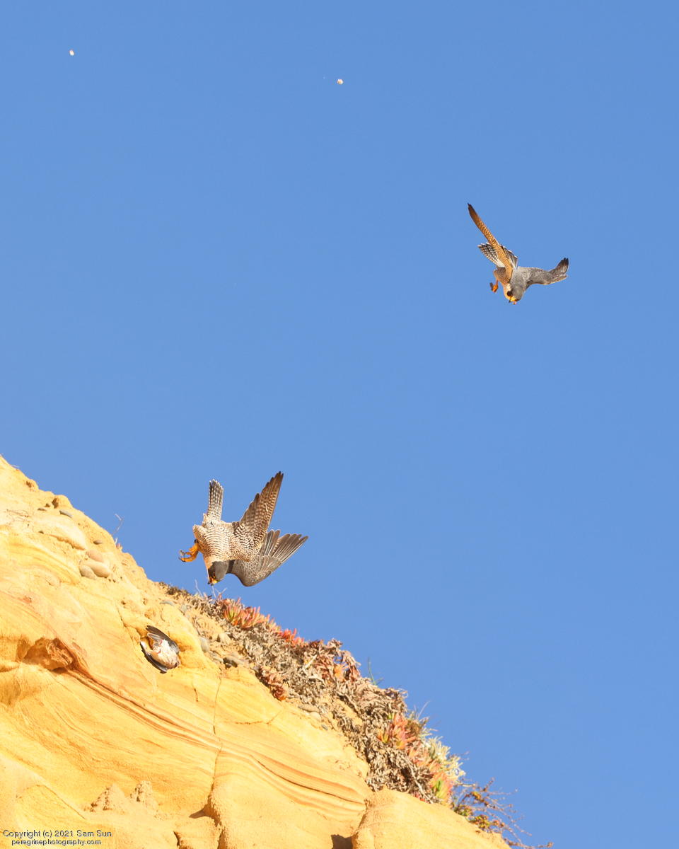 Food exchange sequence. Mom drops the first attempt, and misses grabbing it as it bounces off a cliff ledge. Dad retrieved it (out of the frame, unfortunately) and they did another transfer. Total time elapsed in this sequence - 7 seconds!
