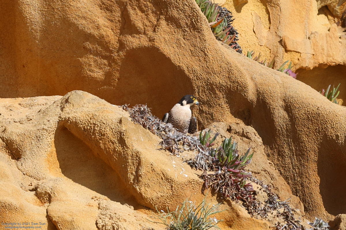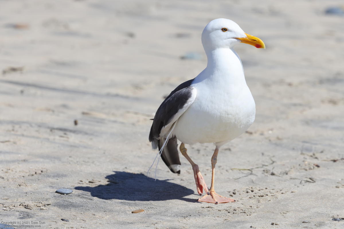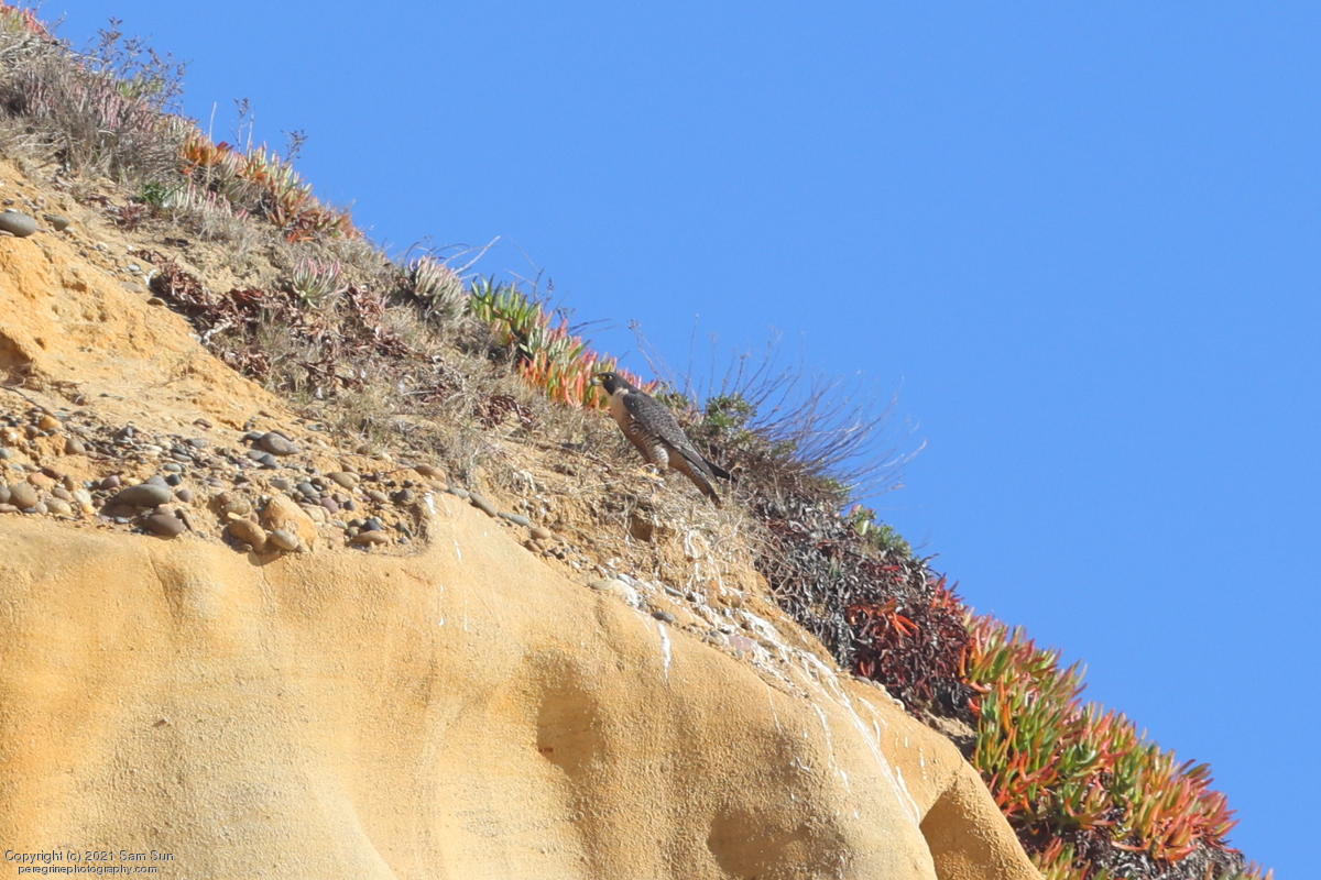 The chick posed for the cameras today separately with Dad and then Mom. There were a couple pelican chases, but the winds were pretty calm and not many came by. Dad brought in food for an exchange at 6:04p. Mom dropped it, and they both dove to recover it. I missed the recovery, but Dad apparently got it off the beach and they did another transfer within seconds.