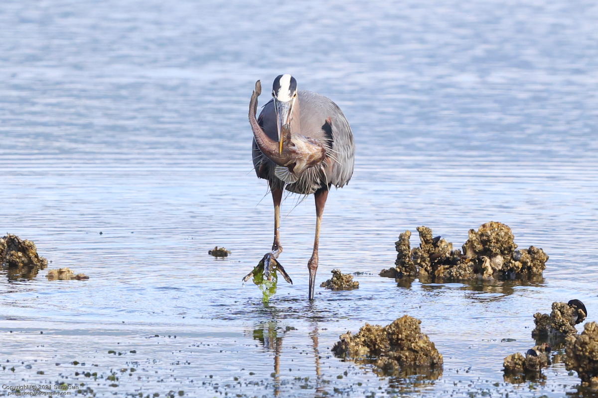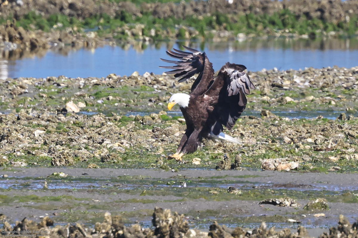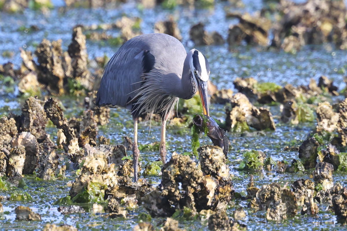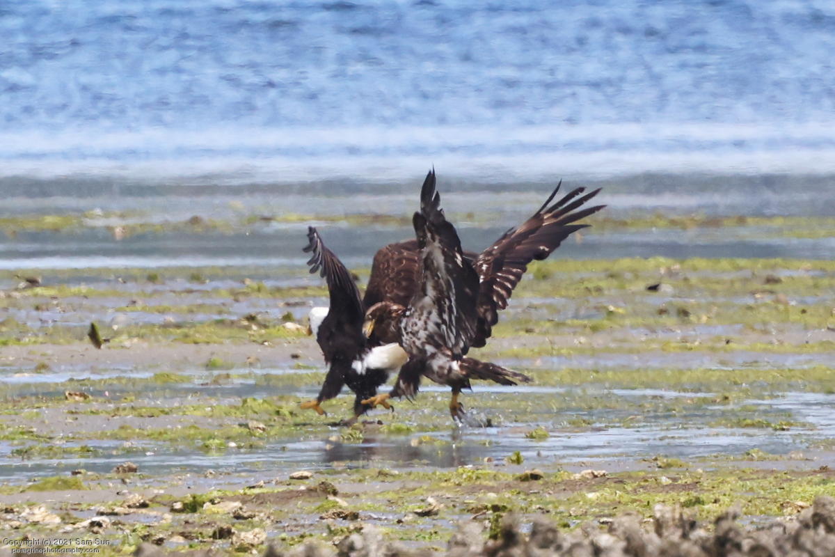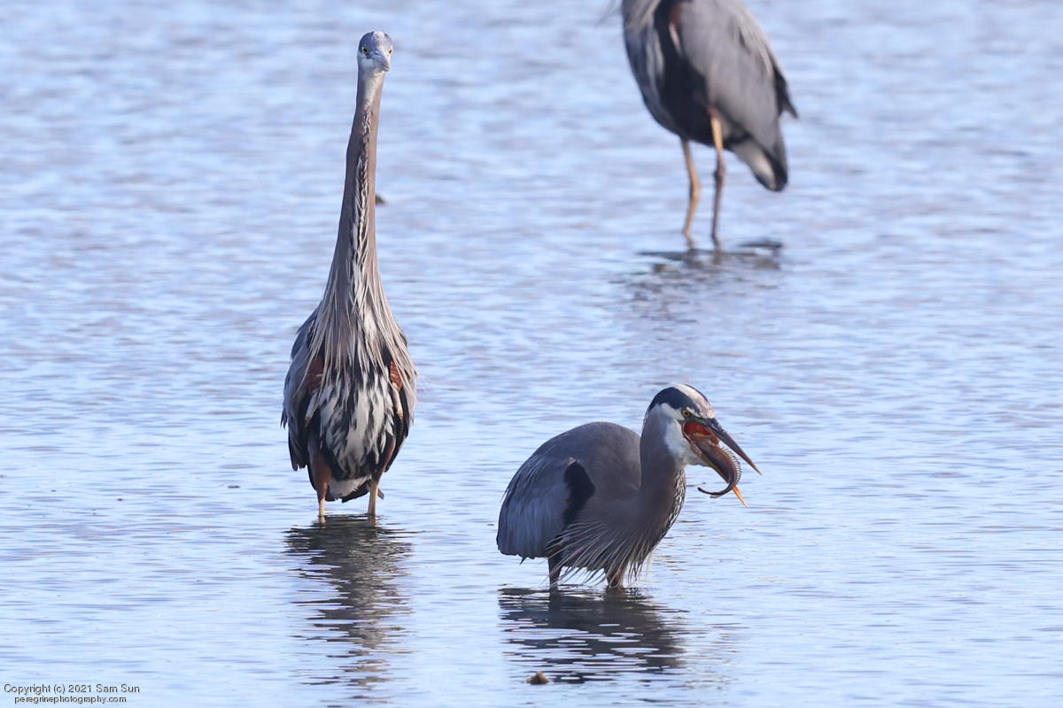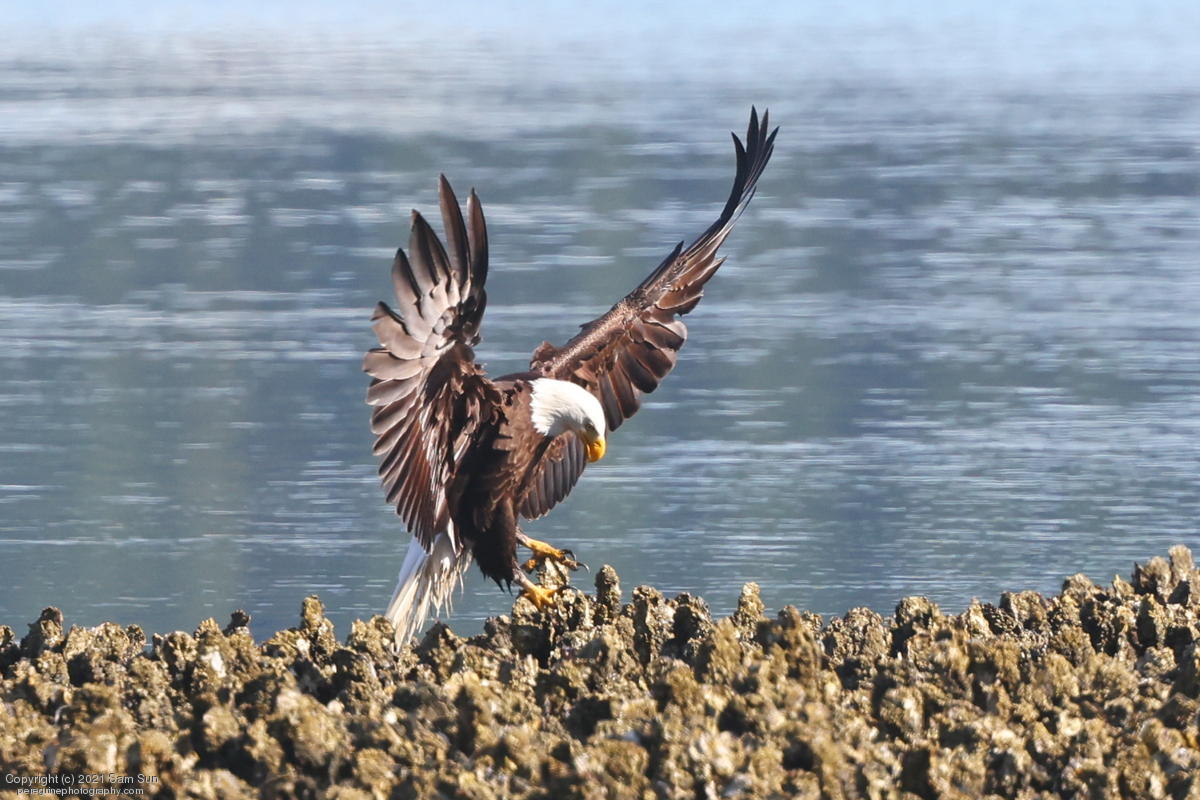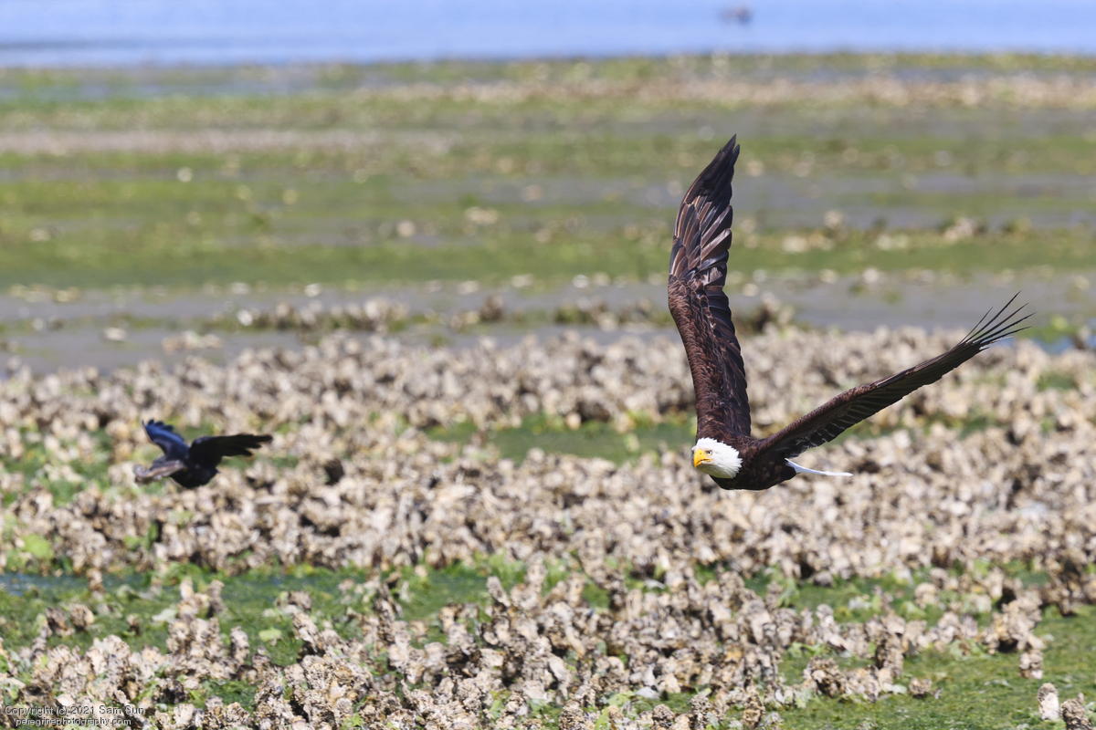 Midshipman fish bring the birds and photographers to Seabeck. The fish spawn among the oyster beds and are easy prey at low tide. The herons show up first as the tide goes out, then the eagles.