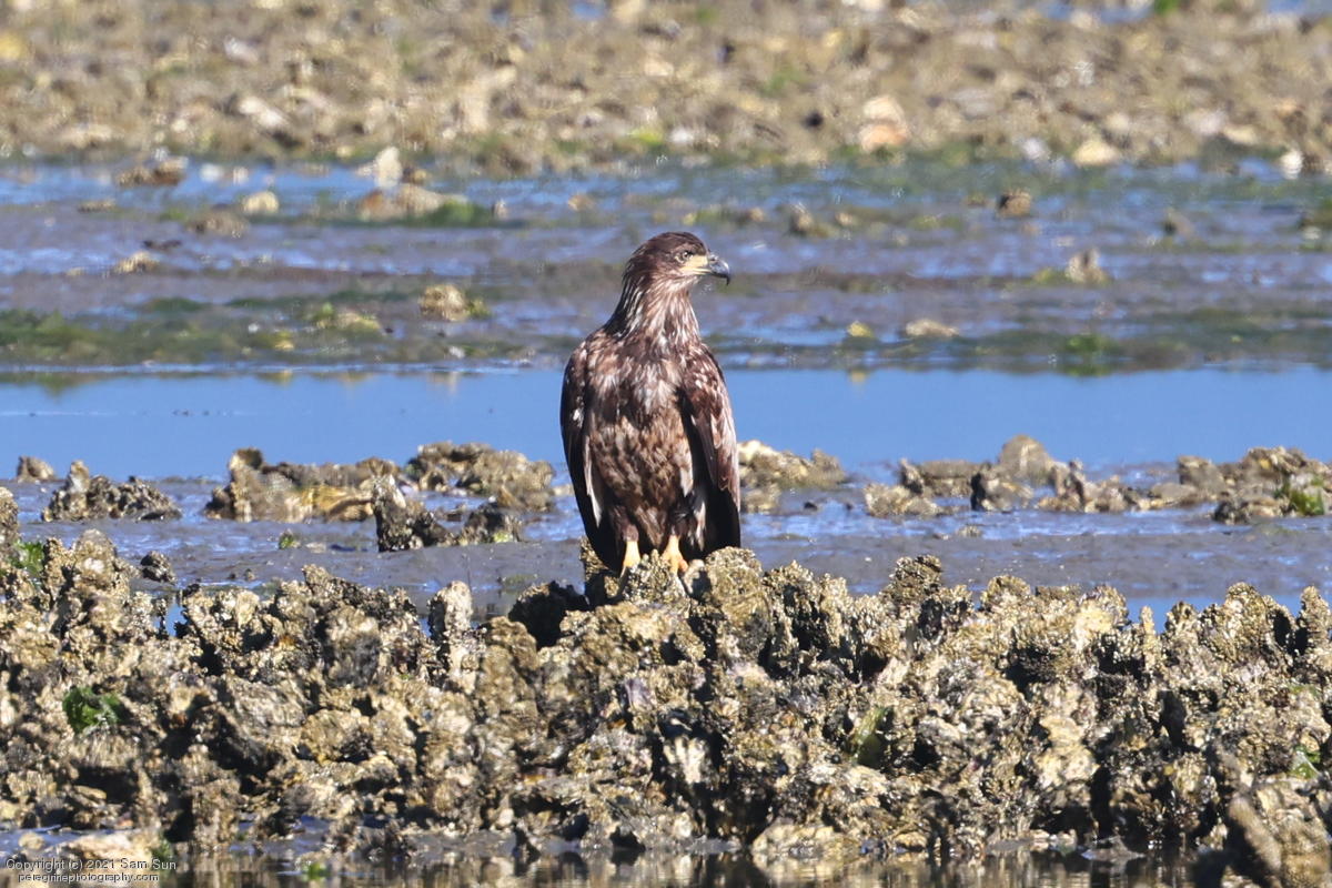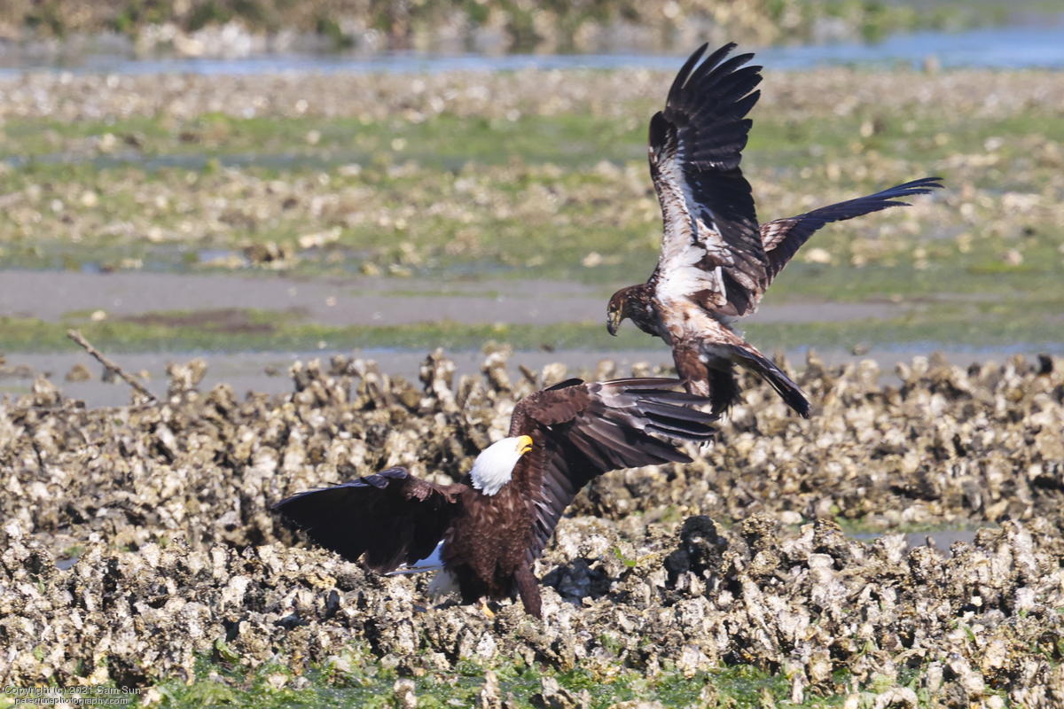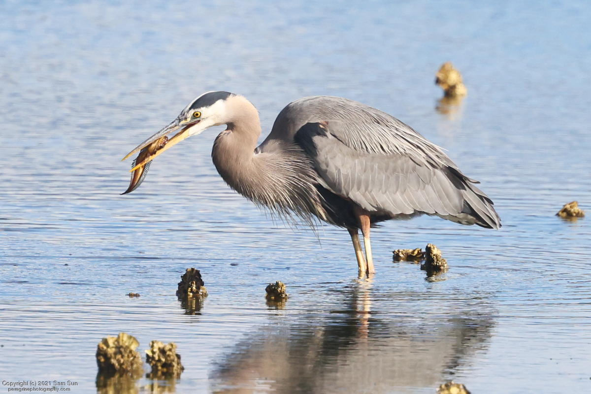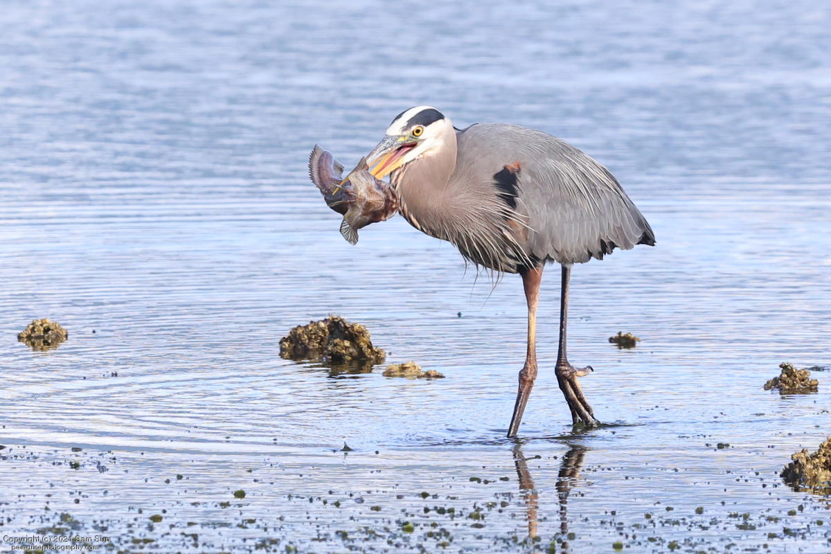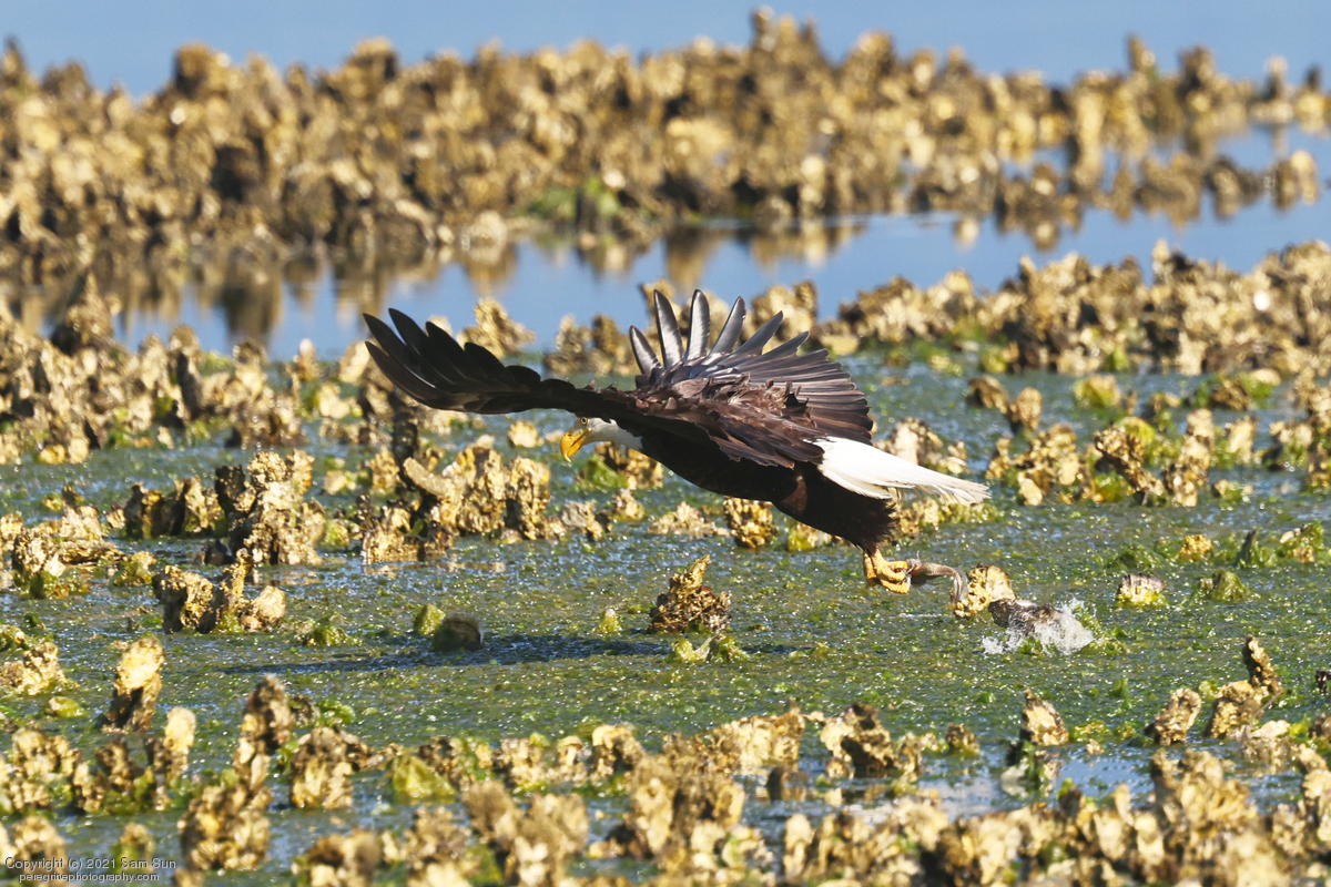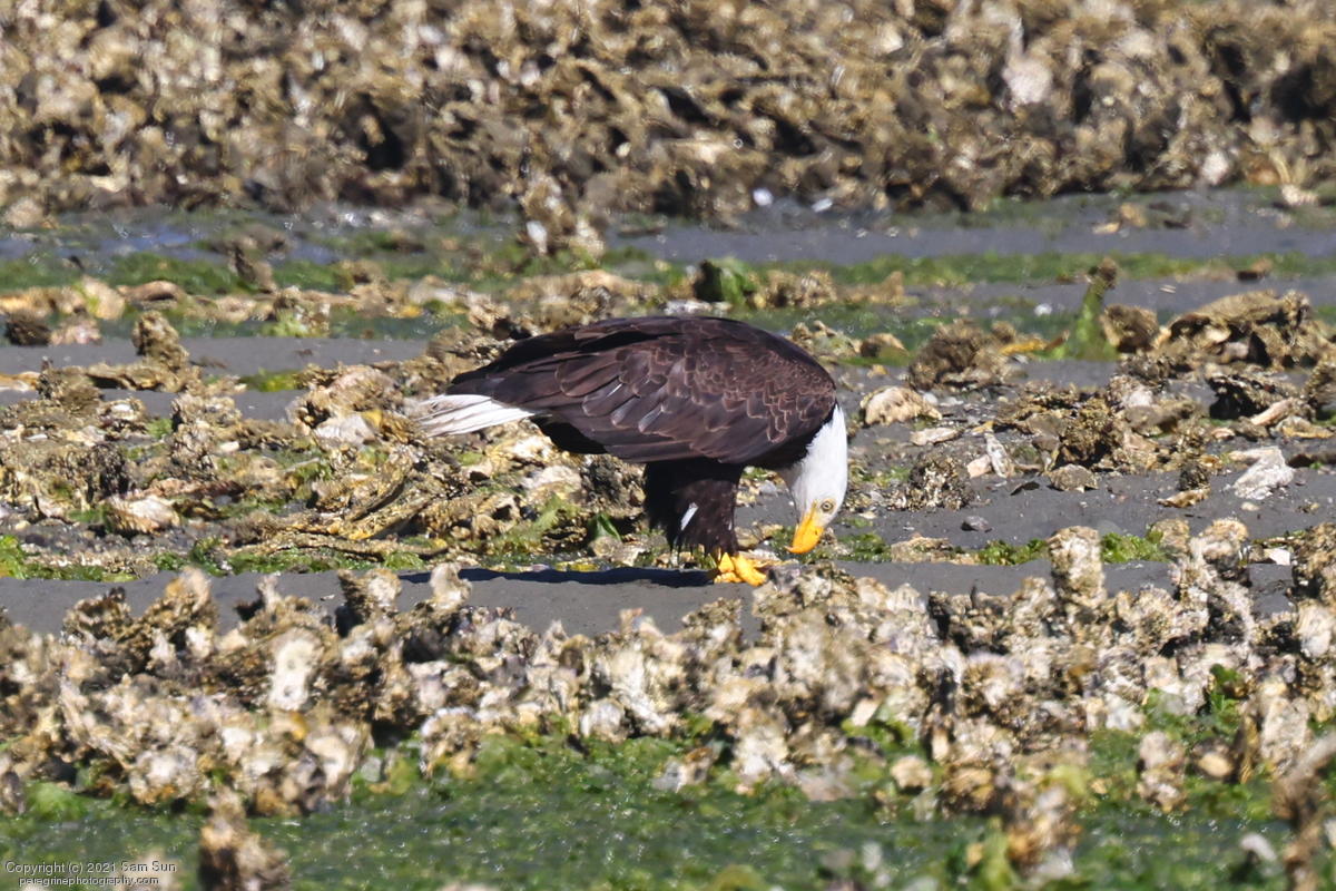 Midshipman fish bring the birds and photographers to Seabeck. The fish spawn among the oyster beds and are easy prey at low tide. The herons show up first as the tide goes out, then the eagles.