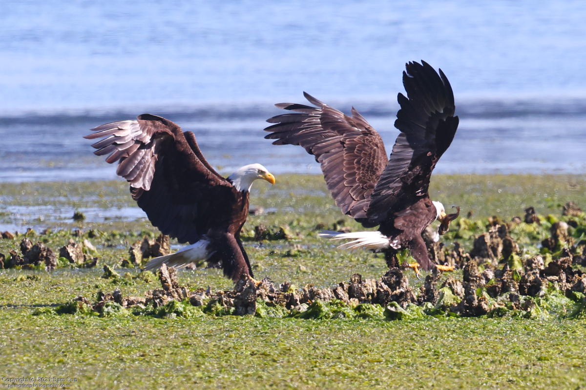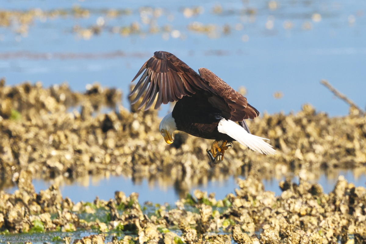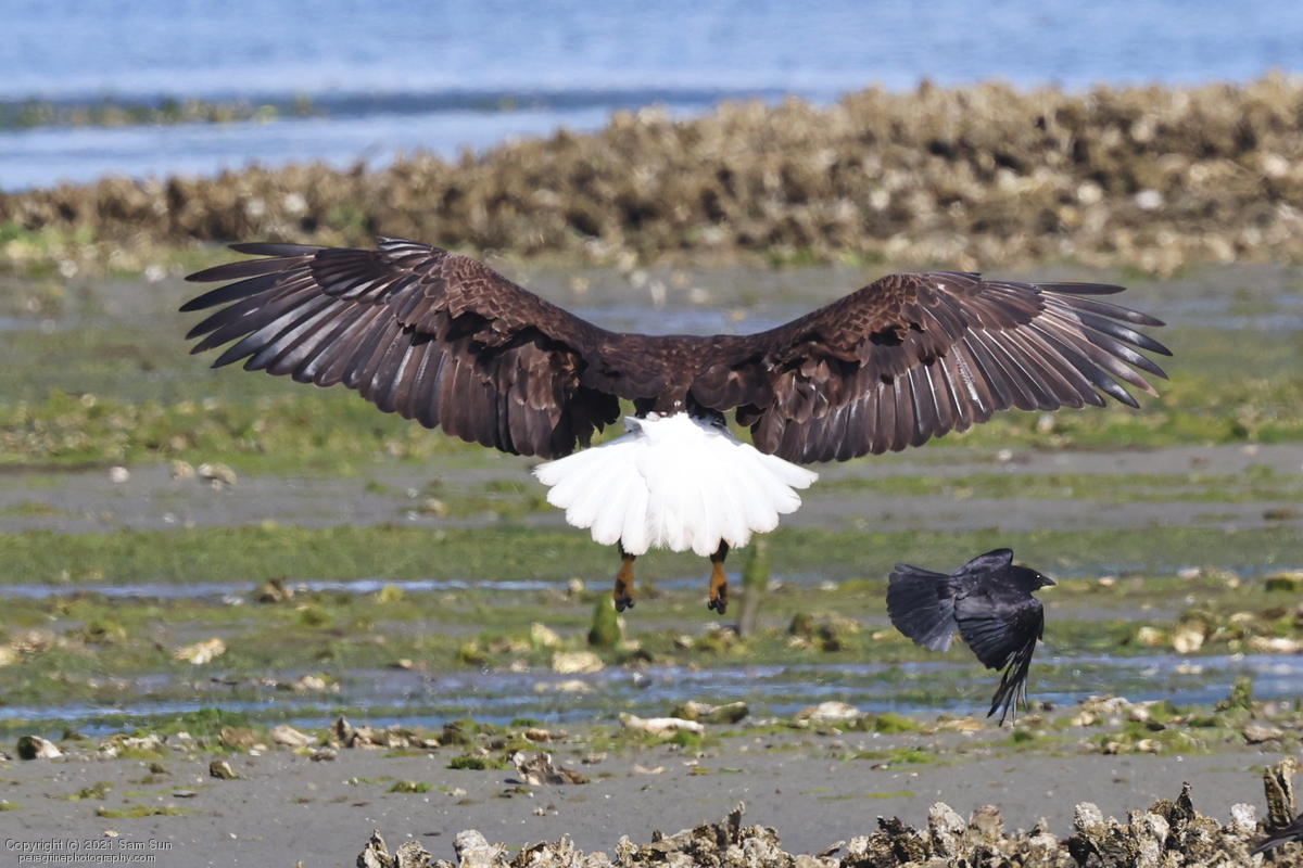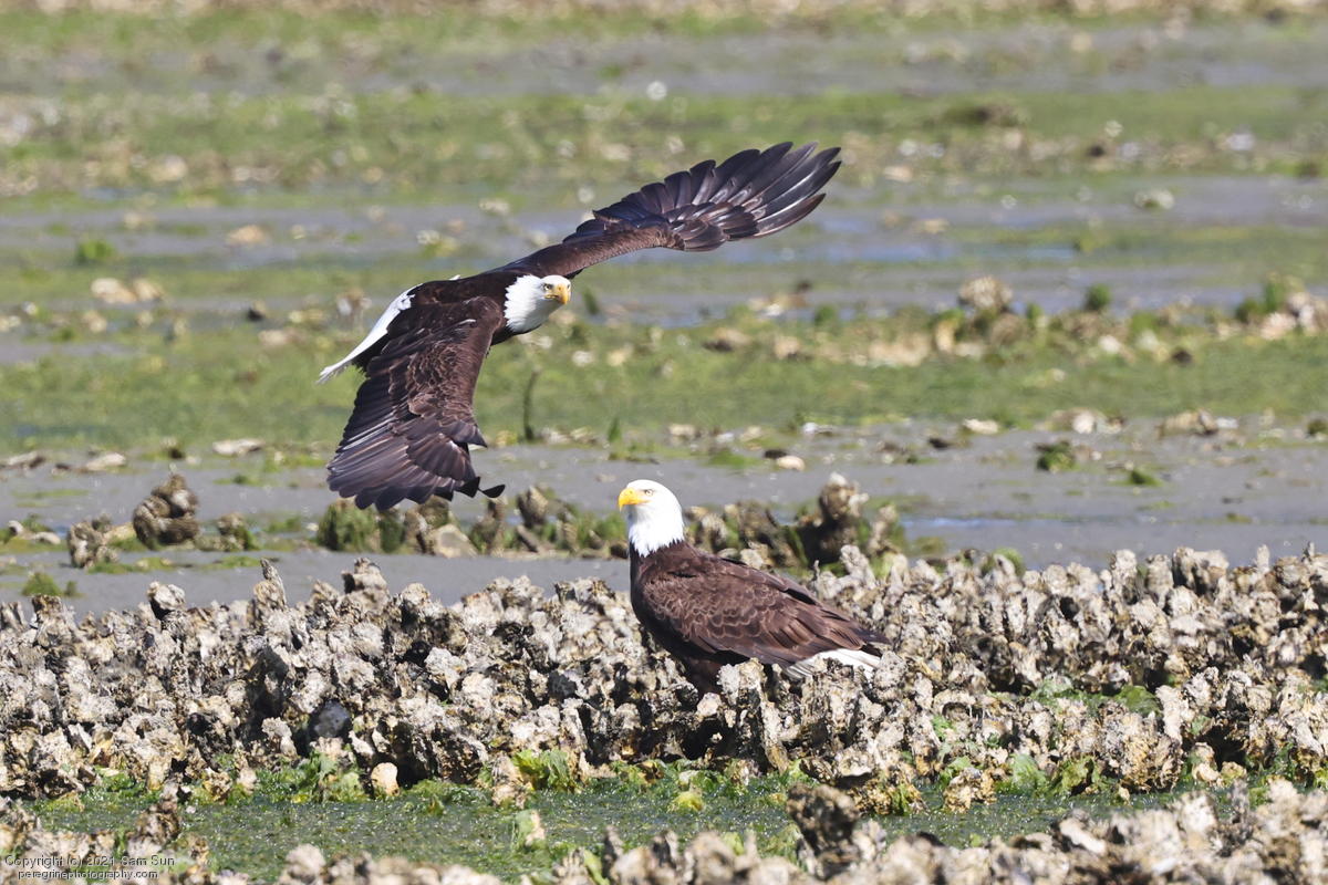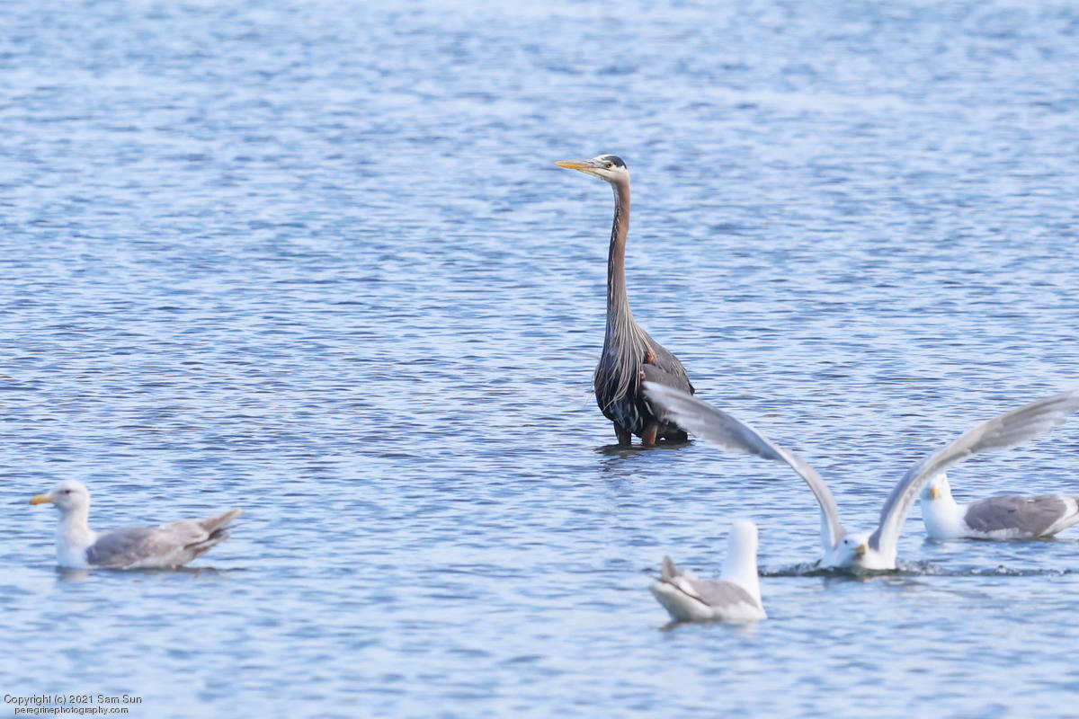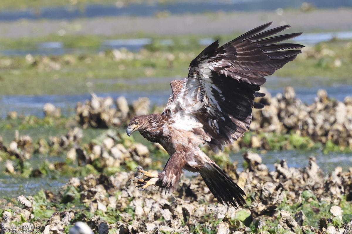 Midshipman fish bring the birds and photographers to Seabeck. The fish spawn among the oyster beds and are easy prey at low tide. The herons show up first as the tide goes out, then the eagles.