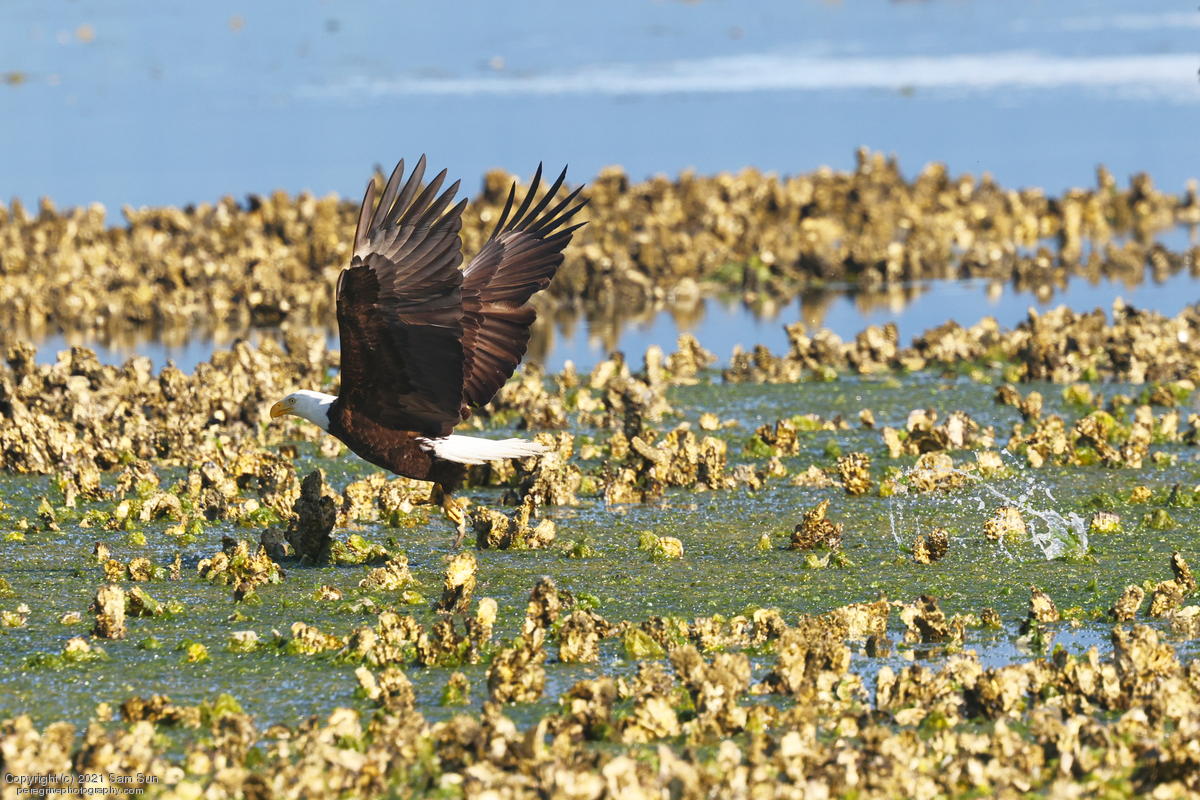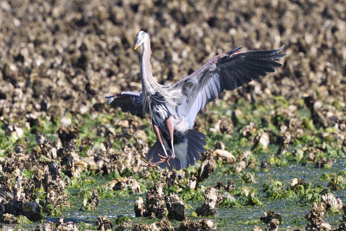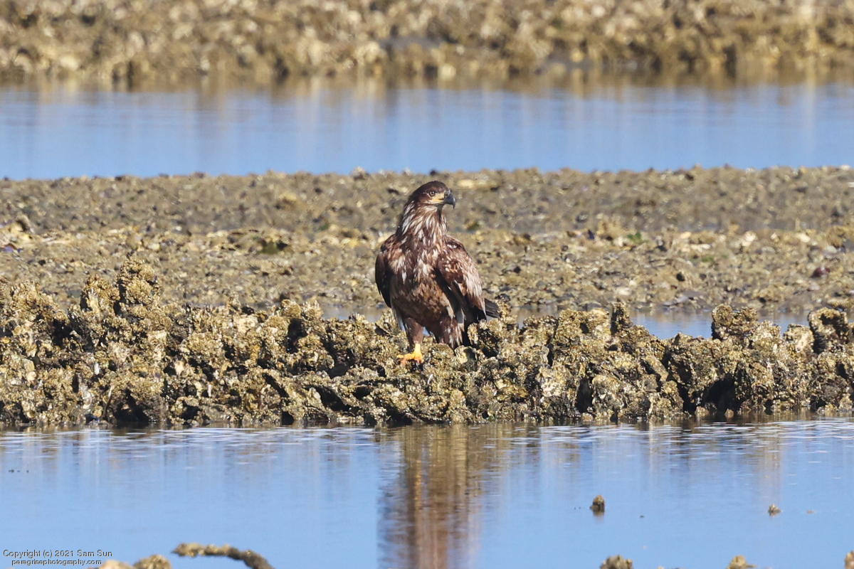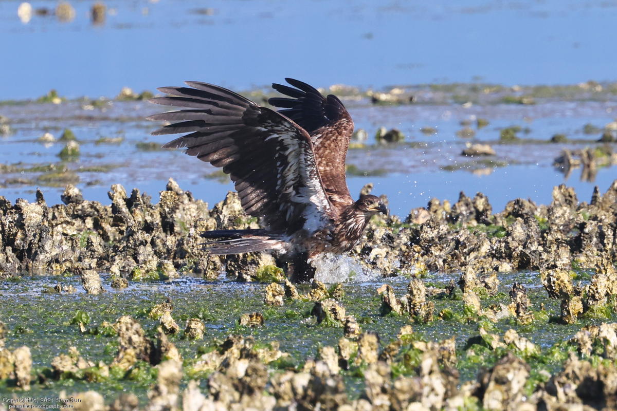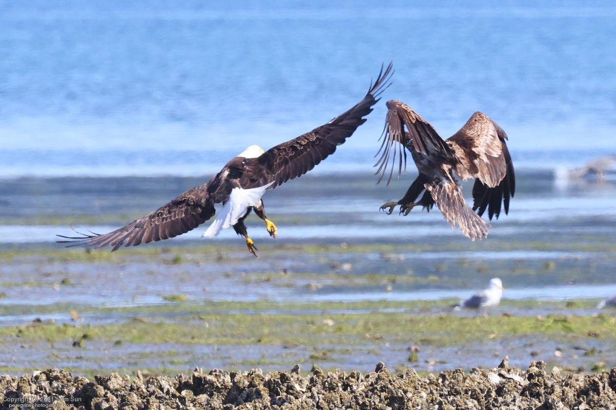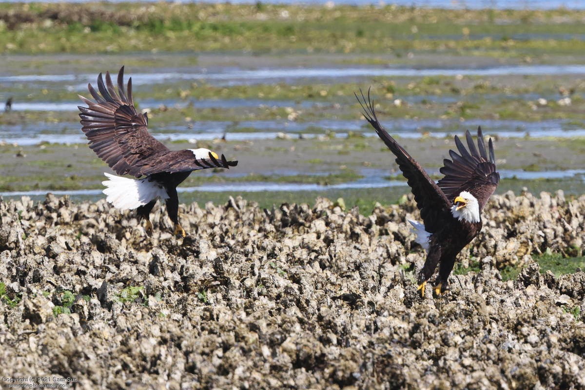 Midshipman fish bring the birds and photographers to Seabeck. The fish spawn among the oyster beds and are easy prey at low tide. The herons show up first as the tide goes out, then the eagles.