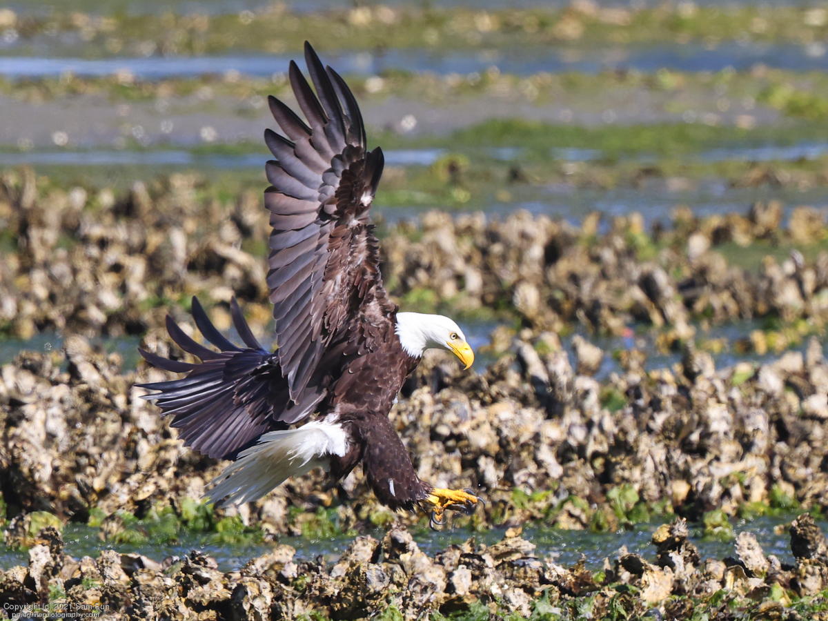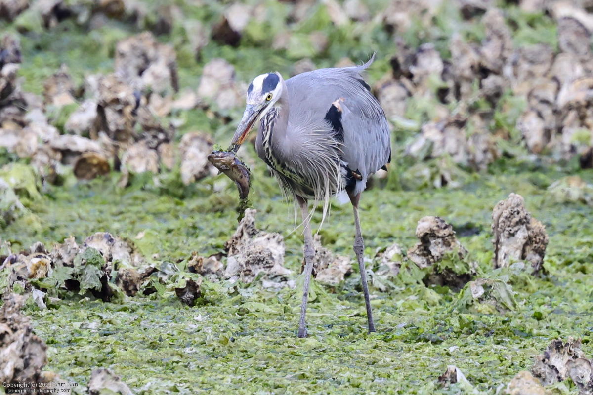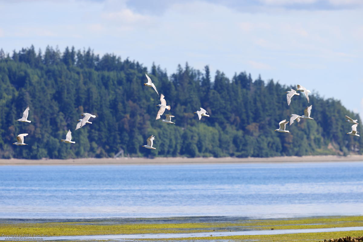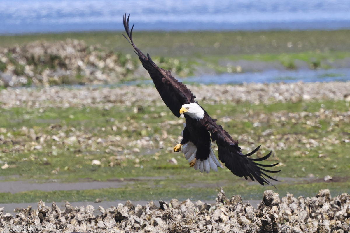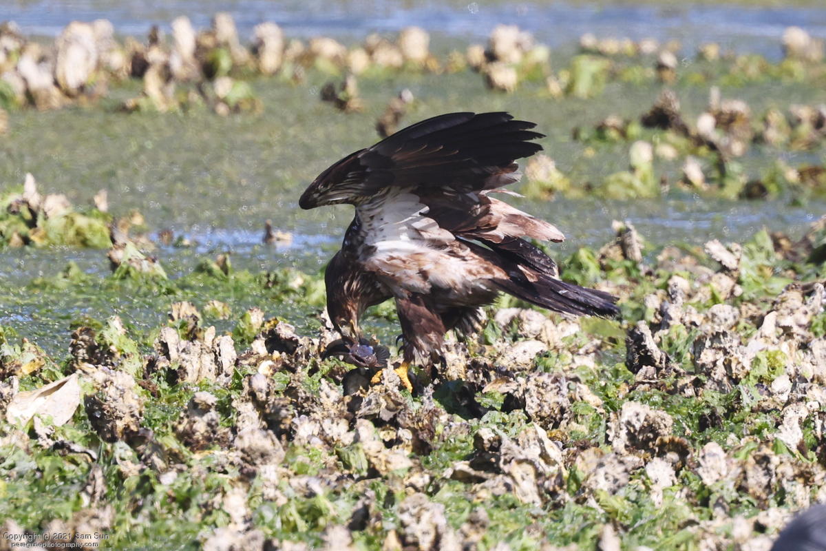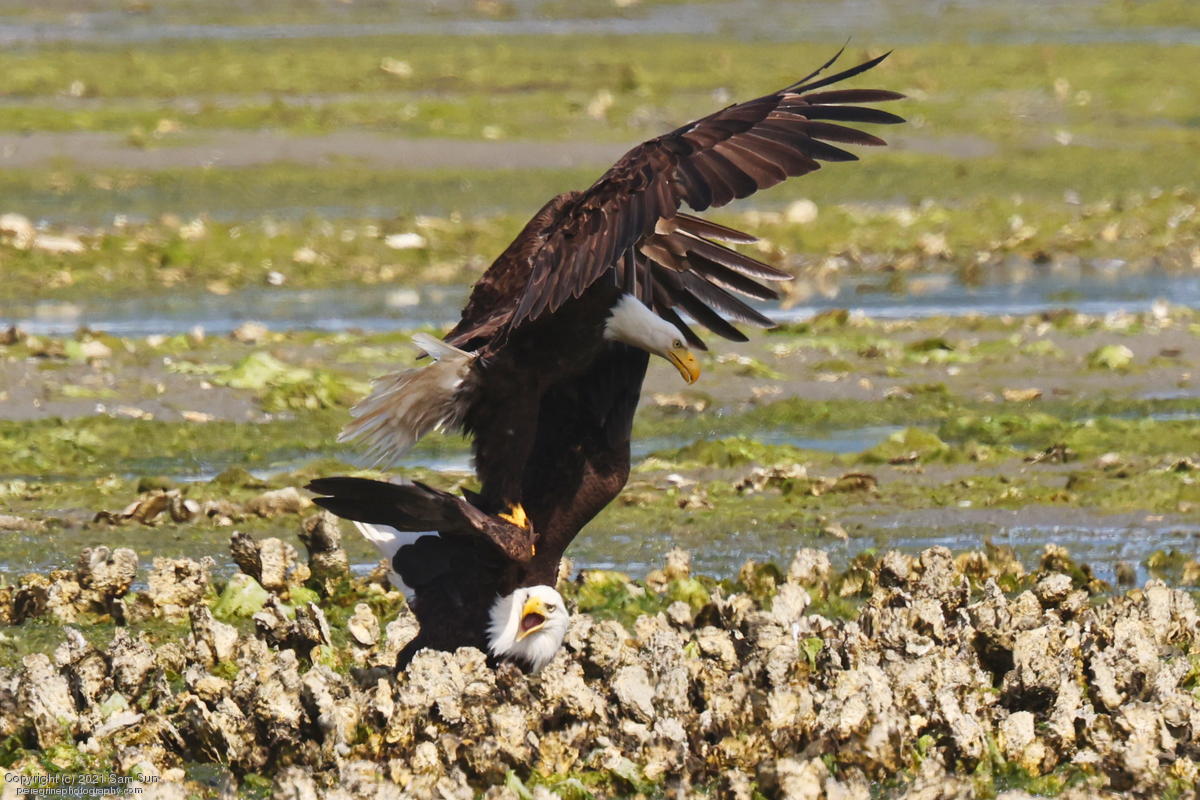 Midshipman fish bring the birds and photographers to Seabeck. The fish spawn among the oyster beds and are easy prey at low tide. The herons show up first as the tide goes out, then the eagles.