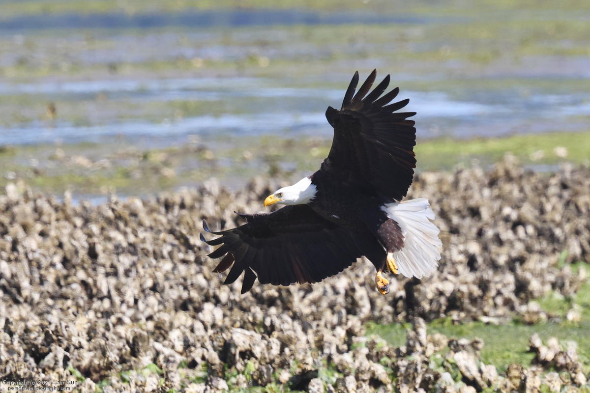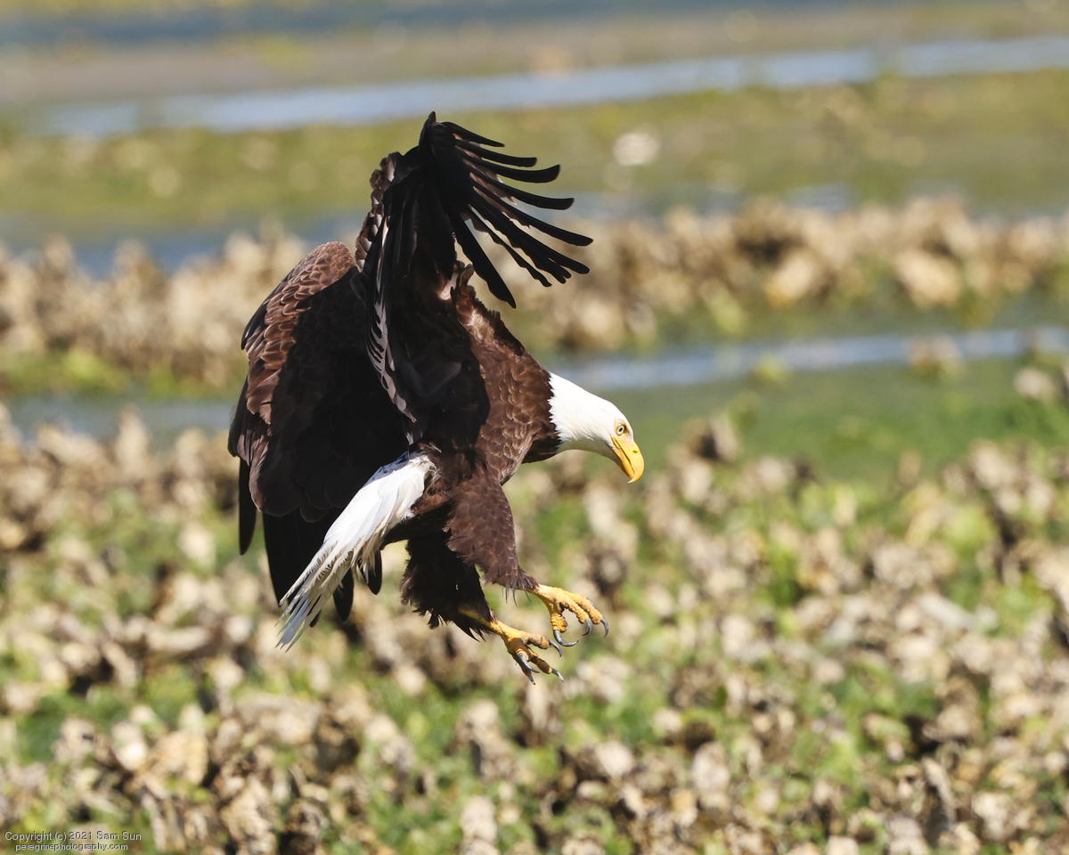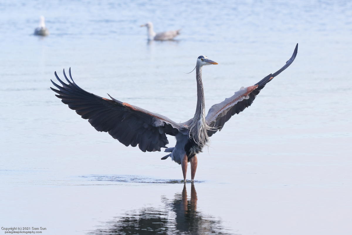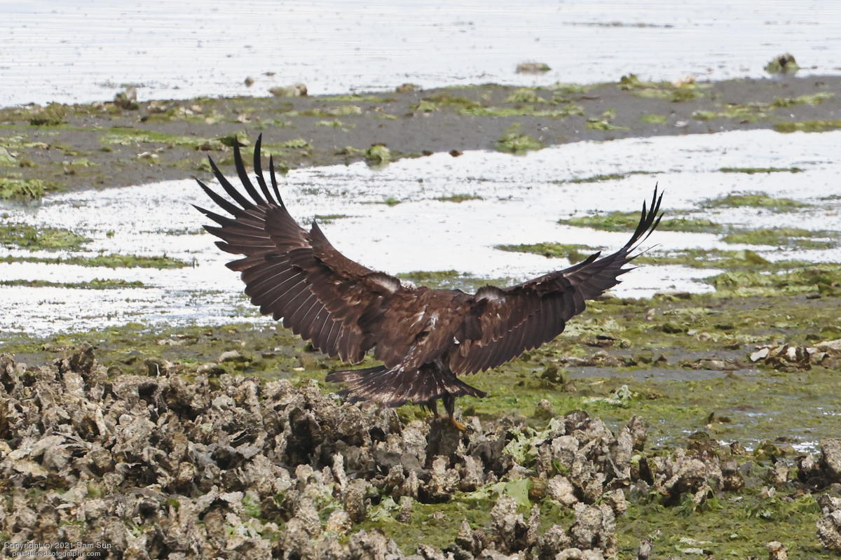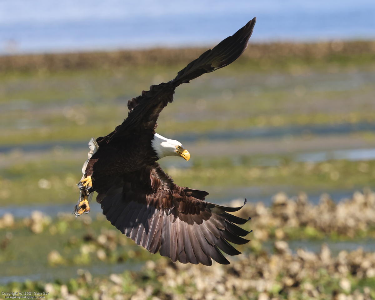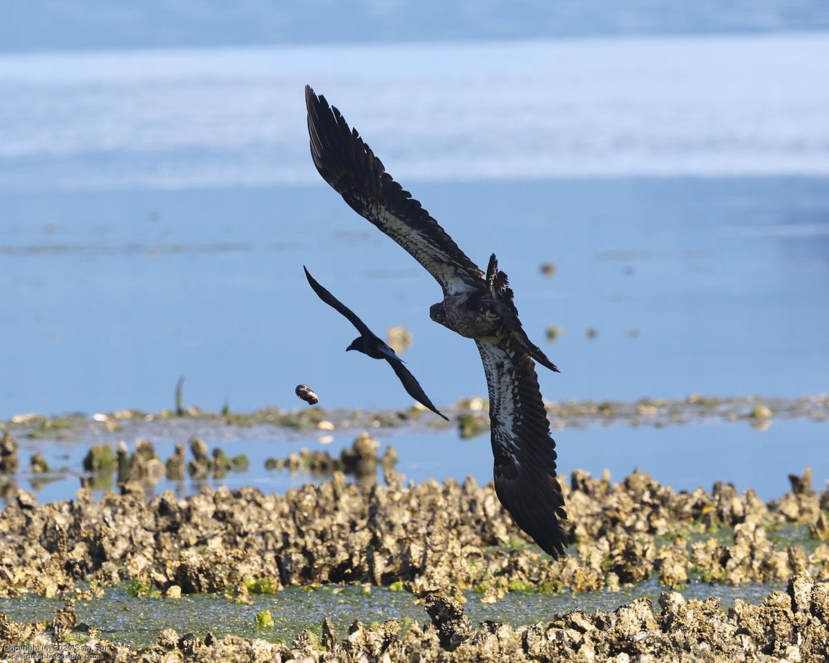 Midshipman fish bring the birds and photographers to Seabeck. The fish spawn among the oyster beds and are easy prey at low tide. The herons show up first as the tide goes out, then the eagles.