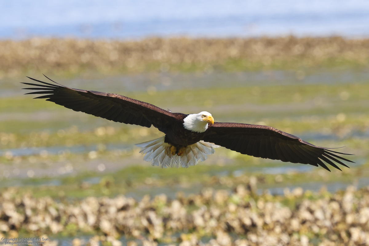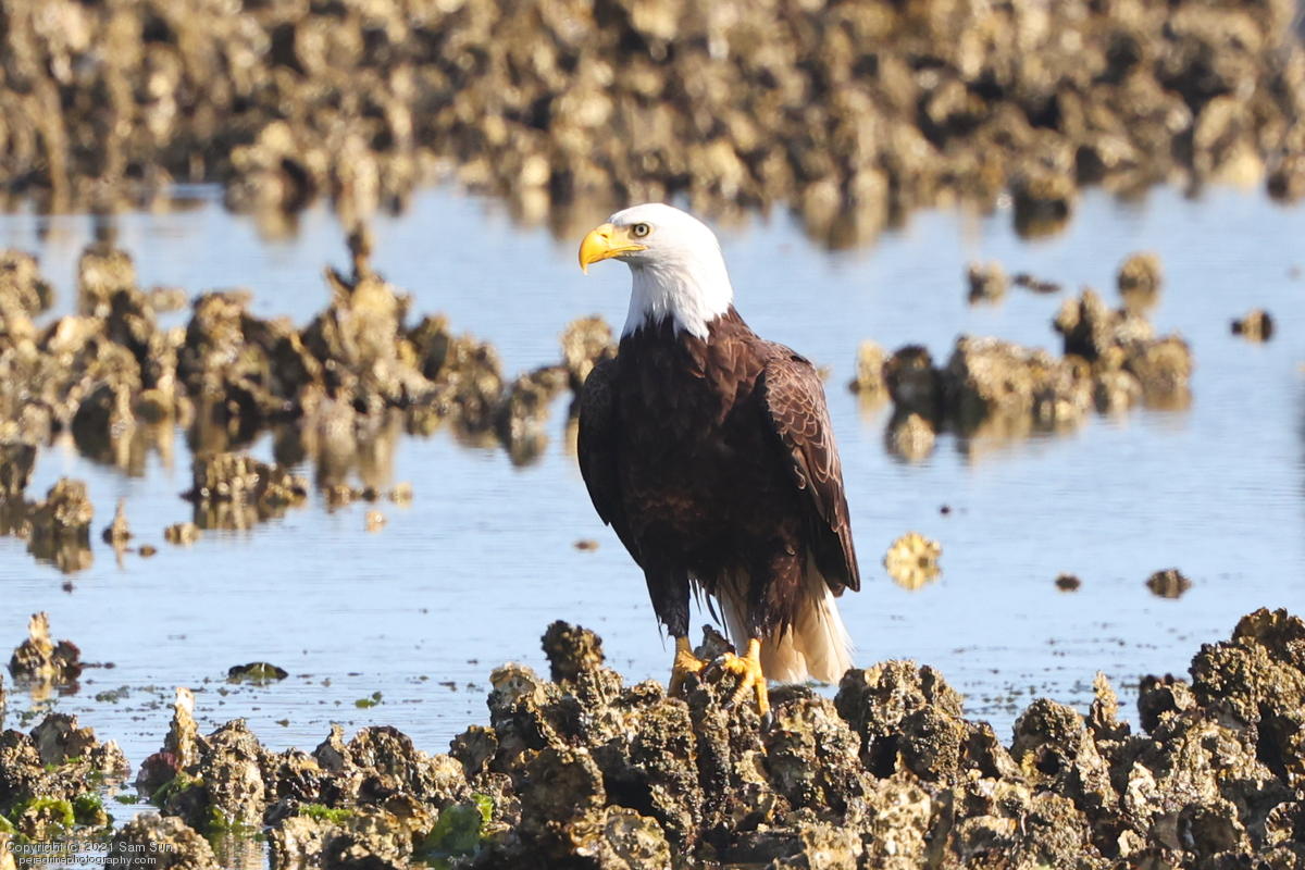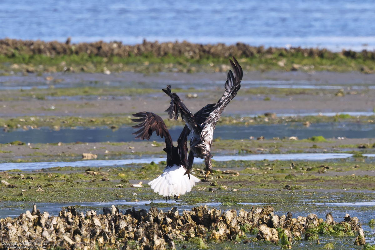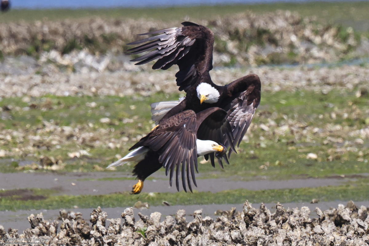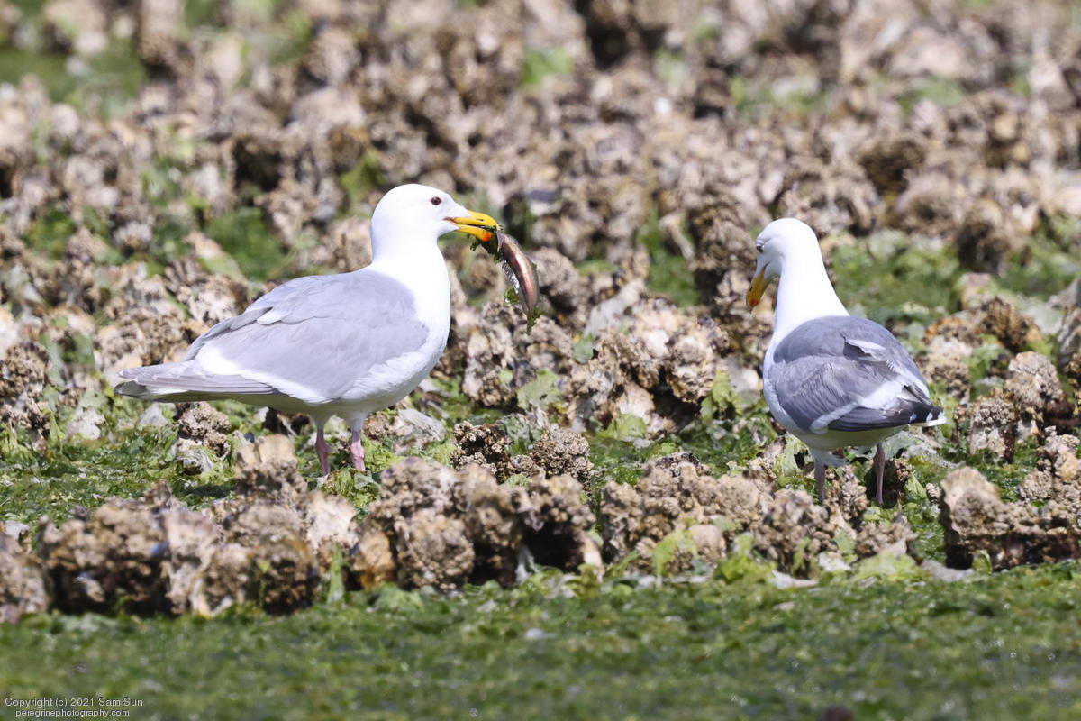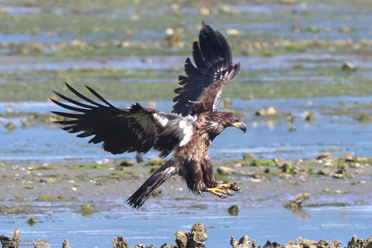 Midshipman fish bring the birds and photographers to Seabeck. The fish spawn among the oyster beds and are easy prey at low tide. The herons show up first as the tide goes out, then the eagles.