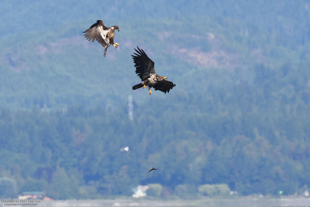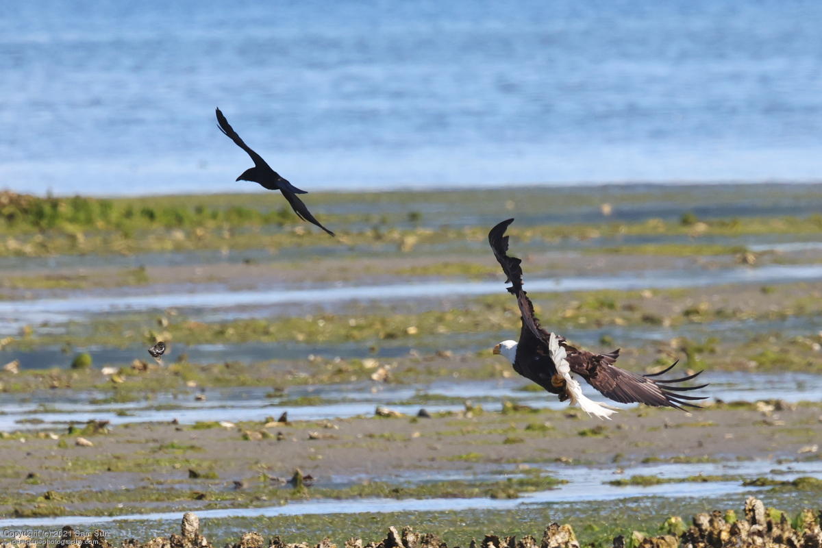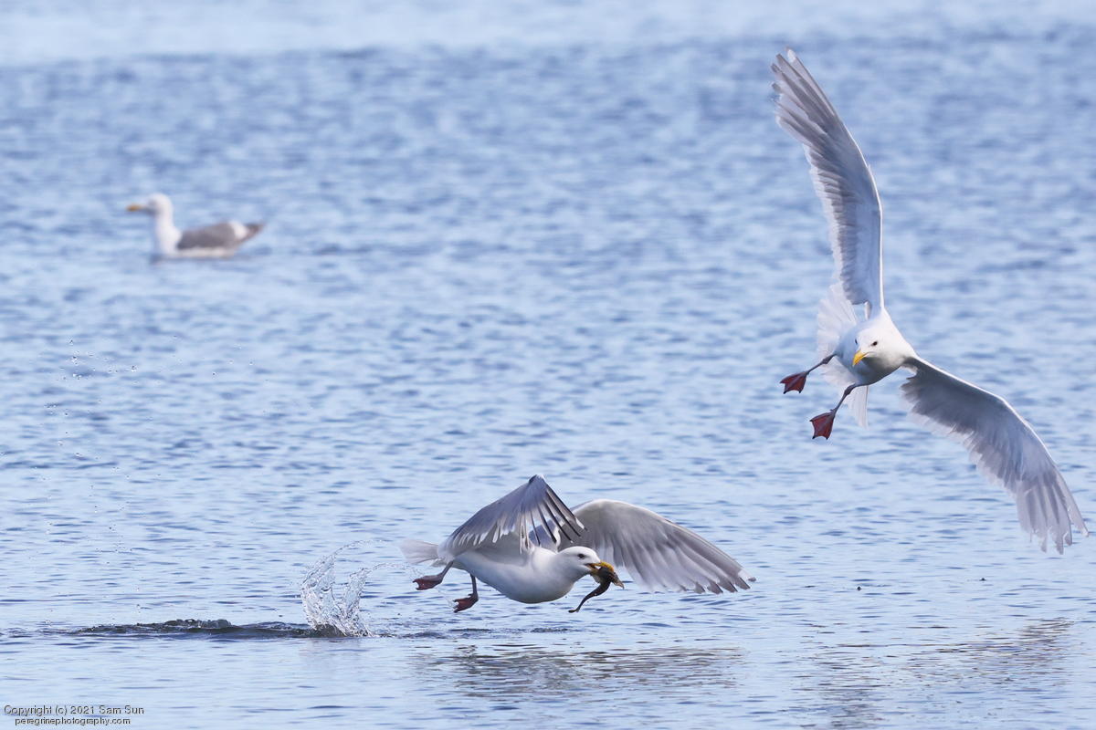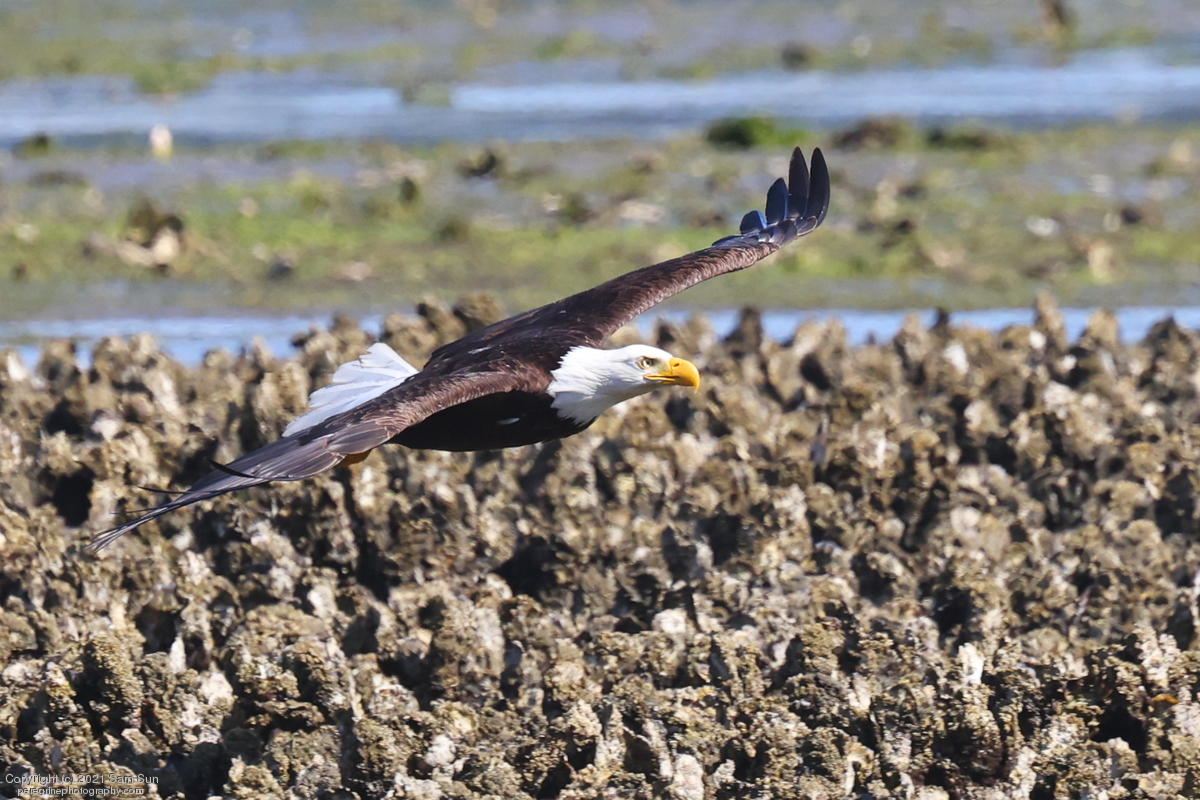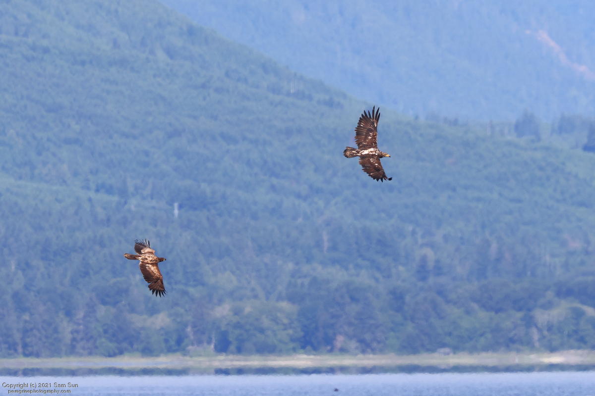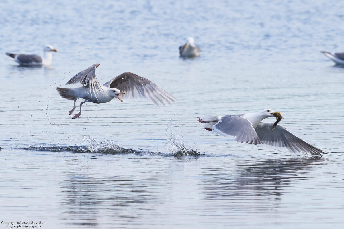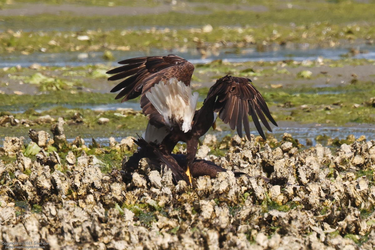 Midshipman fish bring the birds and photographers to Seabeck. The fish spawn among the oyster beds and are easy prey at low tide. The herons show up first as the tide goes out, then the eagles.