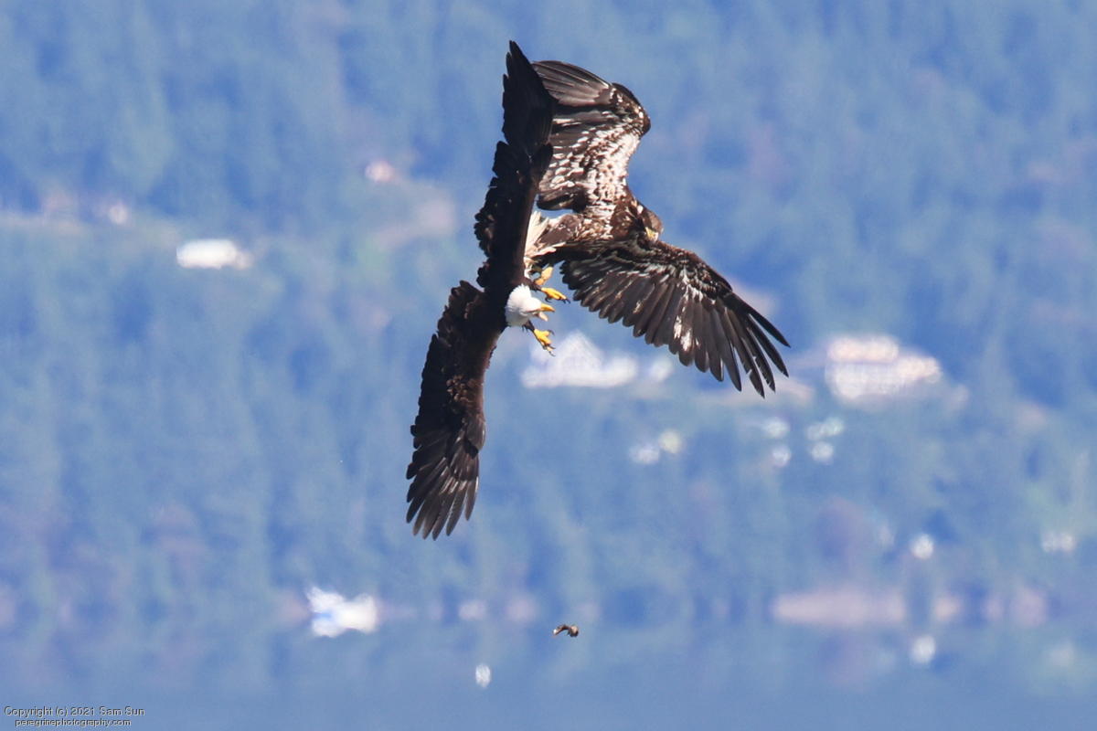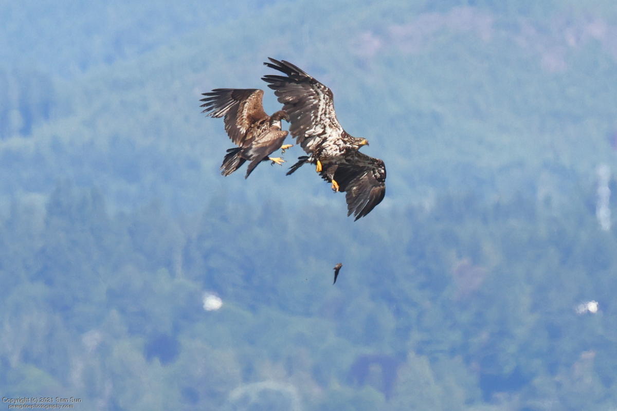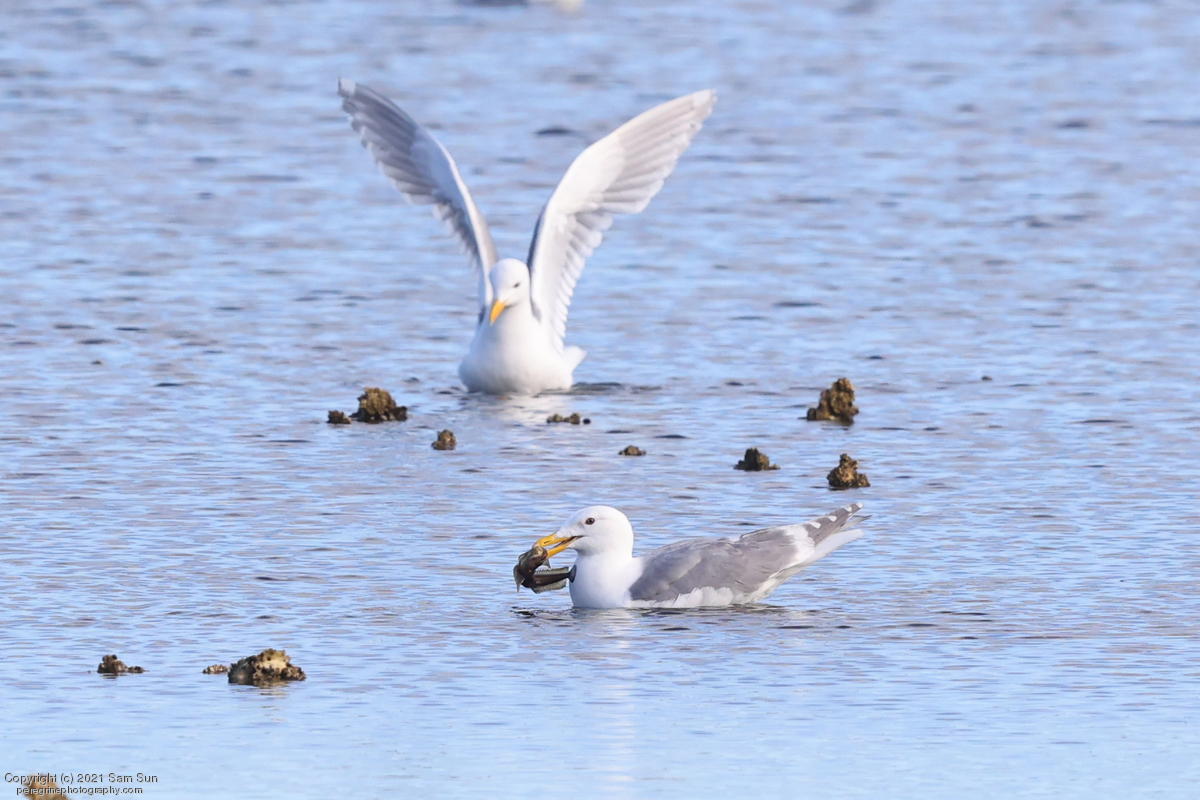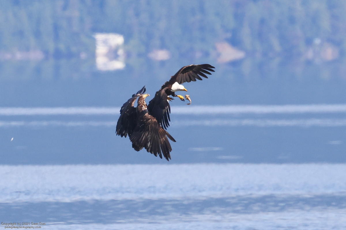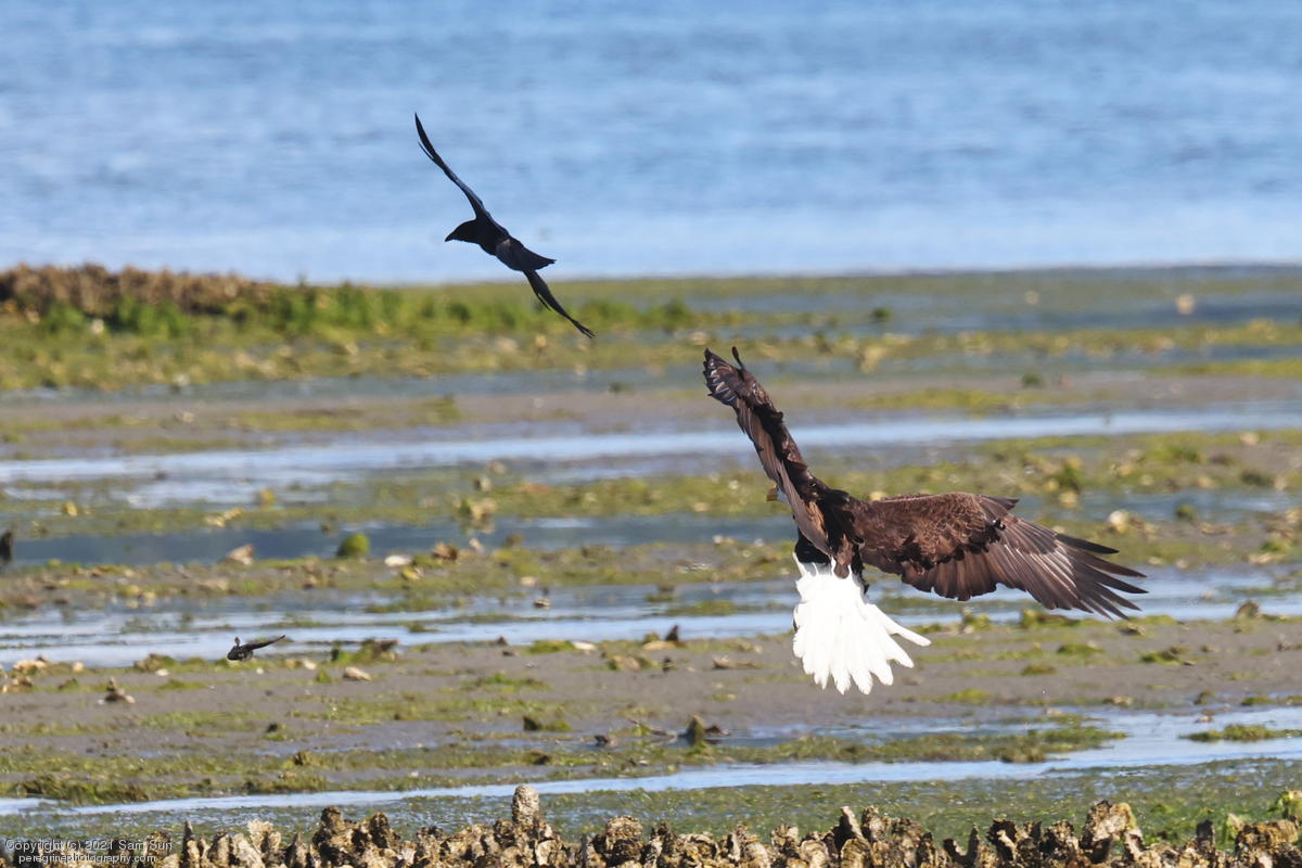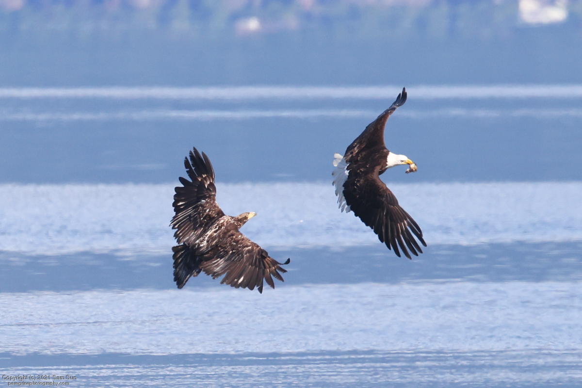 Midshipman fish bring the birds and photographers to Seabeck. The fish spawn among the oyster beds and are easy prey at low tide. The herons show up first as the tide goes out, then the eagles.