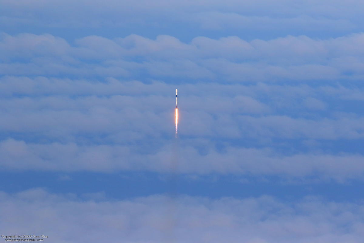 Falcon 9 launch carrying a German radar reconnaissance satellite. View from an altitude of 8500'.