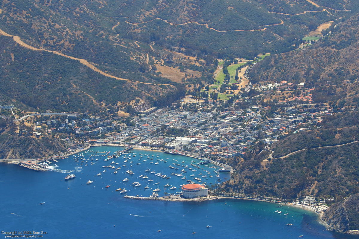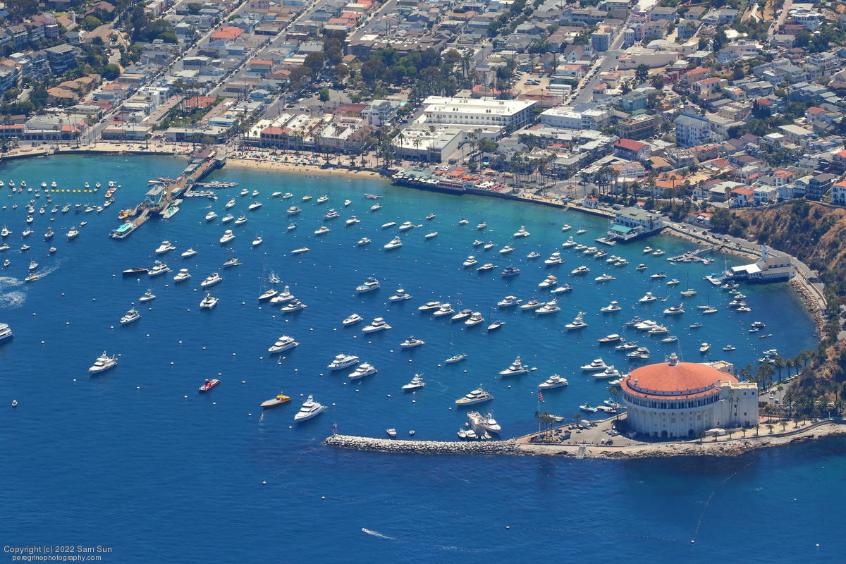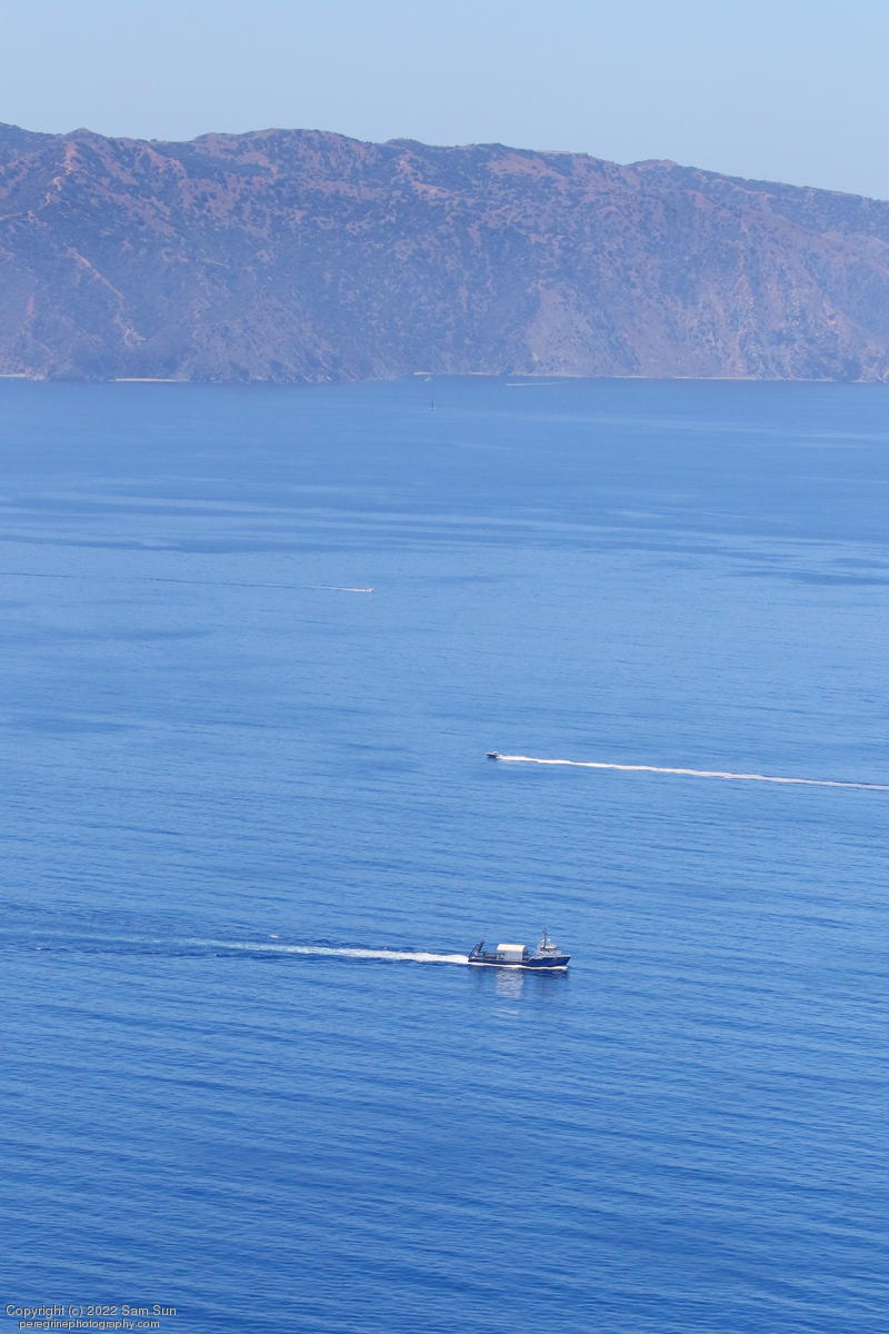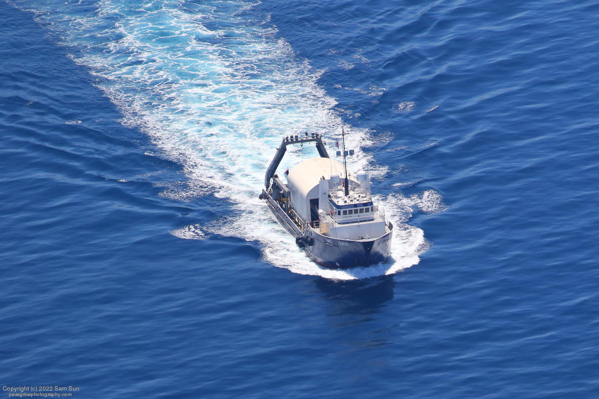 NRC Quest passing Santa Catalina Island with recovered fairing halves.