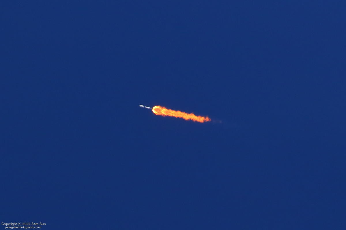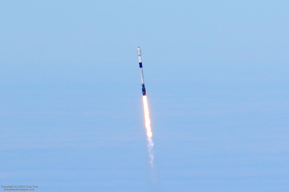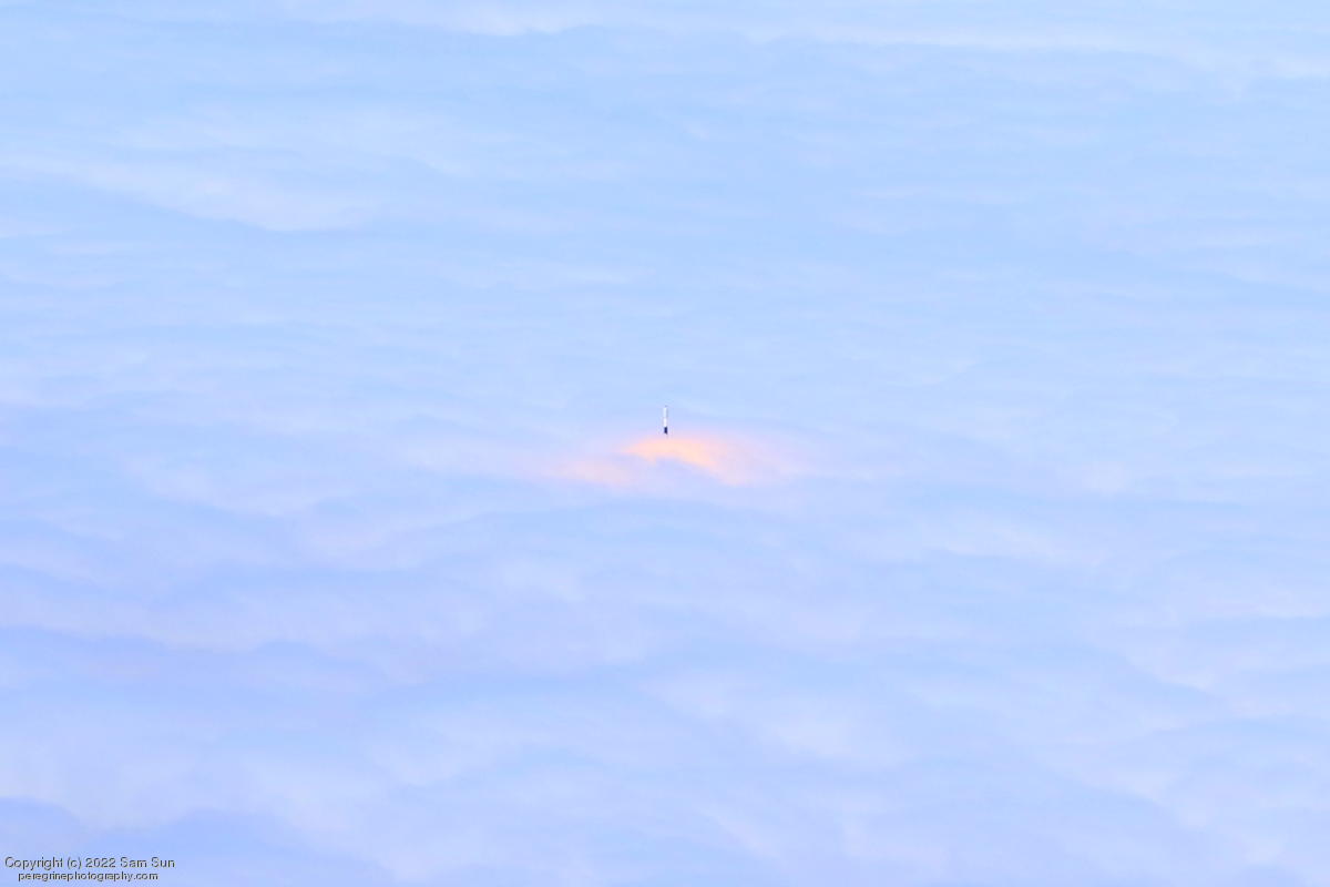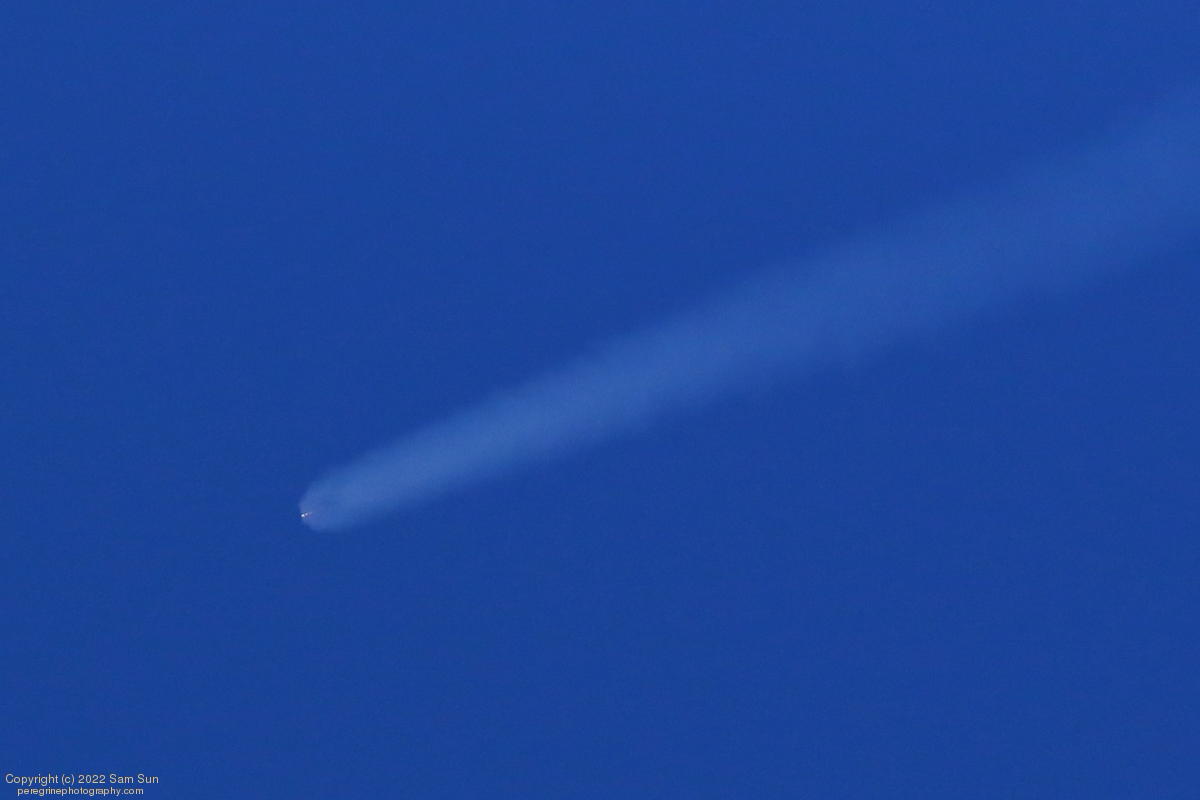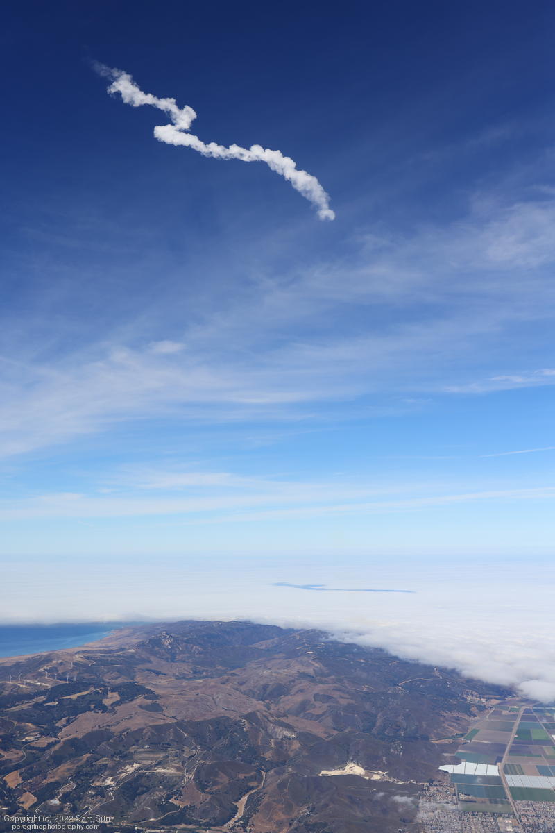 Falcon 9 launch carrying 46 Starlink satellites to a sun-synchronous orbit. View from an altitude of 8500'.