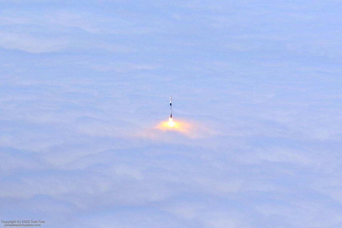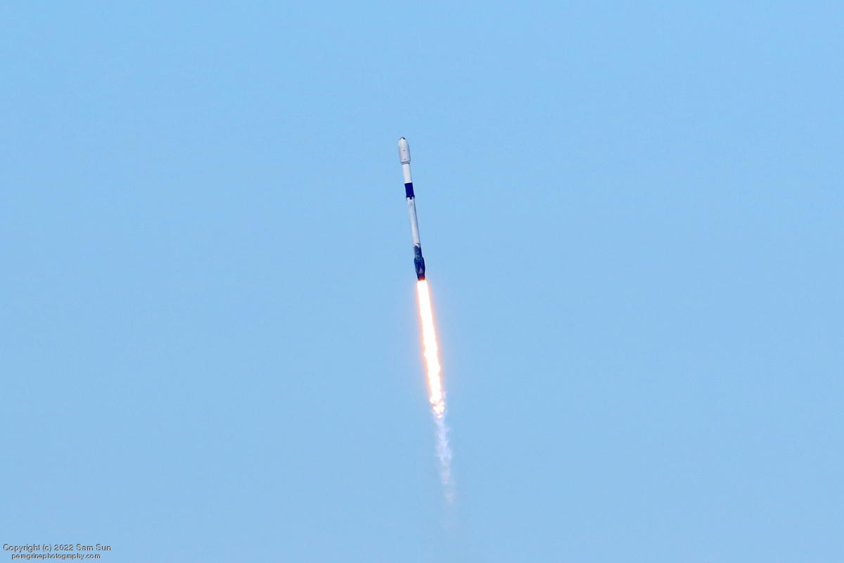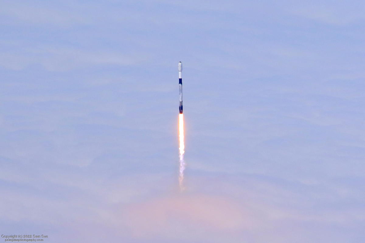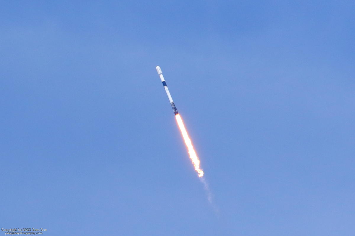 Falcon 9 launch carrying 46 Starlink satellites to a sun-synchronous orbit. View from an altitude of 8500'.