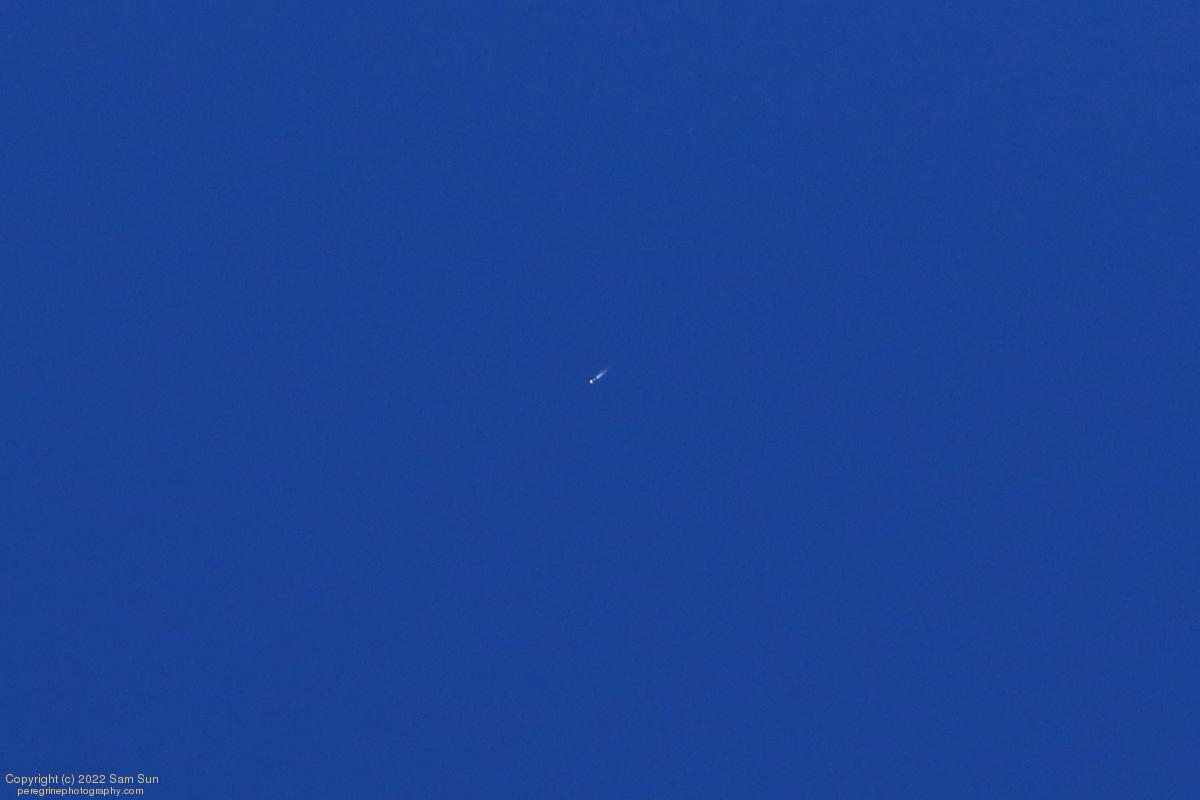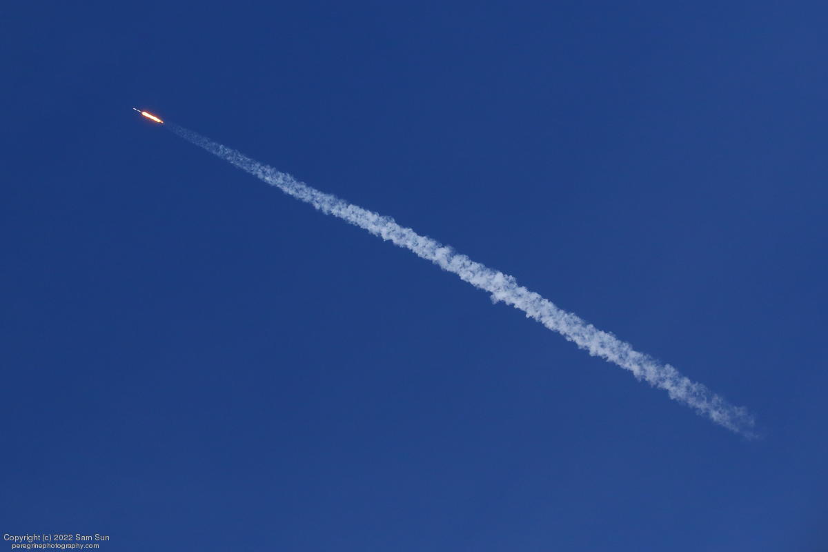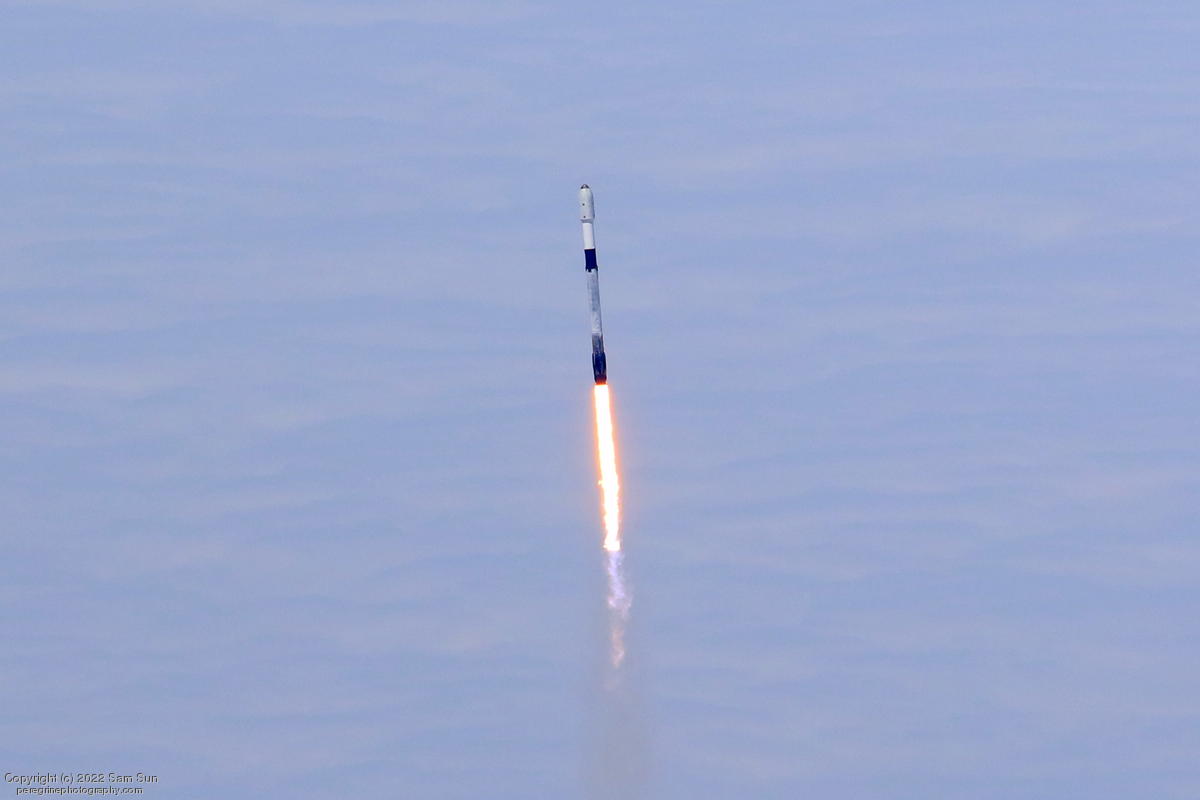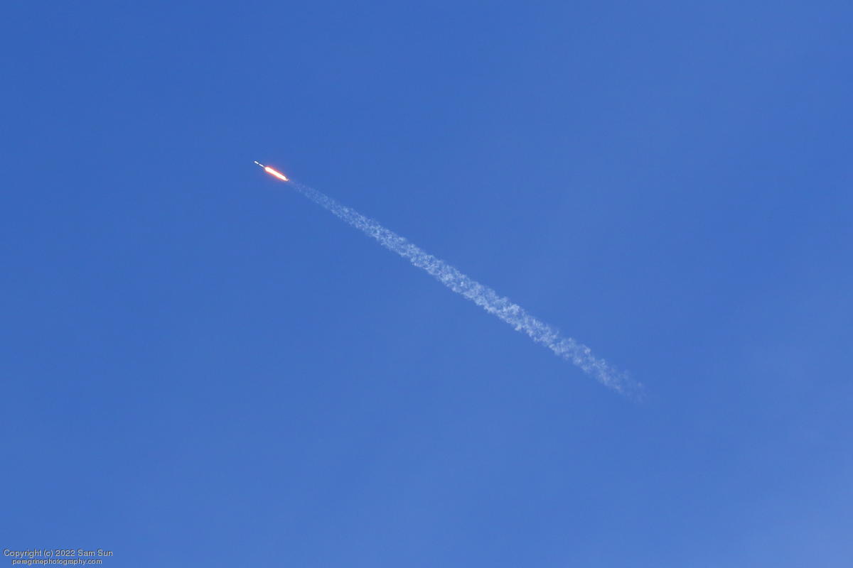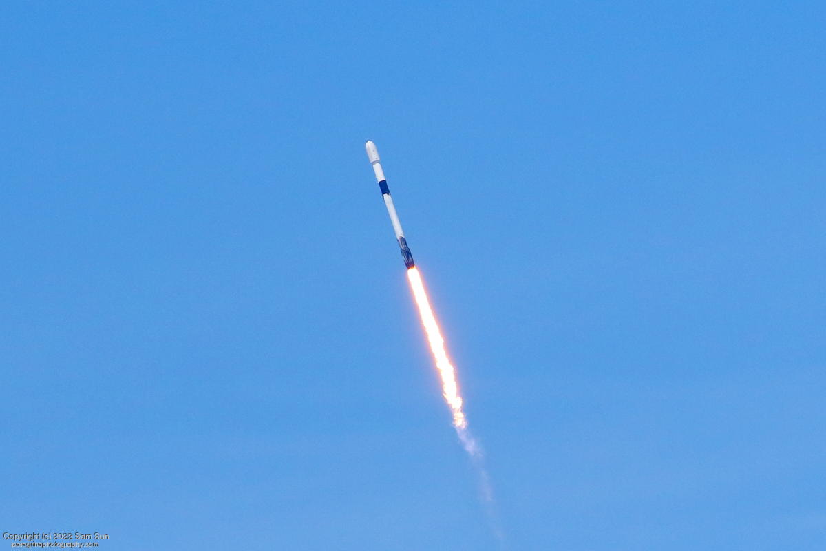 Falcon 9 launch carrying 46 Starlink satellites to a sun-synchronous orbit. View from an altitude of 8500'.