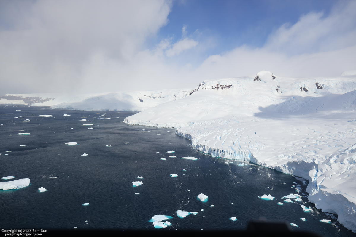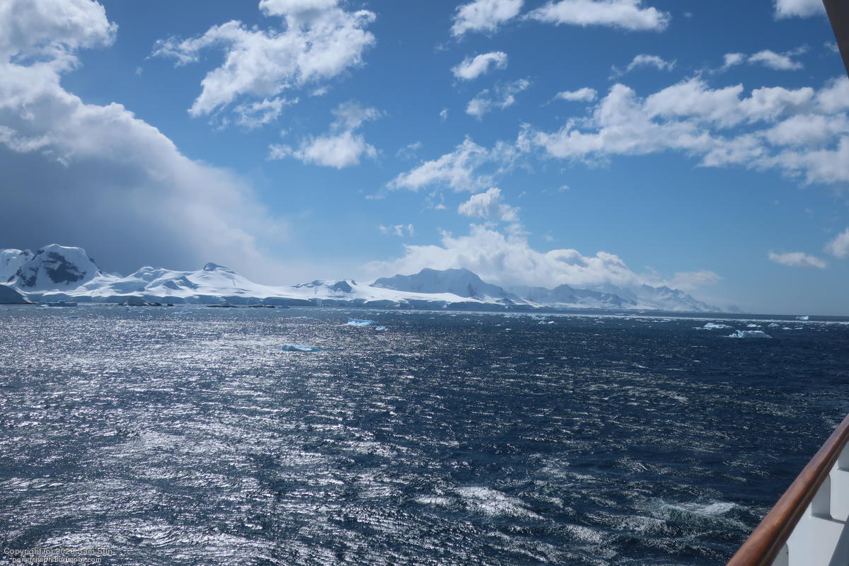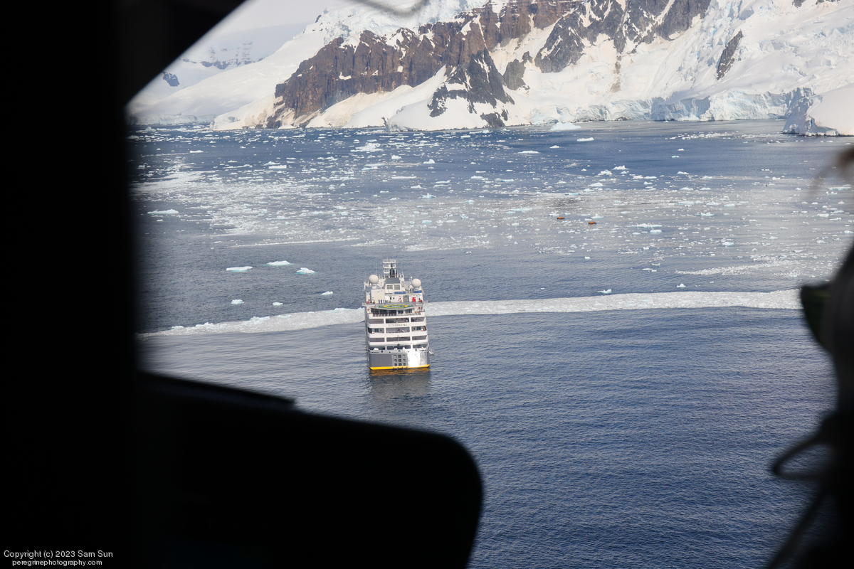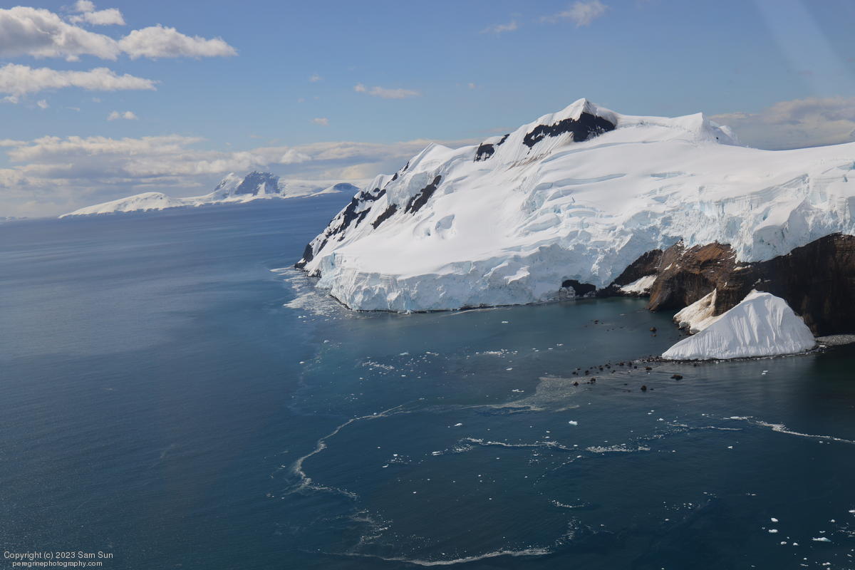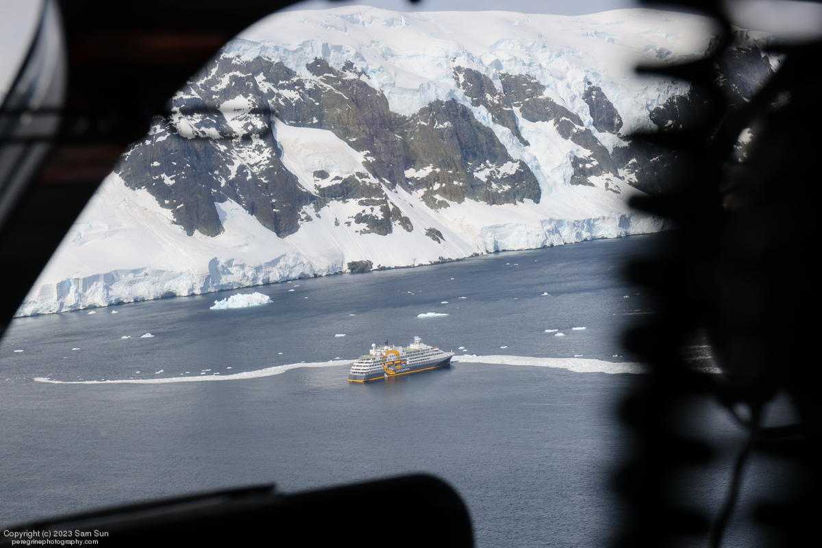 A nice day with mostly sunny skies, but winds were an issue for zodiac and helicopter excursions. We finally found a sheltered area near Kaiser Island to go flightseeing. In the afternoon, we crossed paths with a pod of orcas. The winds came up again, and the afternoon excursions were ultimately cancelled.