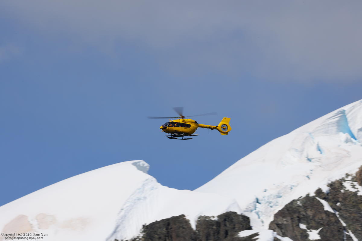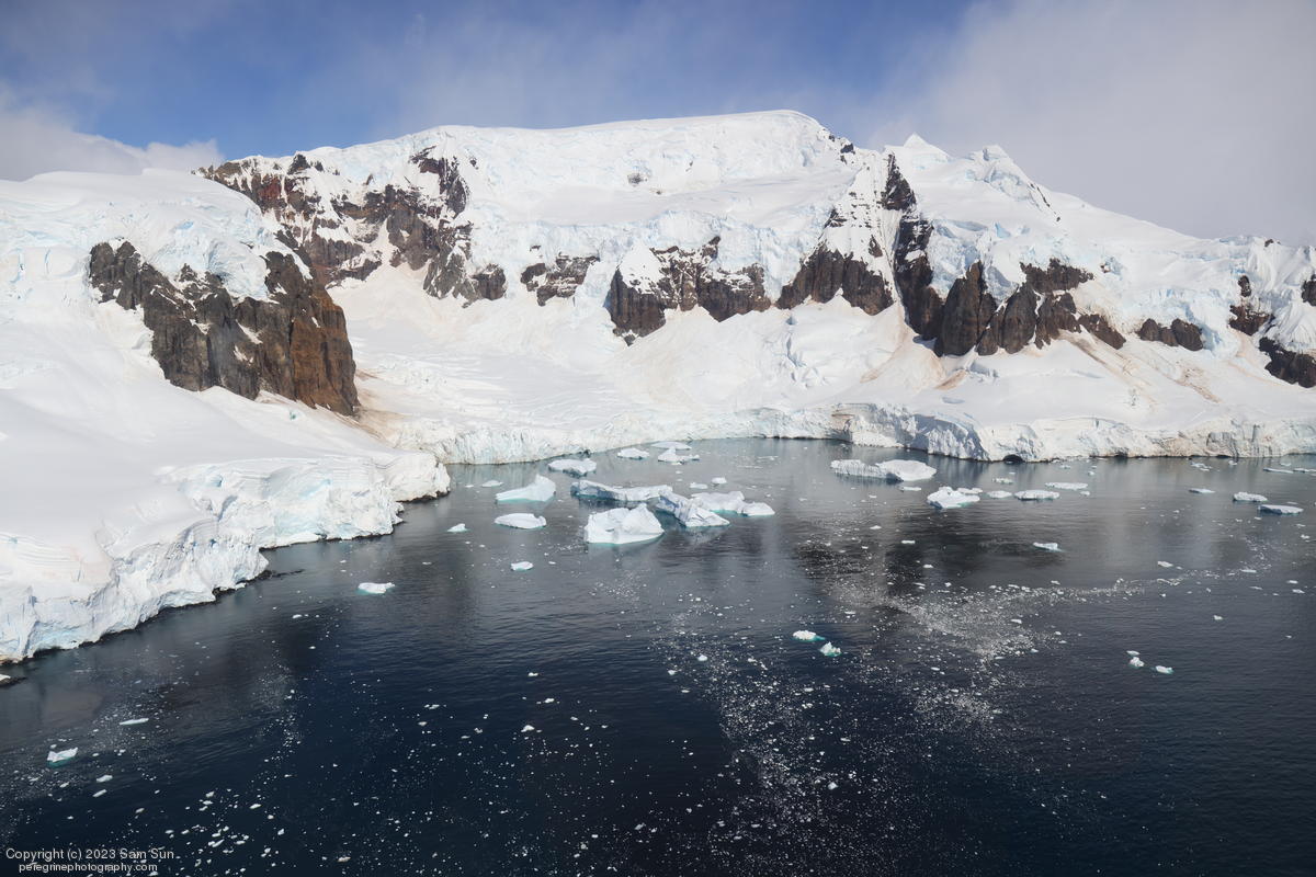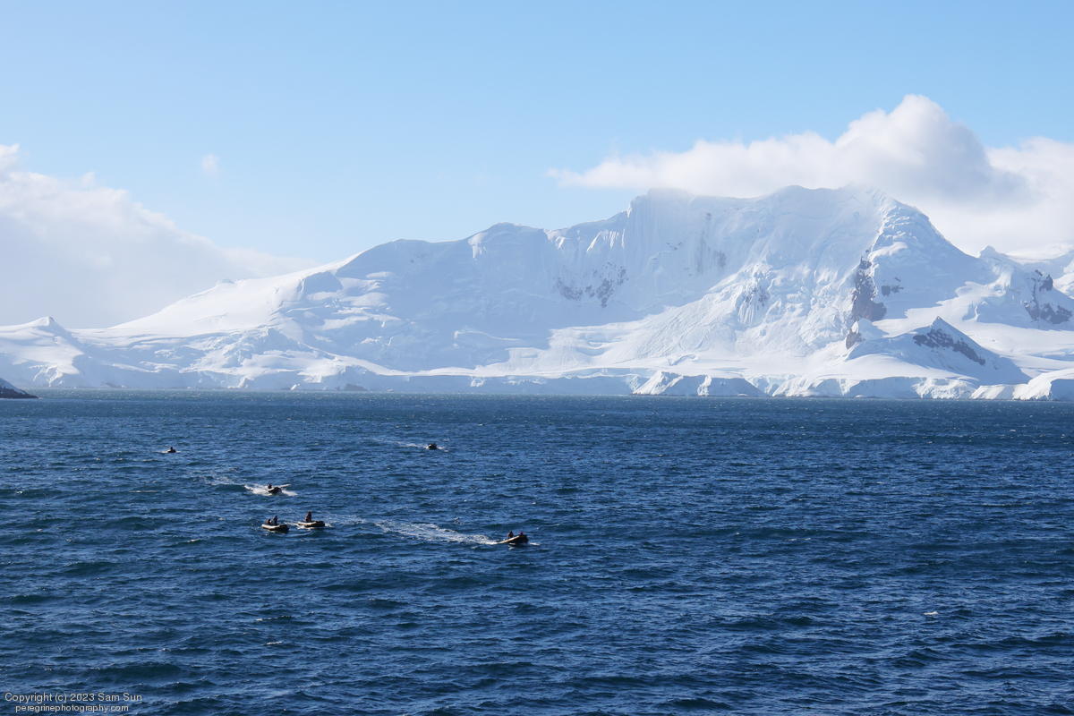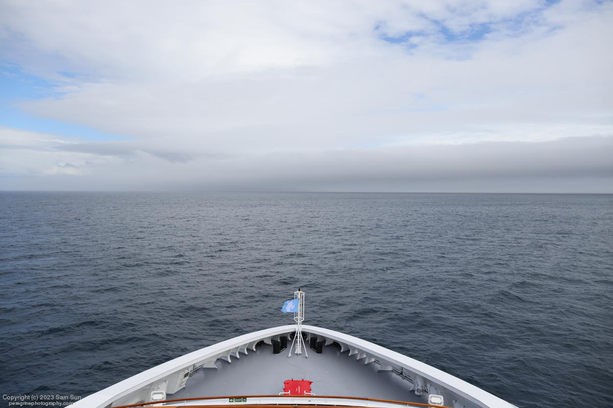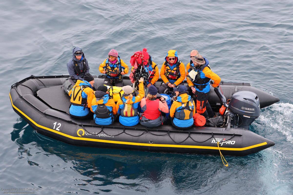 A nice day with mostly sunny skies, but winds were an issue for zodiac and helicopter excursions. We finally found a sheltered area near Kaiser Island to go flightseeing. In the afternoon, we crossed paths with a pod of orcas. The winds came up again, and the afternoon excursions were ultimately cancelled.