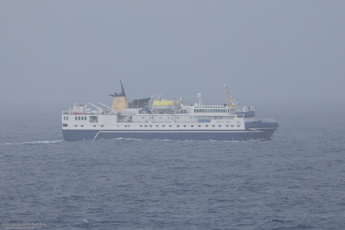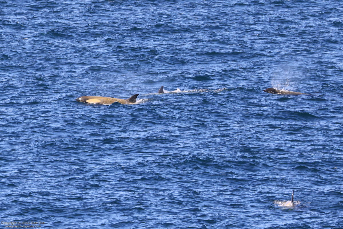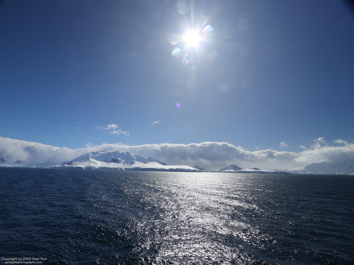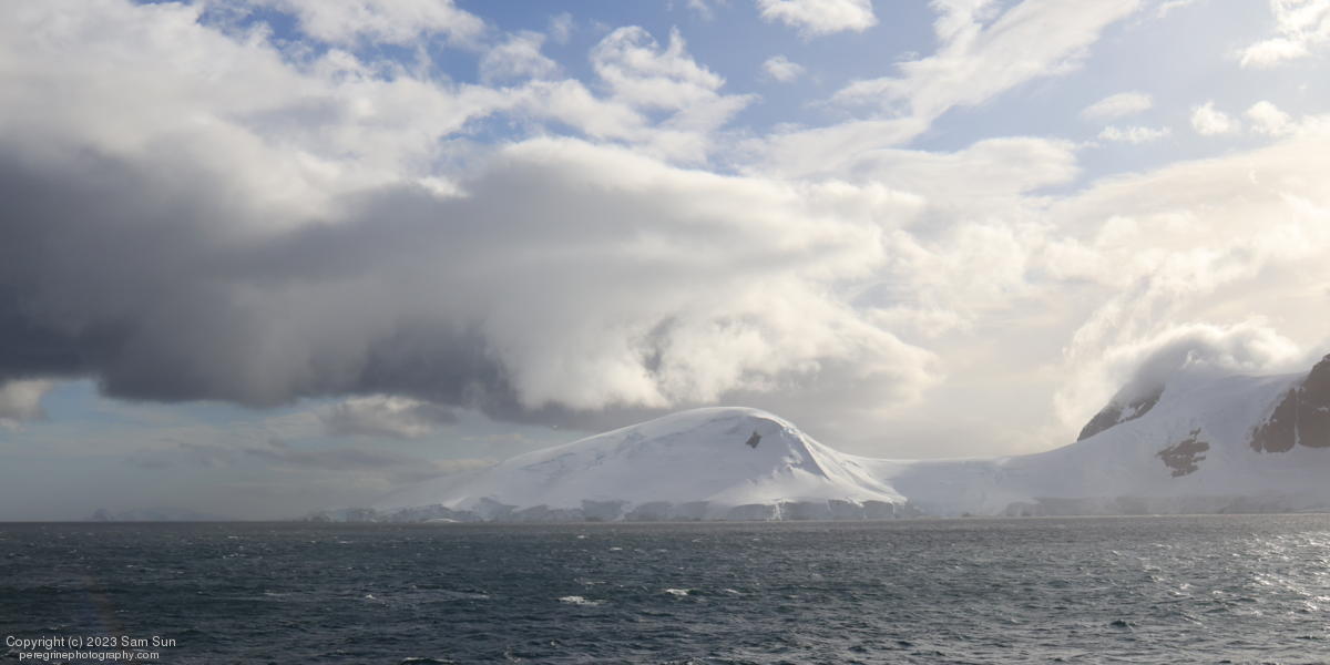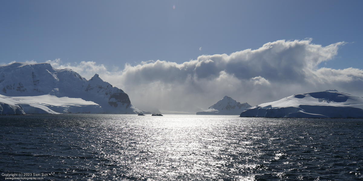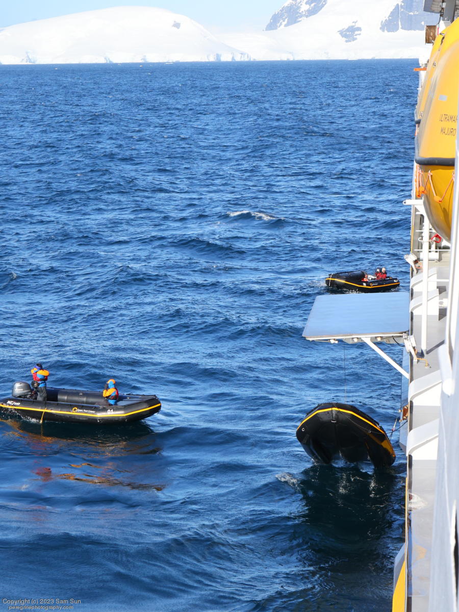 A nice day with mostly sunny skies, but winds were an issue for zodiac and helicopter excursions. We finally found a sheltered area near Kaiser Island to go flightseeing. In the afternoon, we crossed paths with a pod of orcas. The winds came up again, and the afternoon excursions were ultimately cancelled.