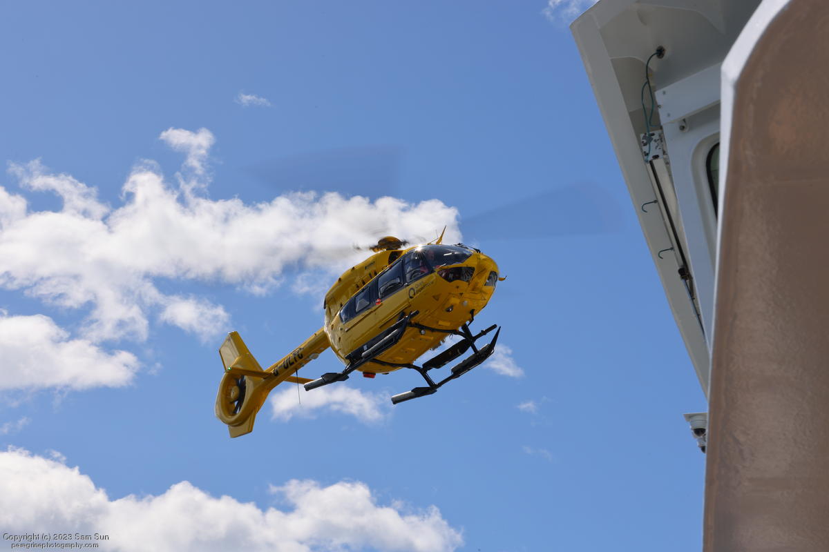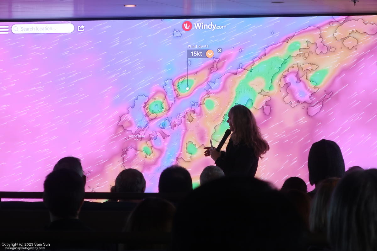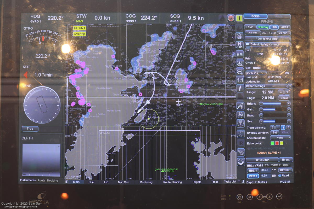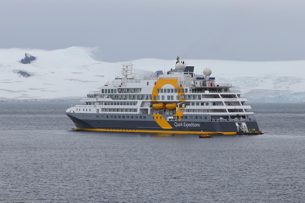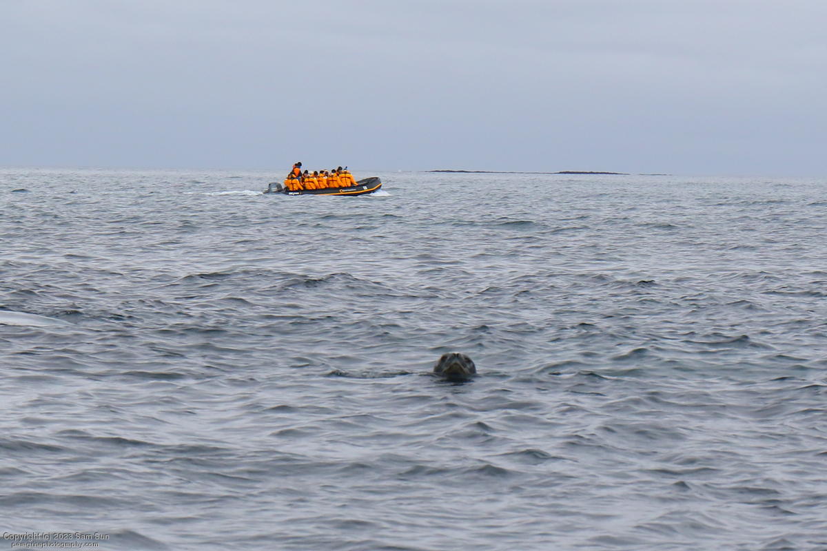 A nice day with mostly sunny skies, but winds were an issue for zodiac and helicopter excursions. We finally found a sheltered area near Kaiser Island to go flightseeing. In the afternoon, we crossed paths with a pod of orcas. The winds came up again, and the afternoon excursions were ultimately cancelled.