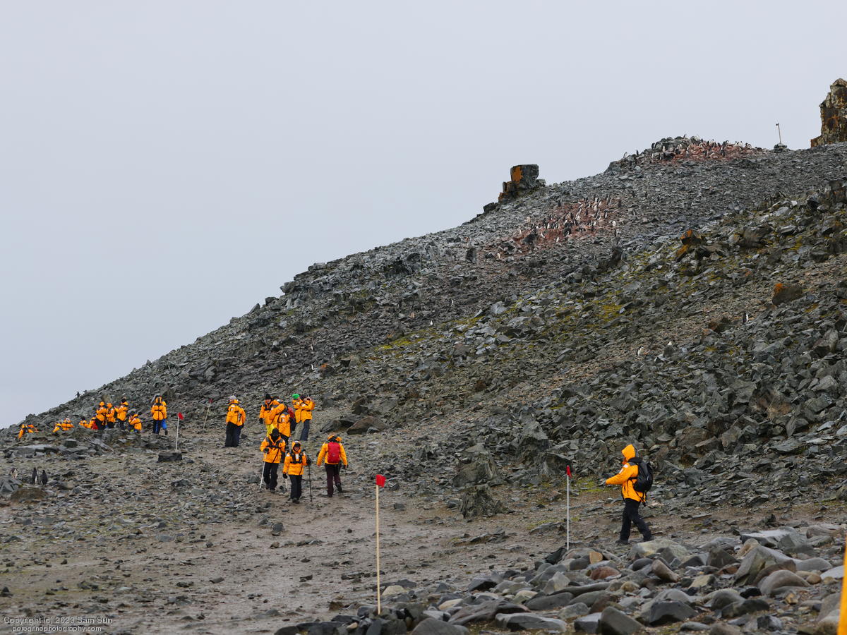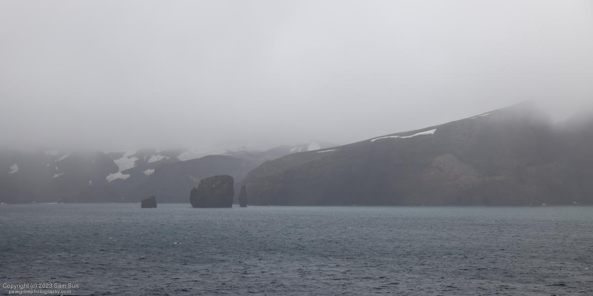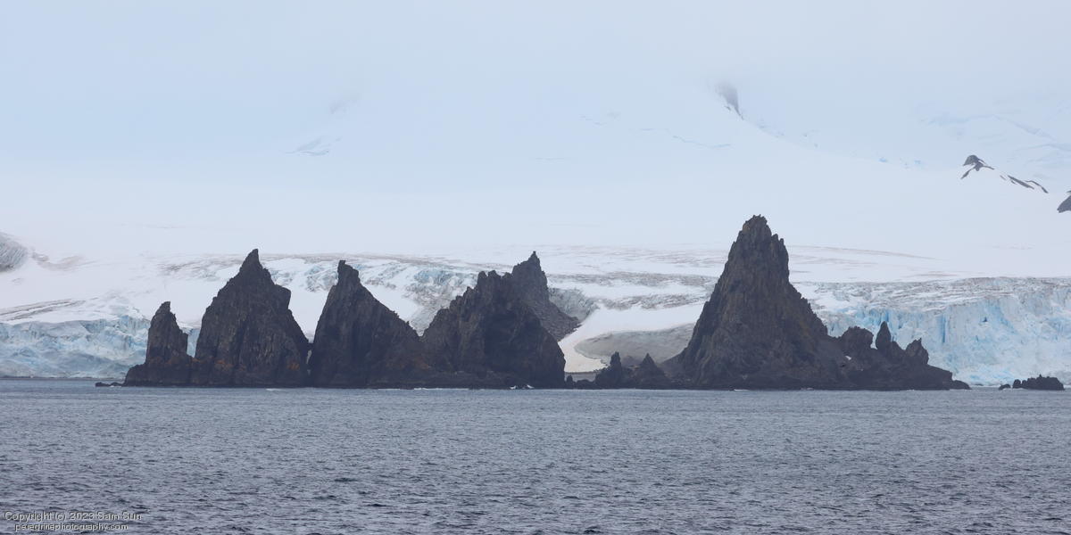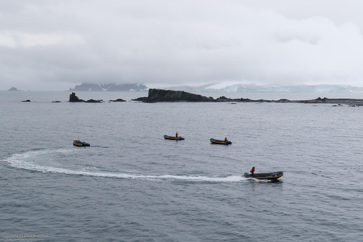 Our first shore excursion was at Half Moon Island, home to a chinstrap penguin colony. The Argentine Base Camara also lies on the island, a short distance away from our landing site. Later in the evening, we cruised by Deception Island.