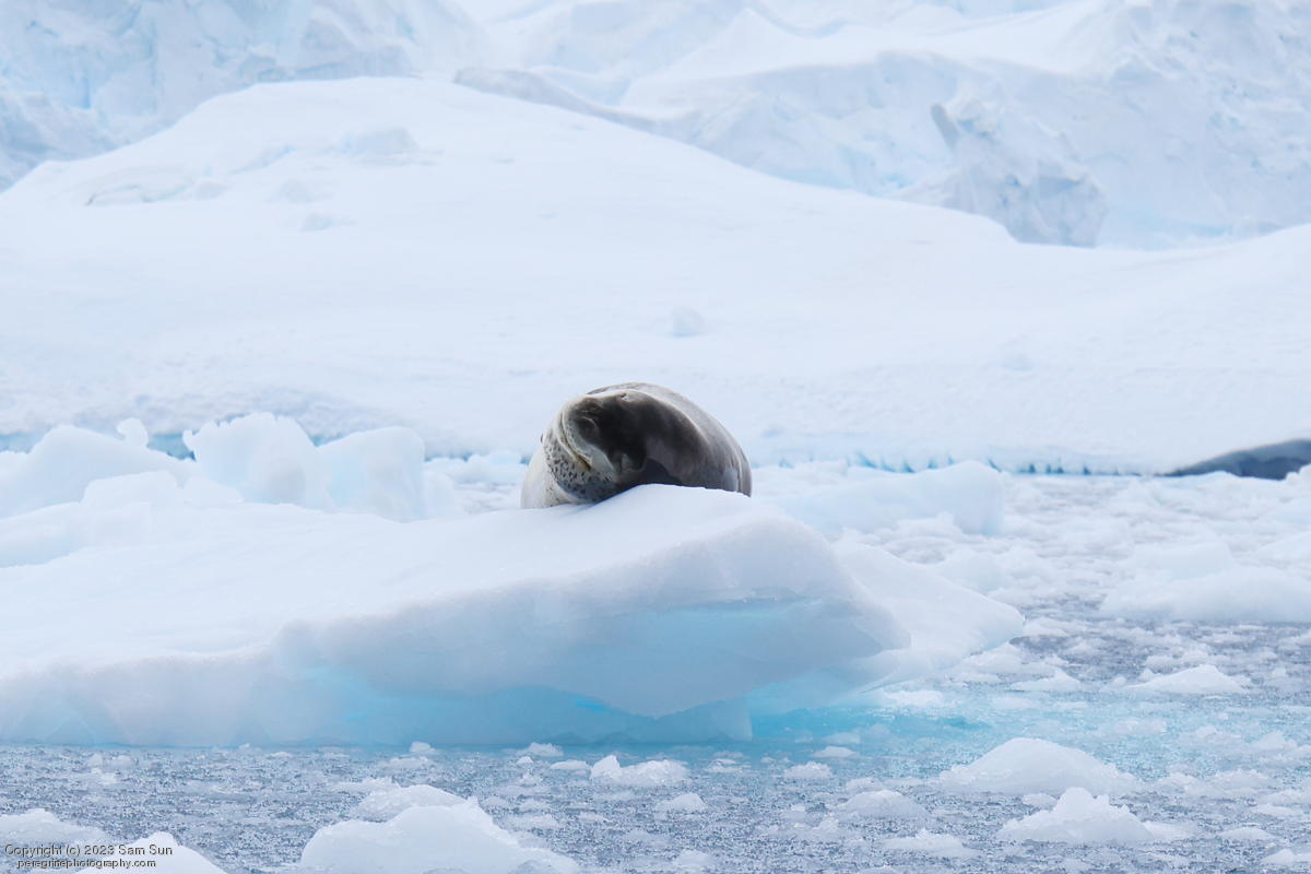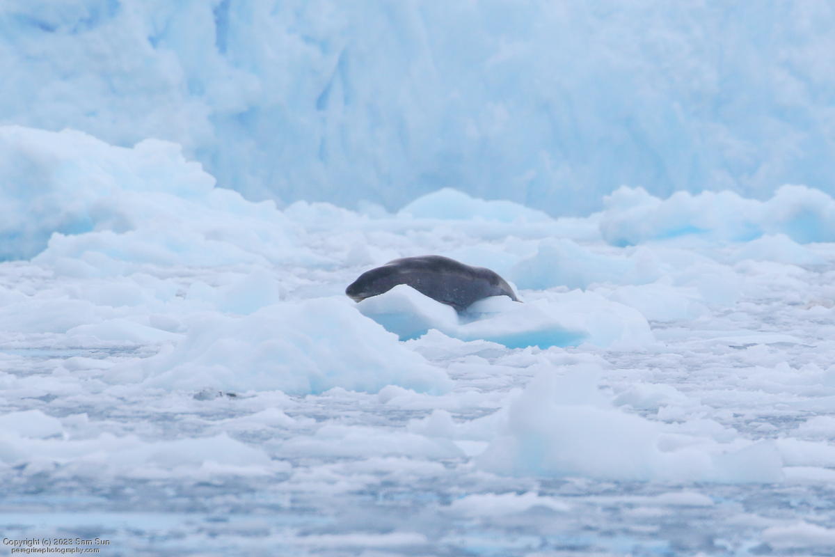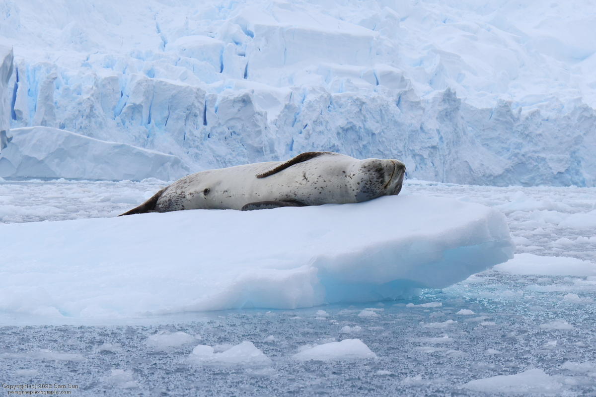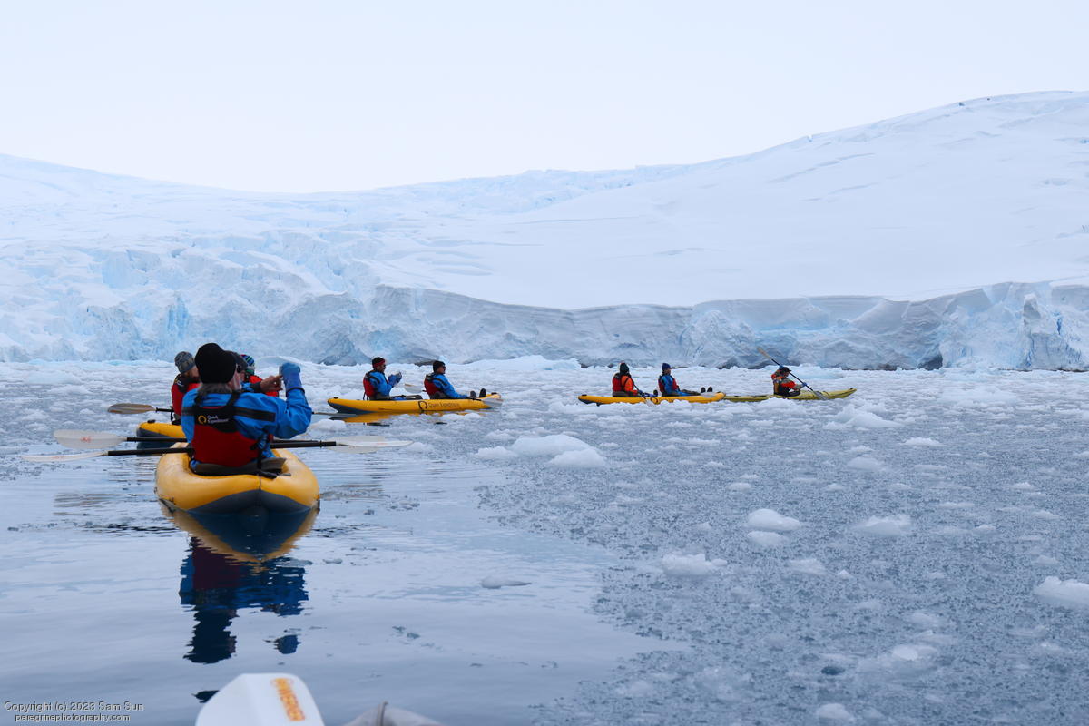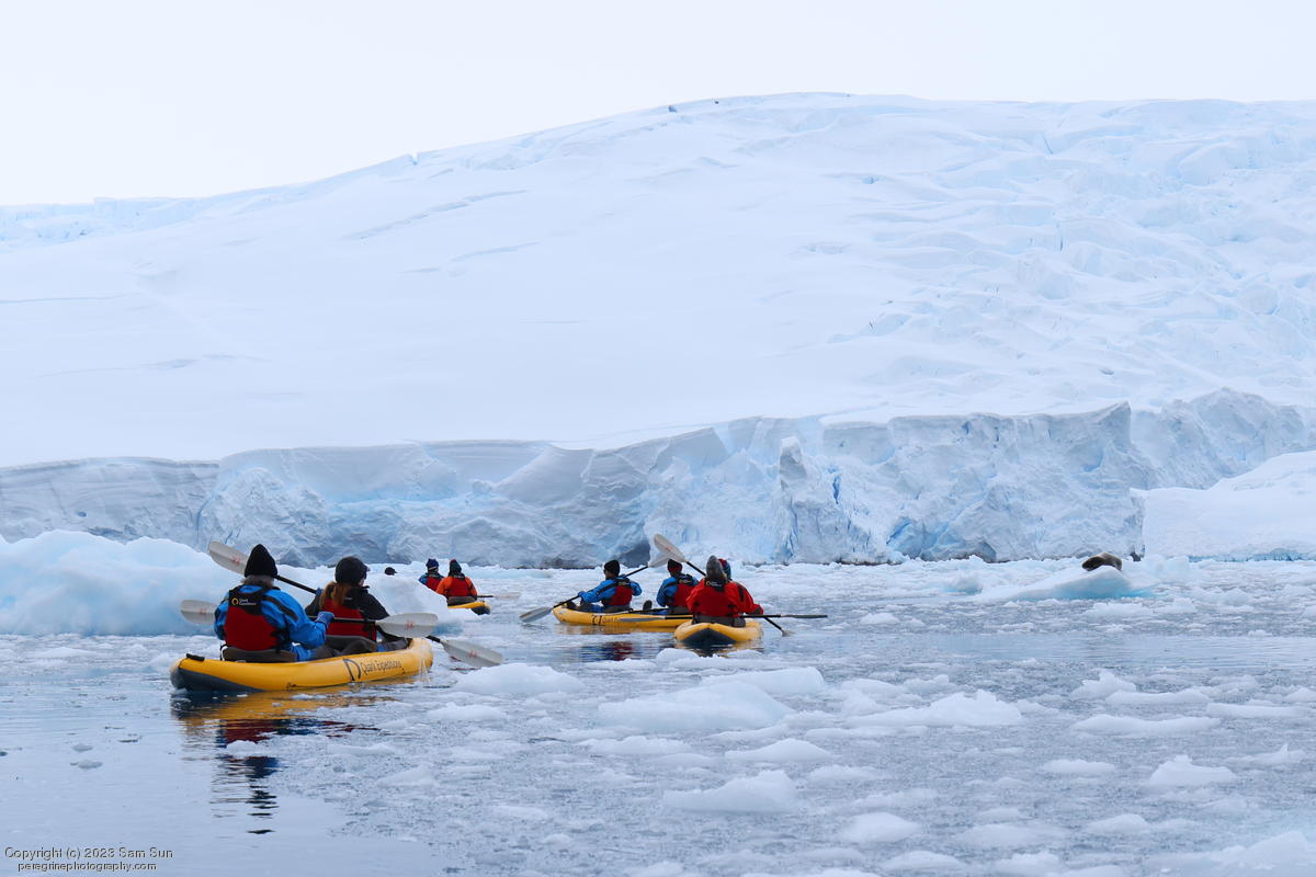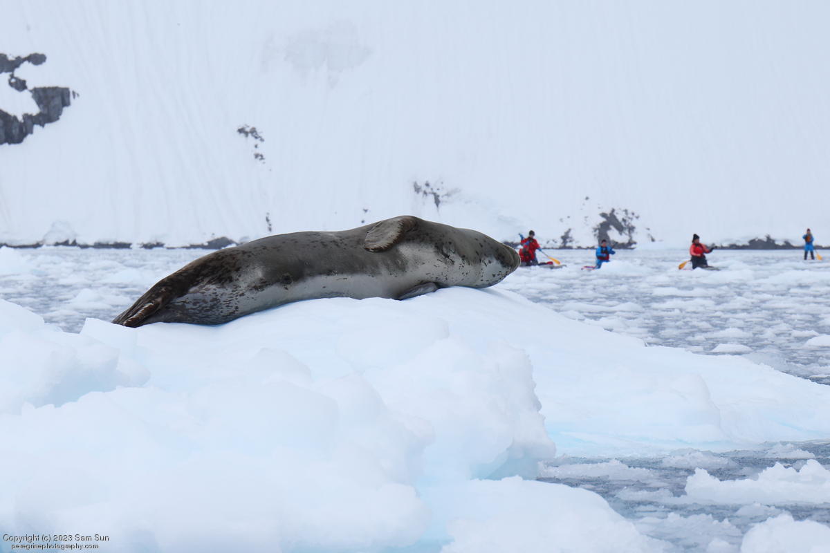 We backtracked a bit to the northeast overnight to stay with better weather. In the morning, we did a paddling excursion and came across a leopard seal.