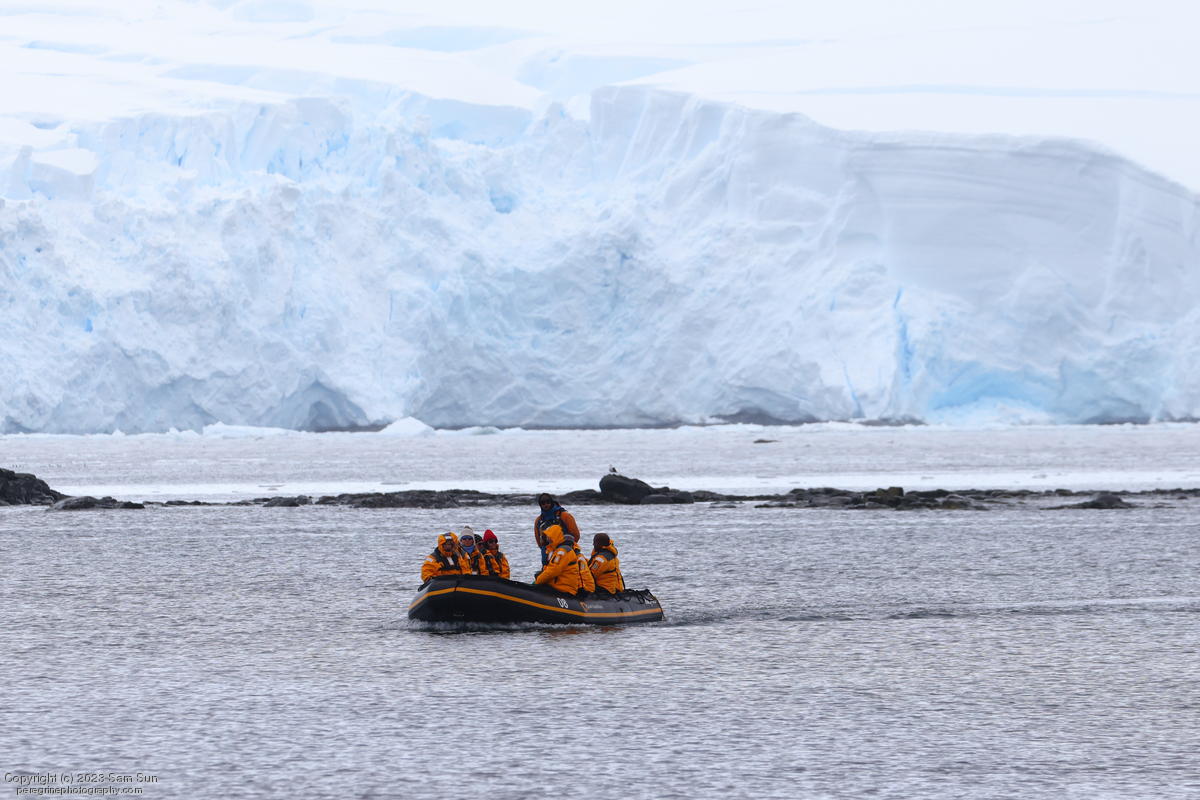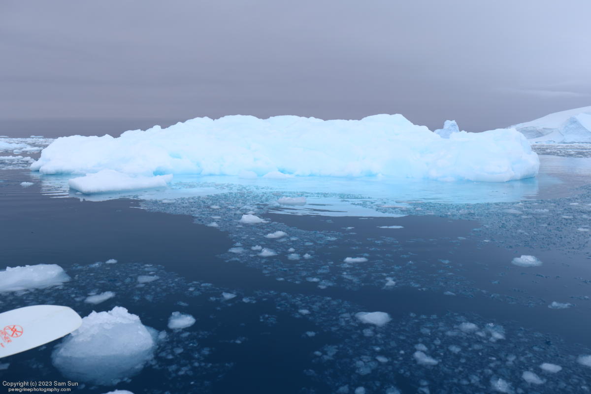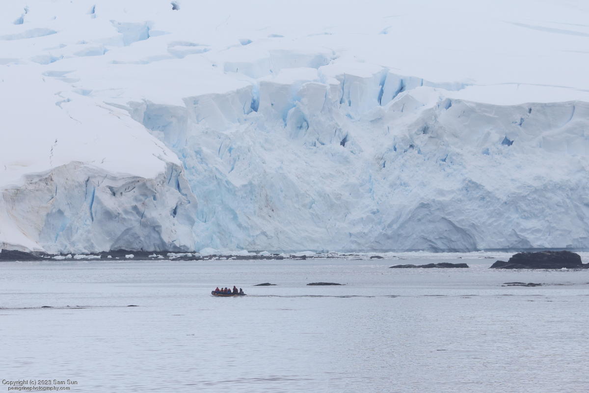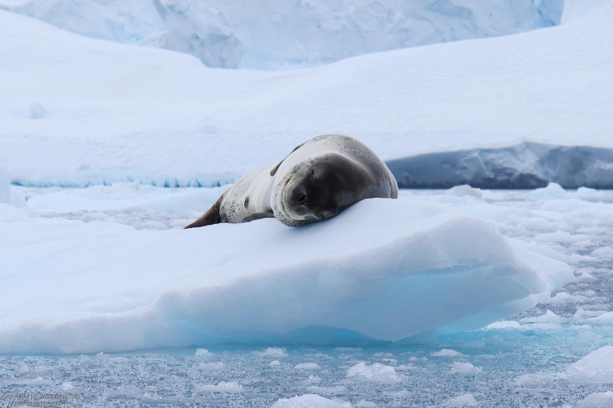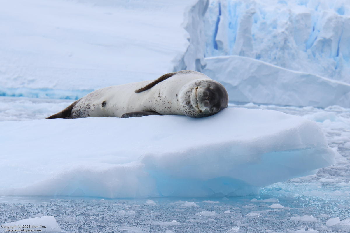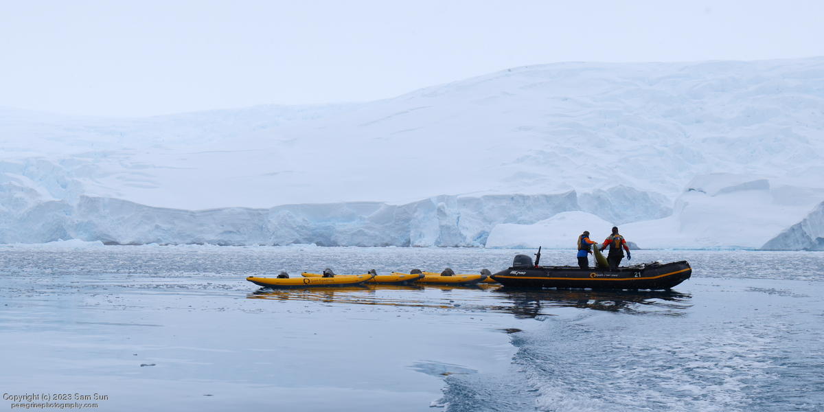 We backtracked a bit to the northeast overnight to stay with better weather. In the morning, we did a paddling excursion and came across a leopard seal.