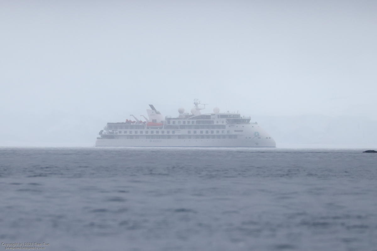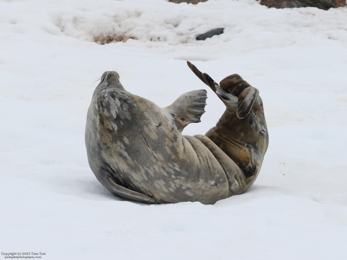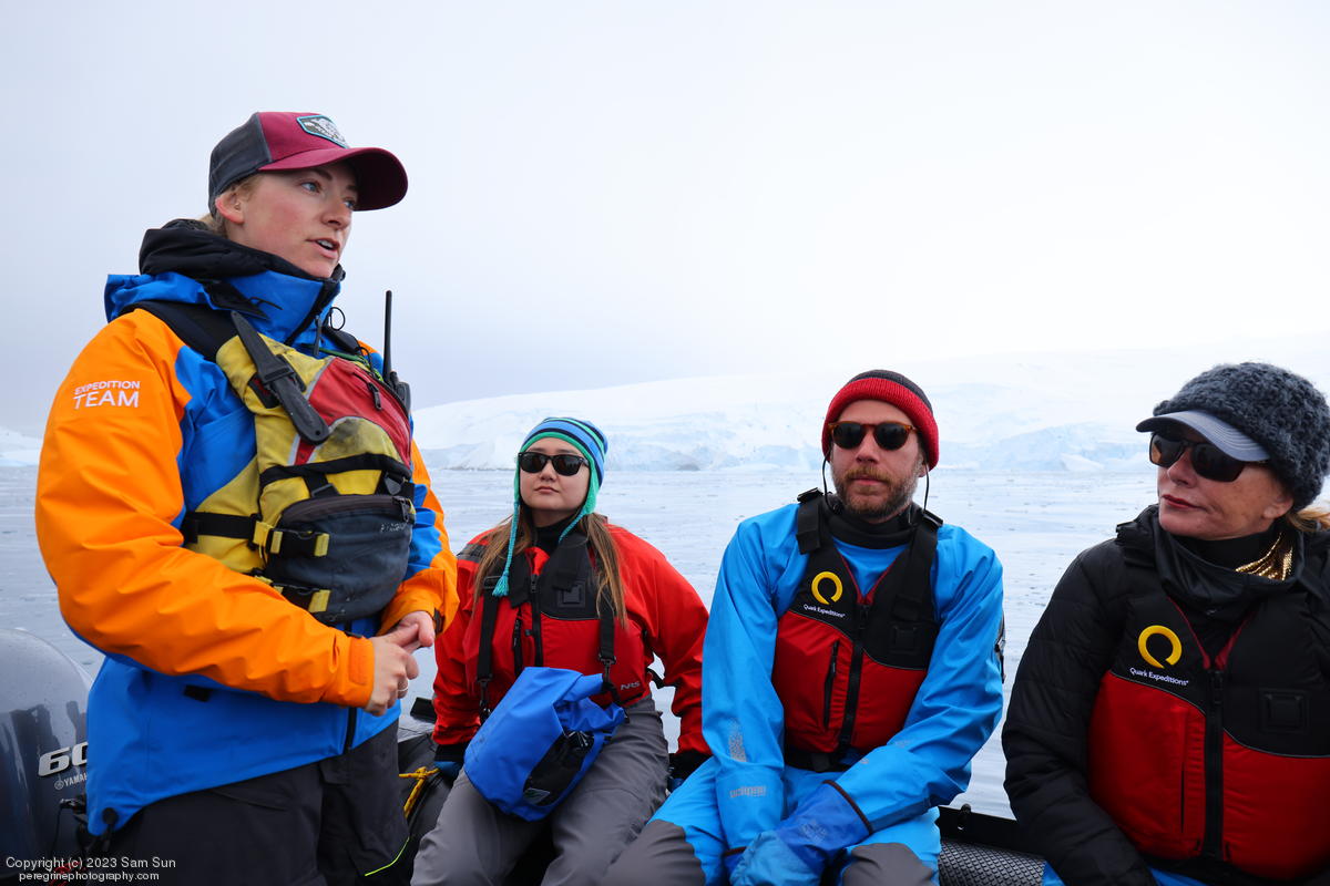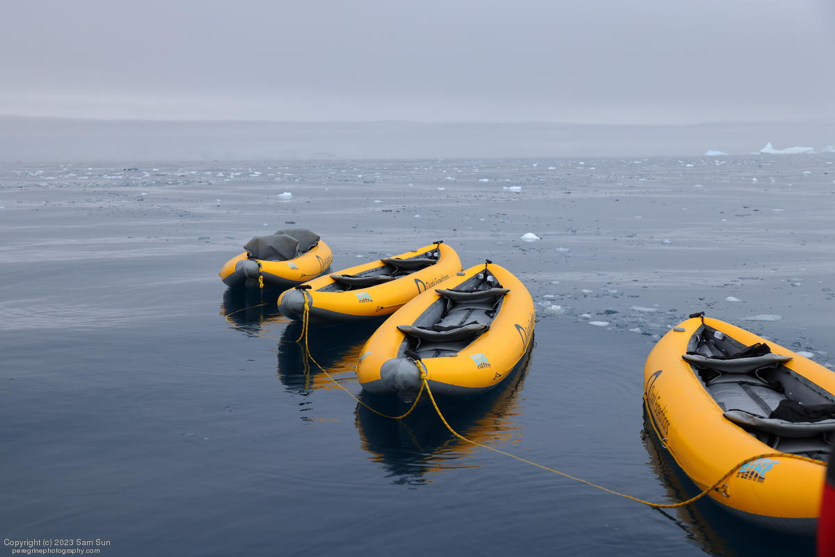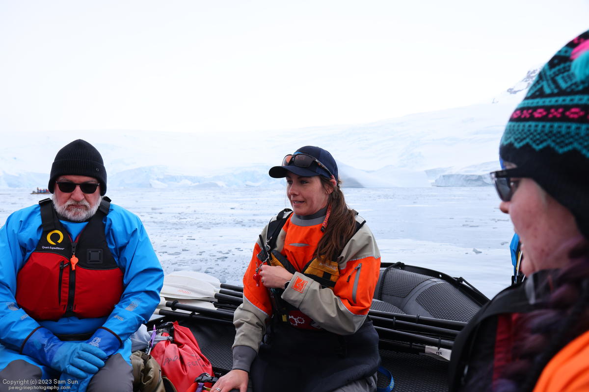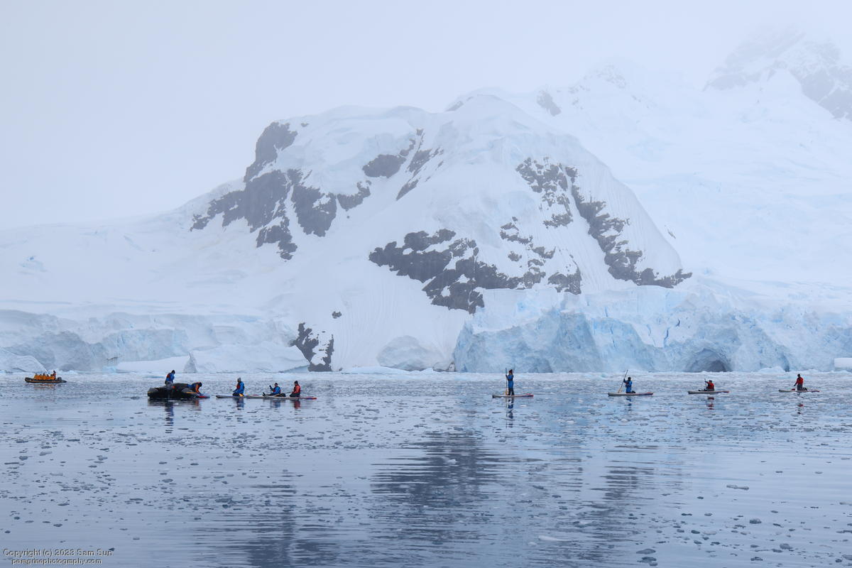 We backtracked a bit to the northeast overnight to stay with better weather. In the morning, we did a paddling excursion and came across a leopard seal.