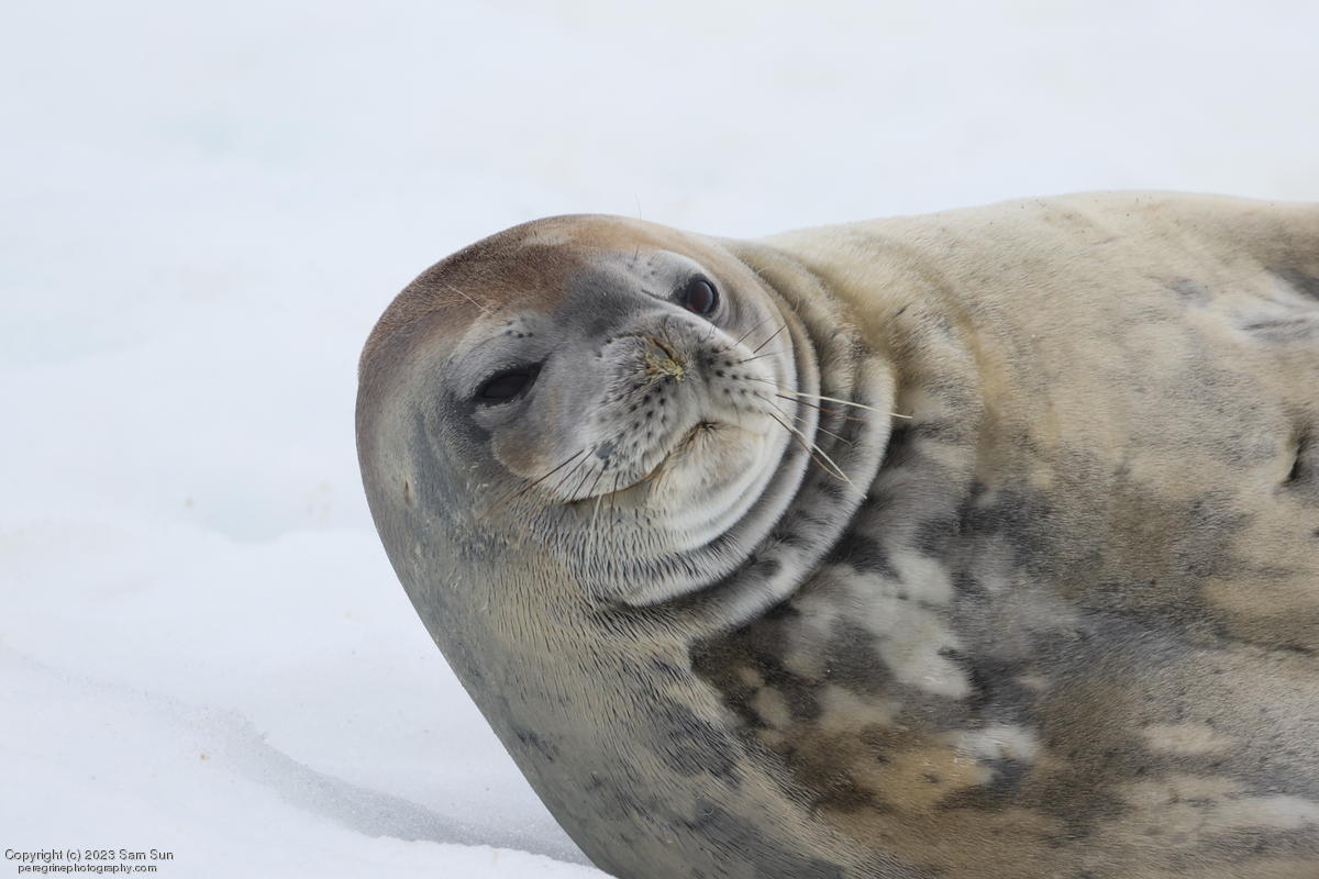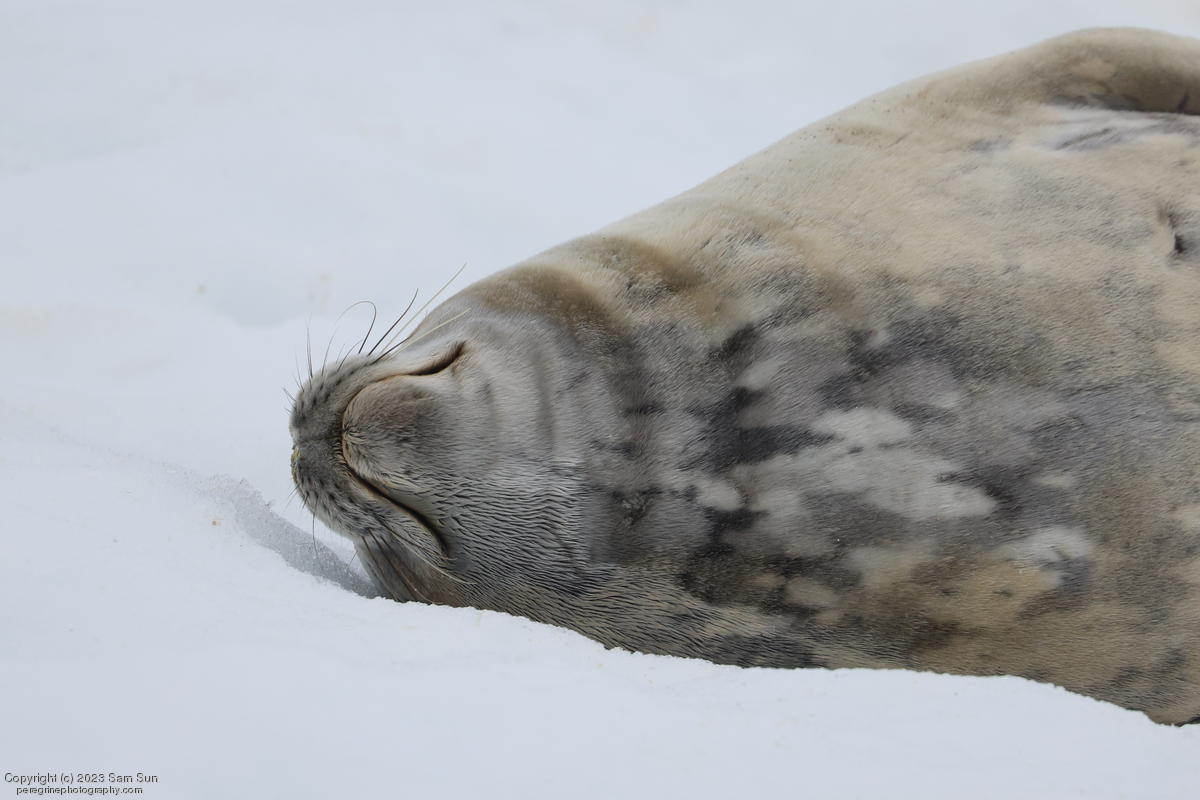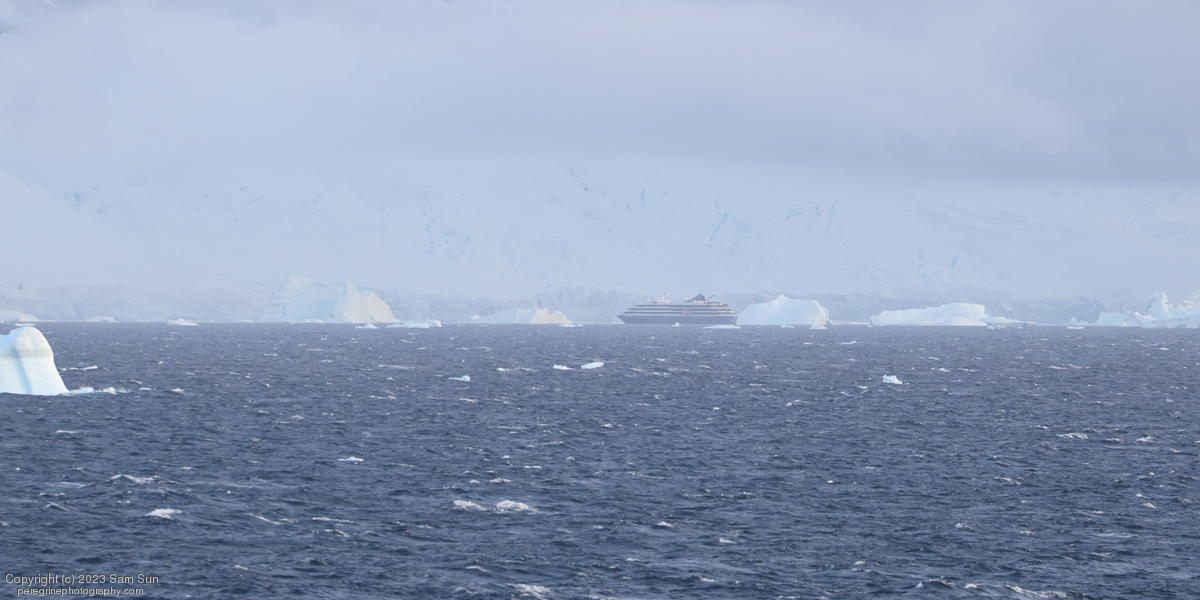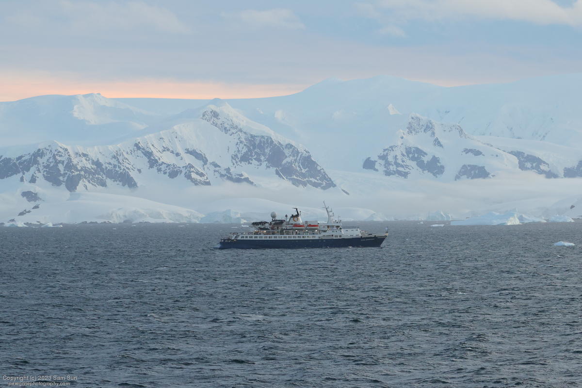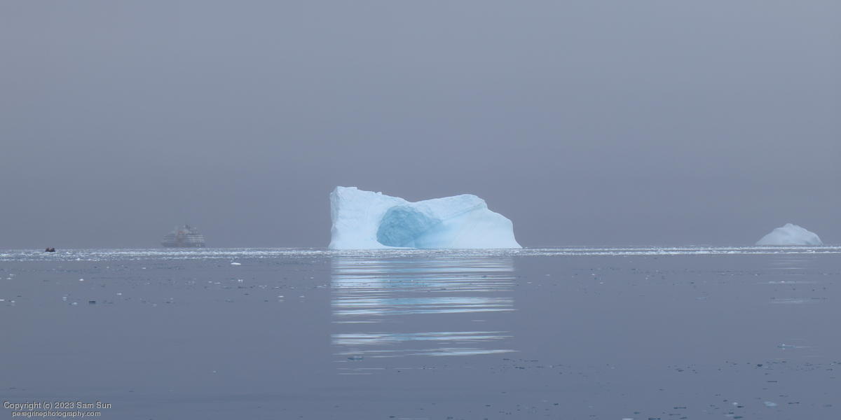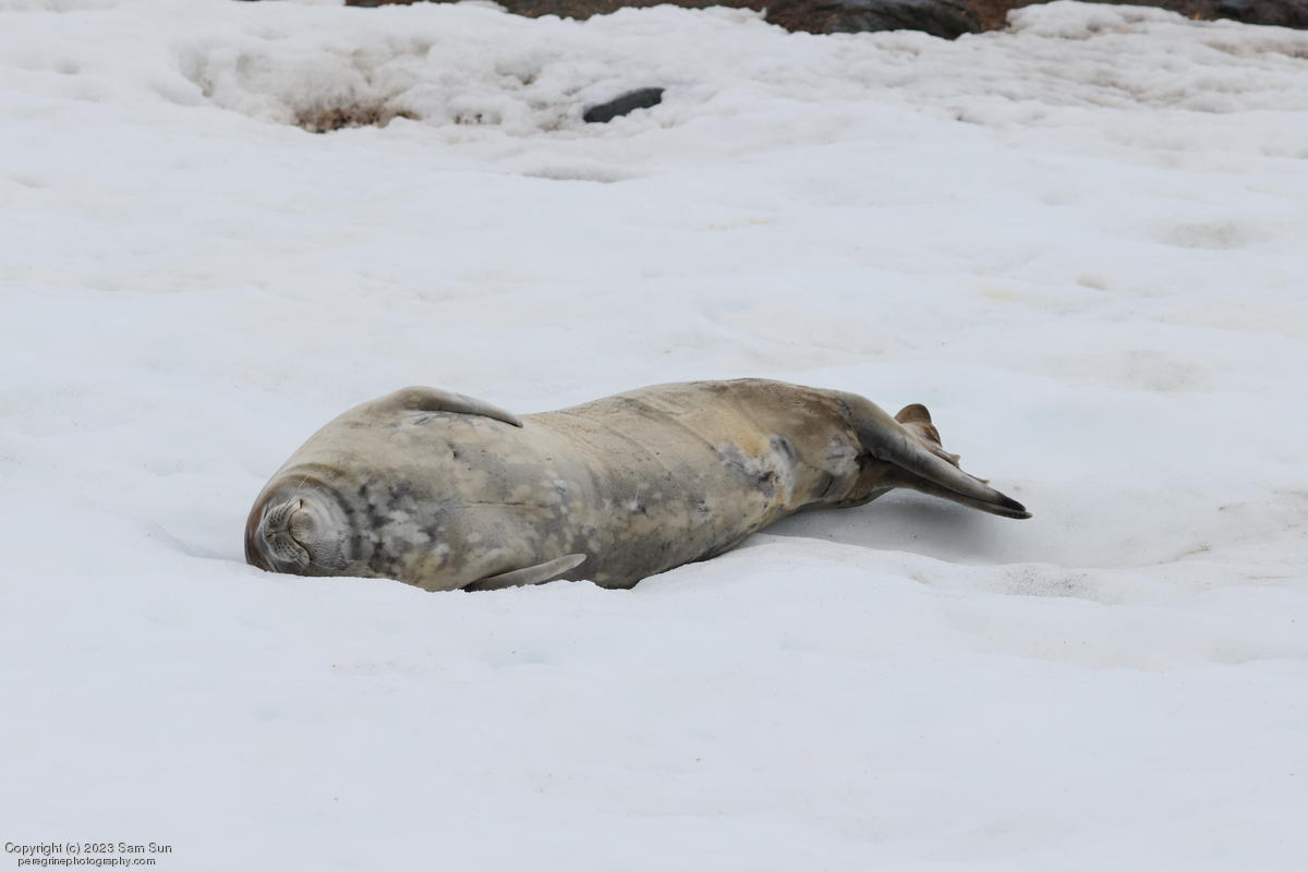 We backtracked a bit to the northeast overnight to stay with better weather. In the morning, we did a paddling excursion and came across a leopard seal.