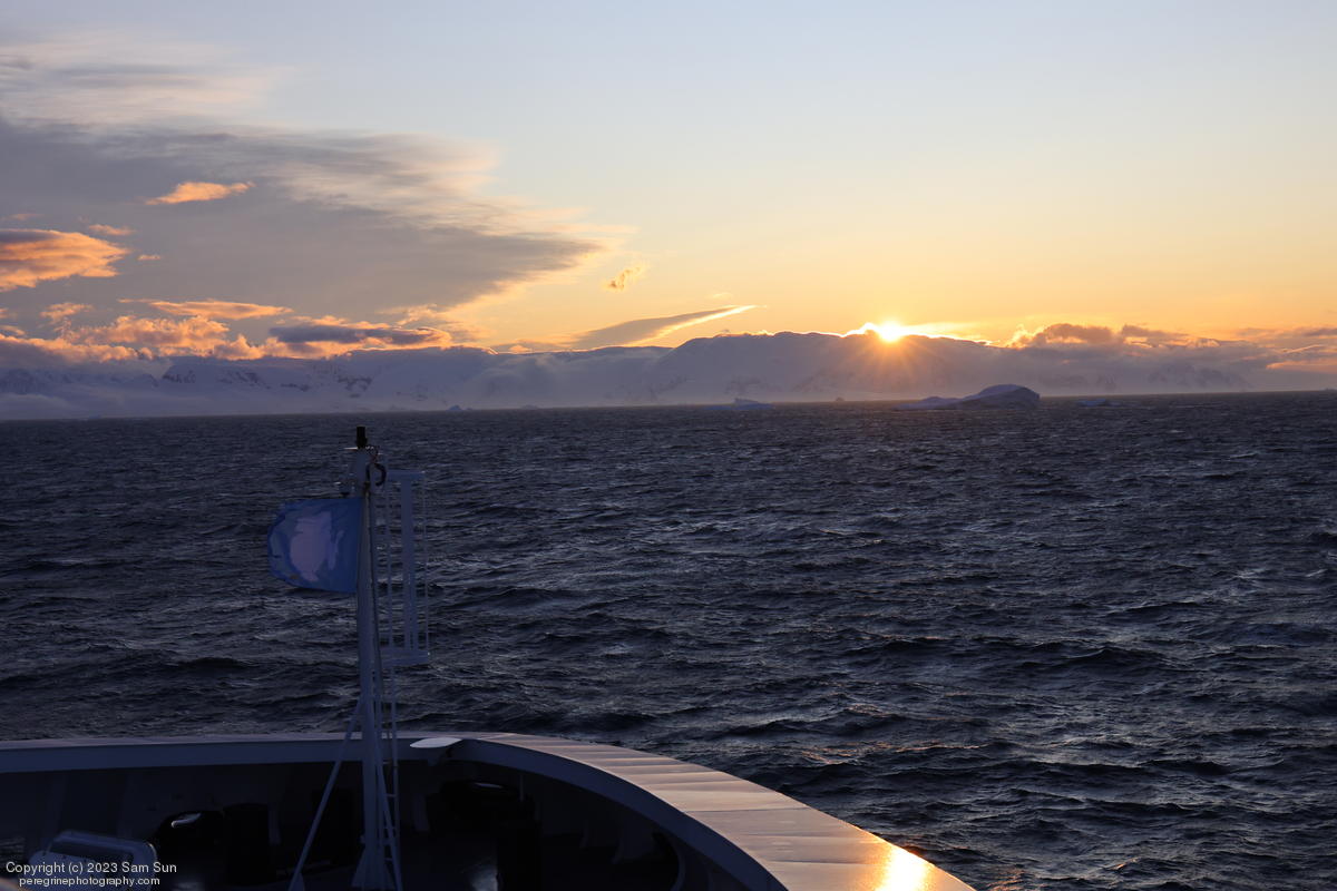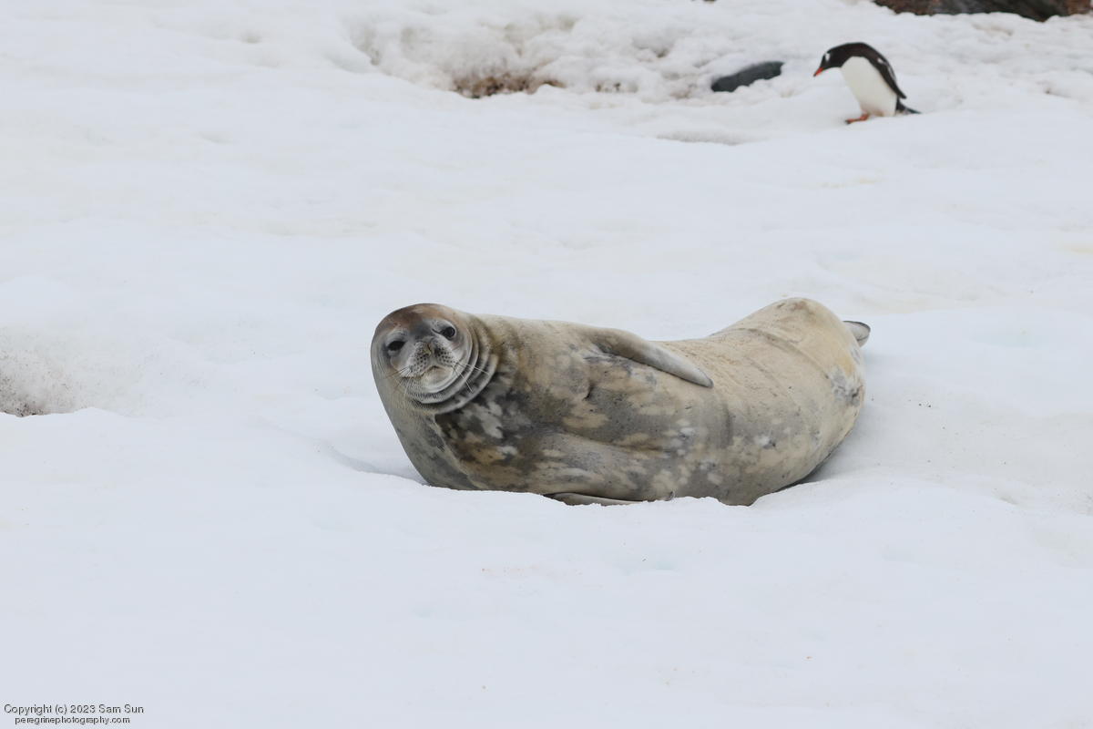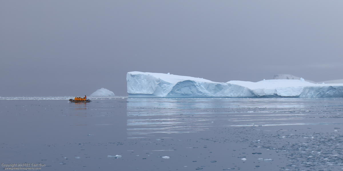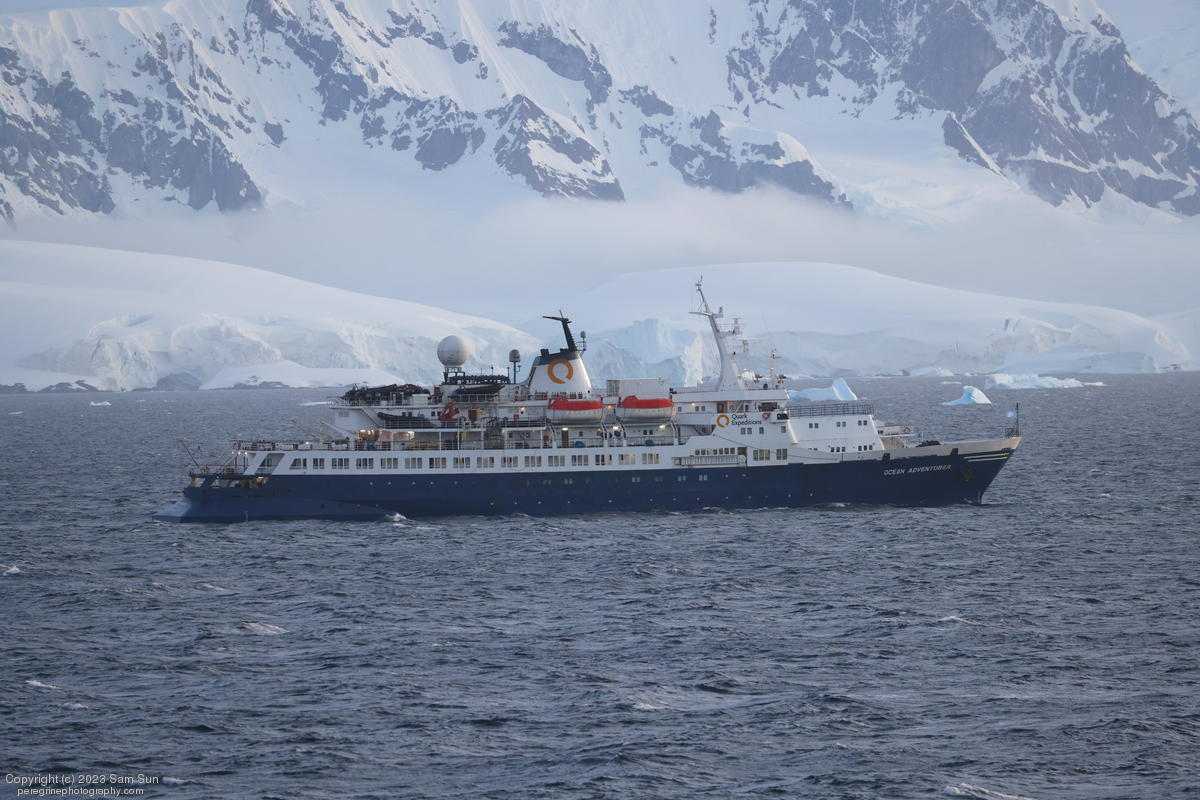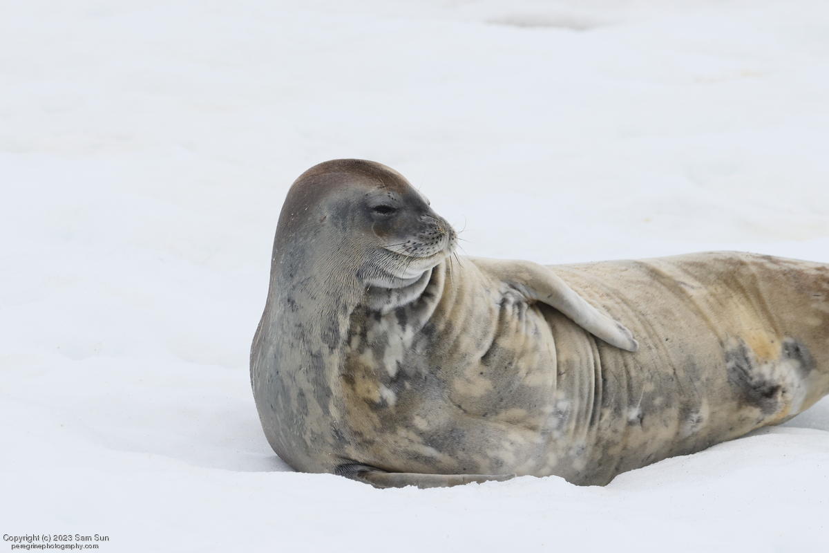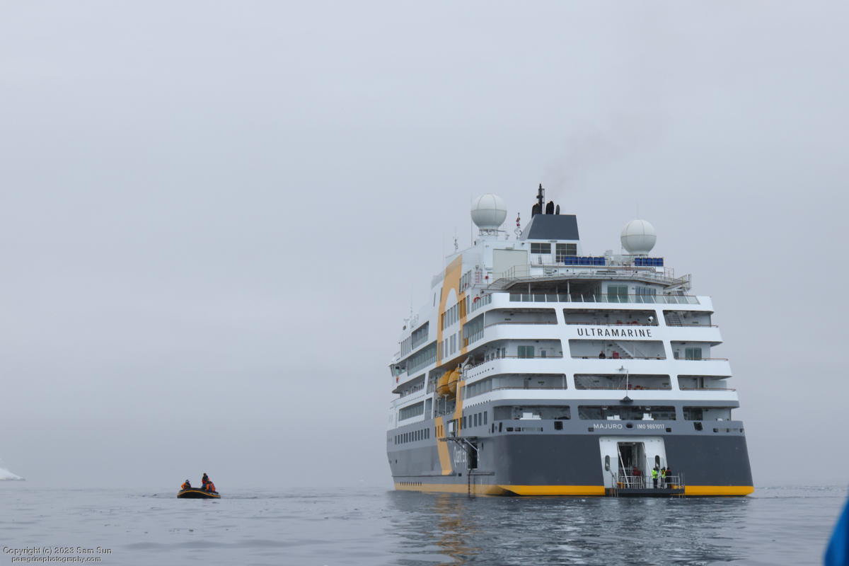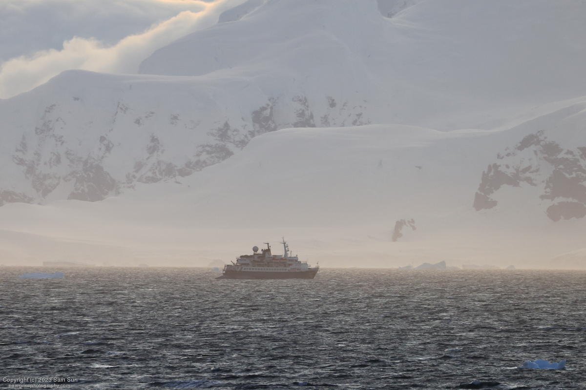 We backtracked a bit to the northeast overnight to stay with better weather. In the morning, we did a paddling excursion and came across a leopard seal.